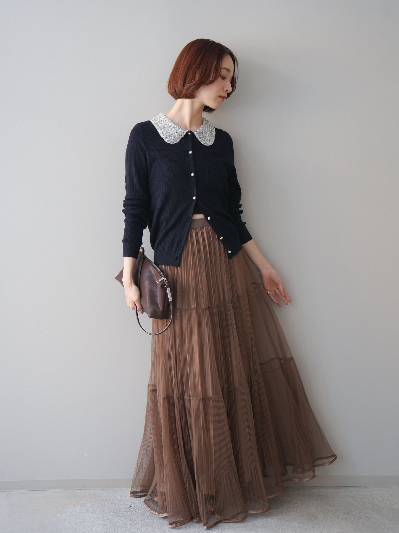 [予約]ラメプリーツレイヤードチュールロングスカートに関連する商品を探す↓