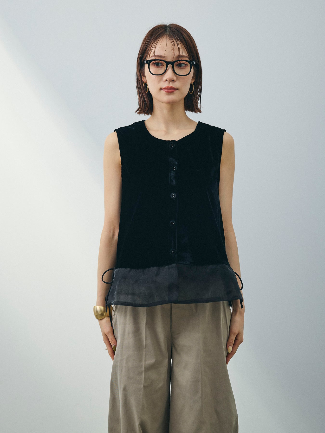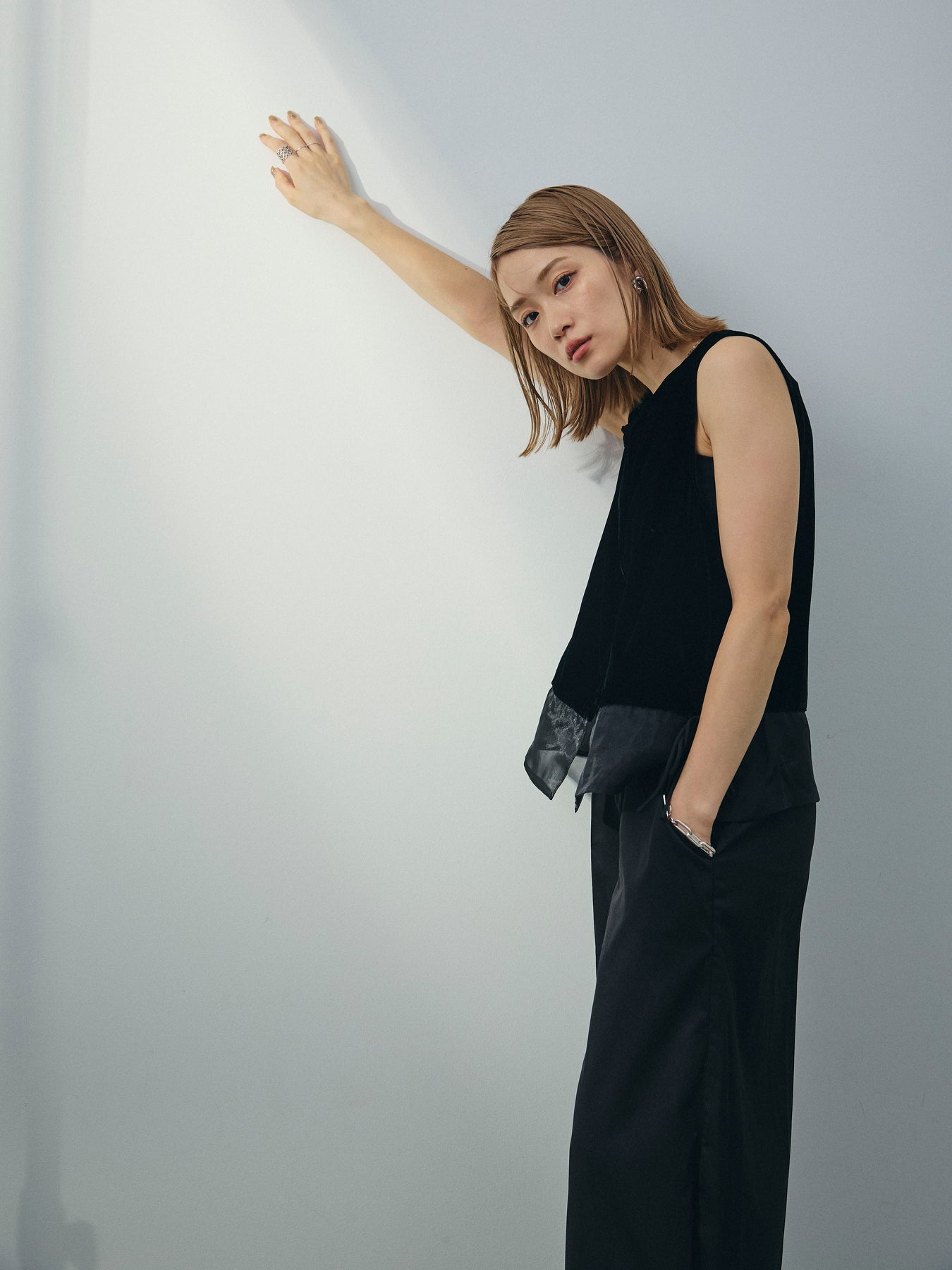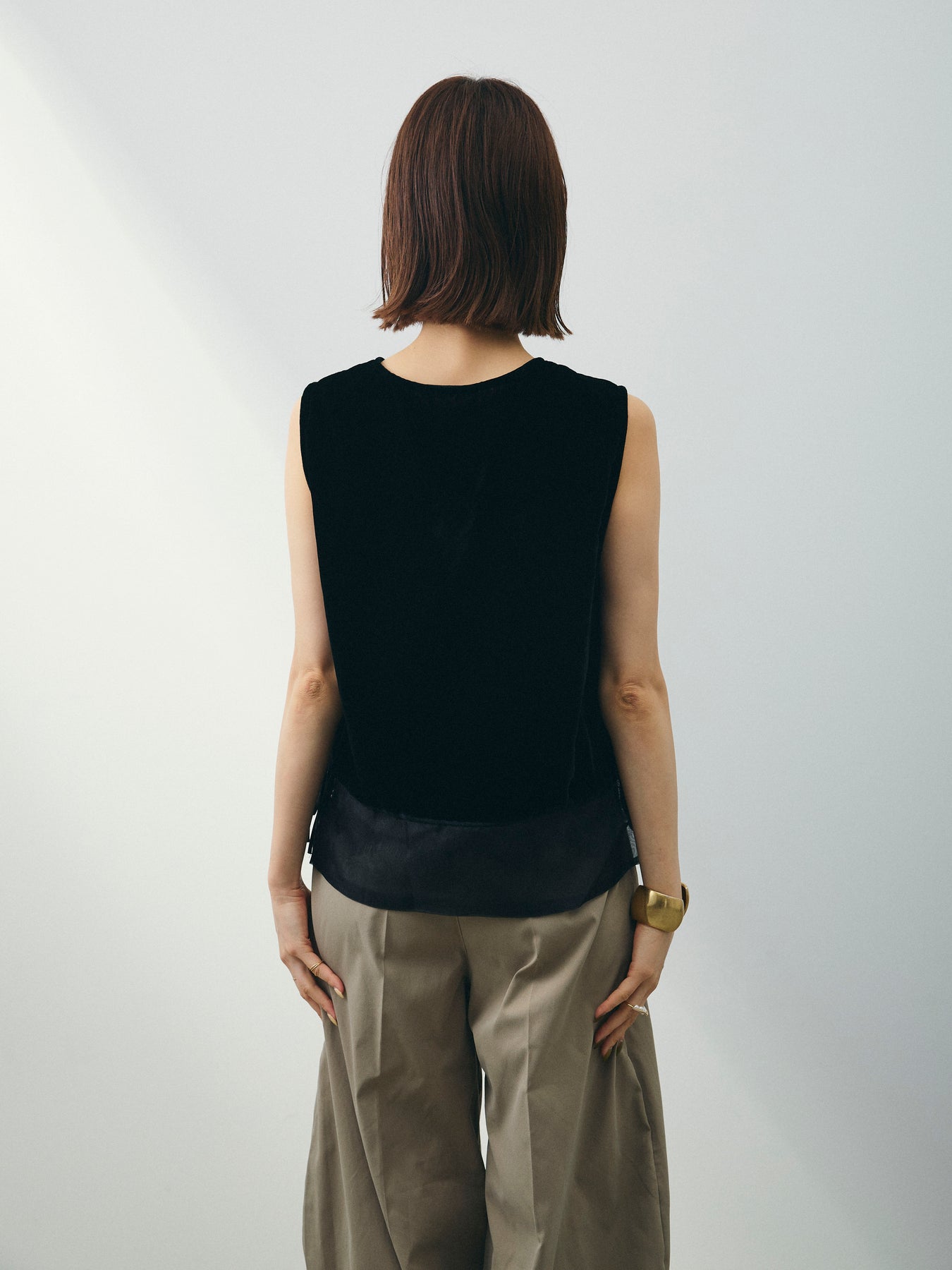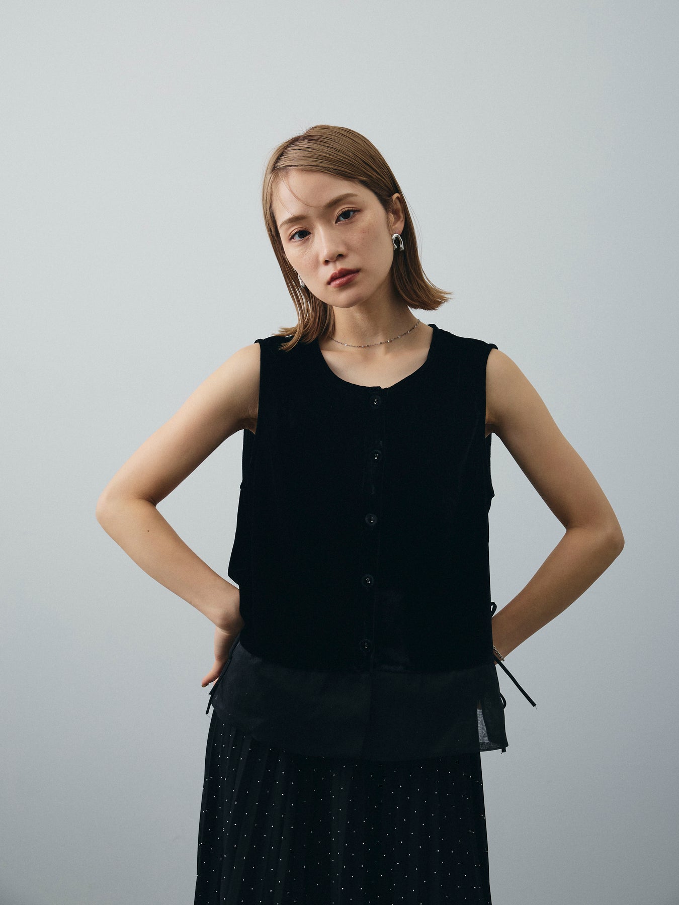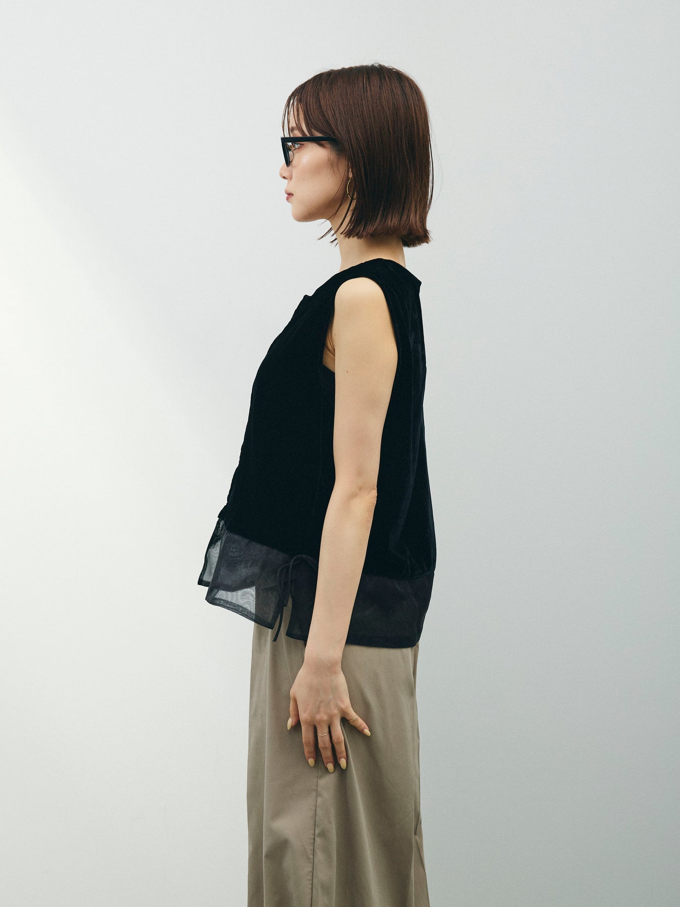 [予約]裾チュールベロアノースリーブプルオーバー/ブラック