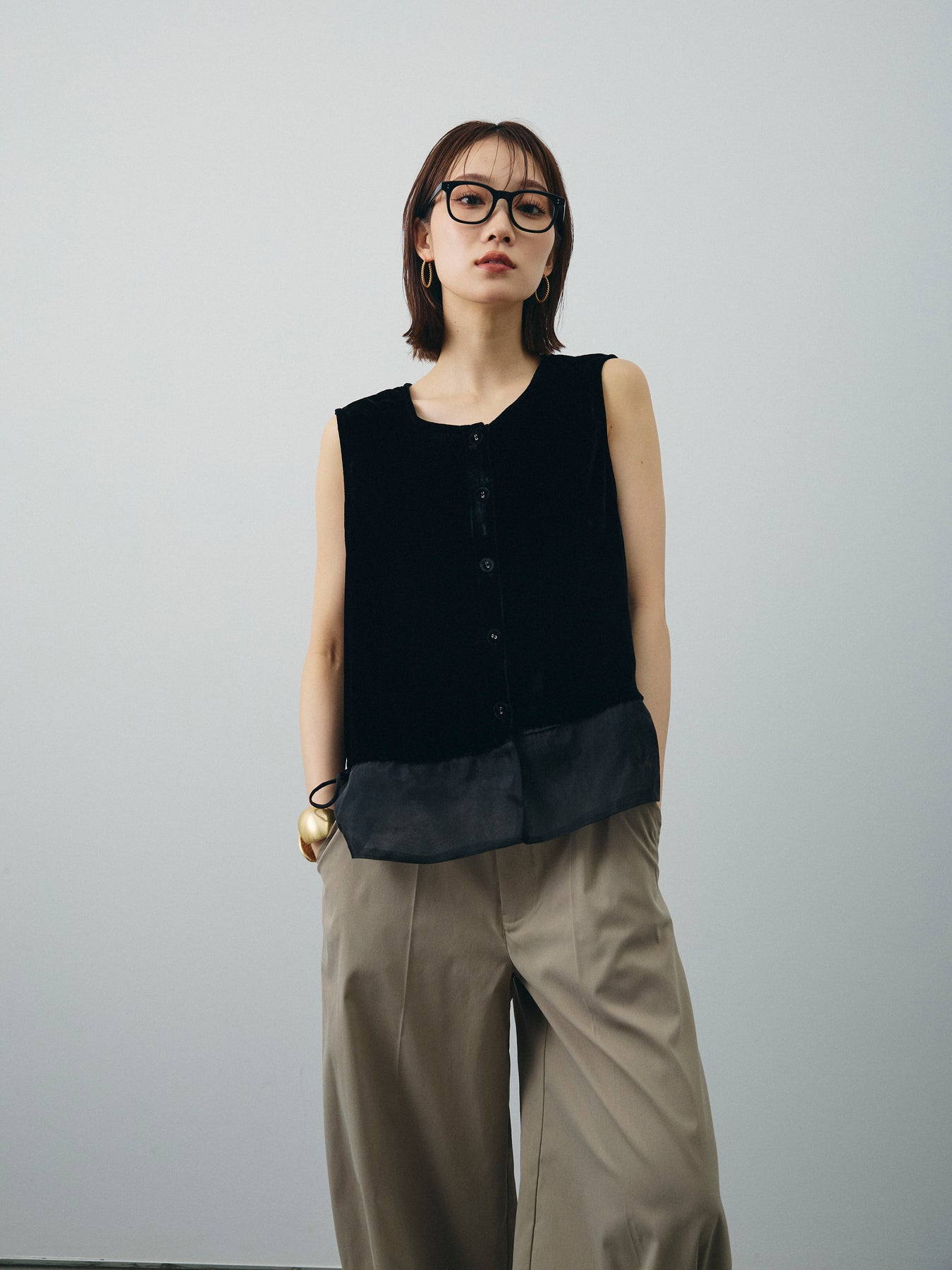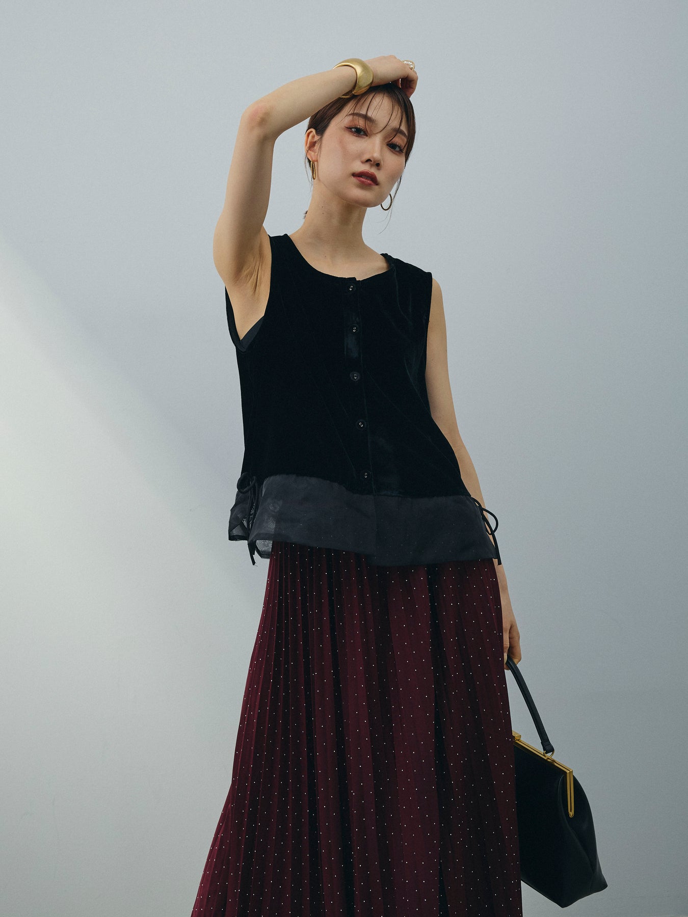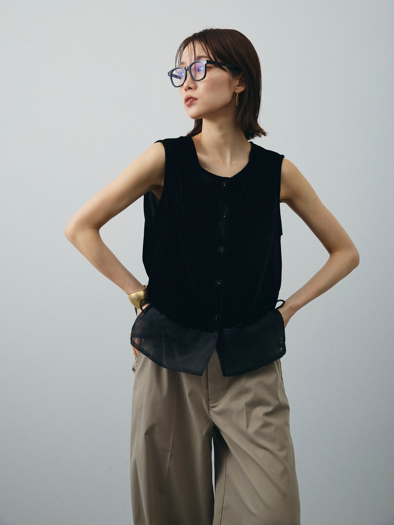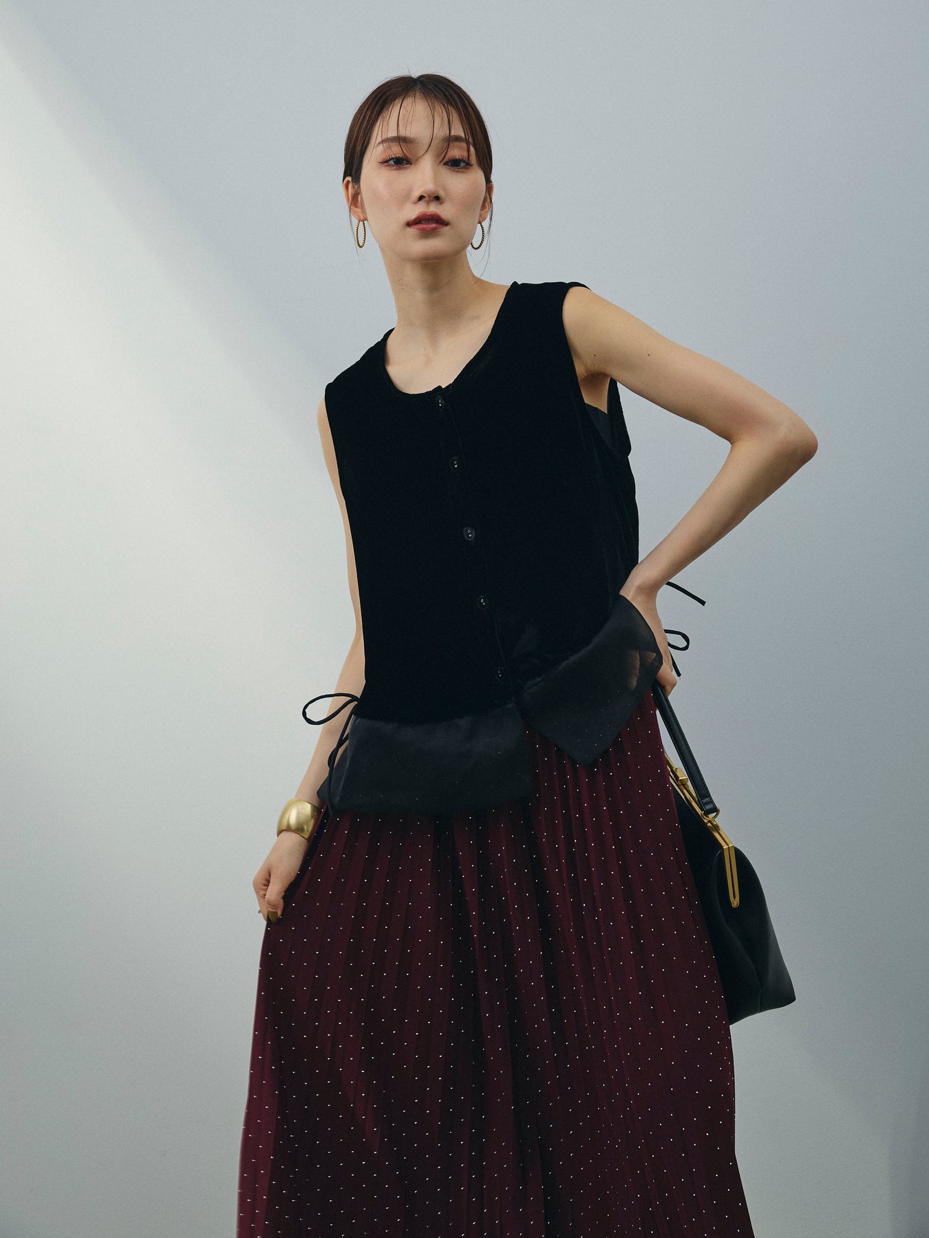 [予約]裾チュールベロアノースリーブプルオーバー/ブラック