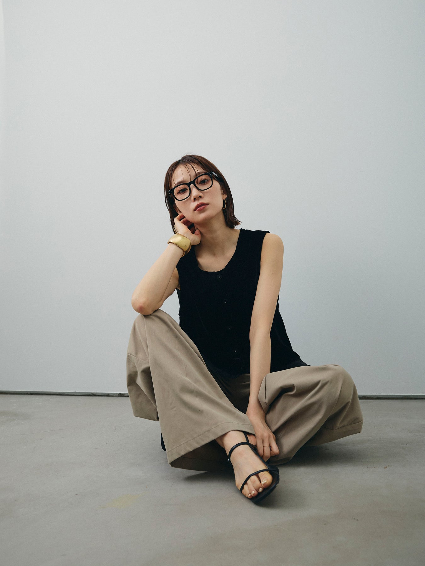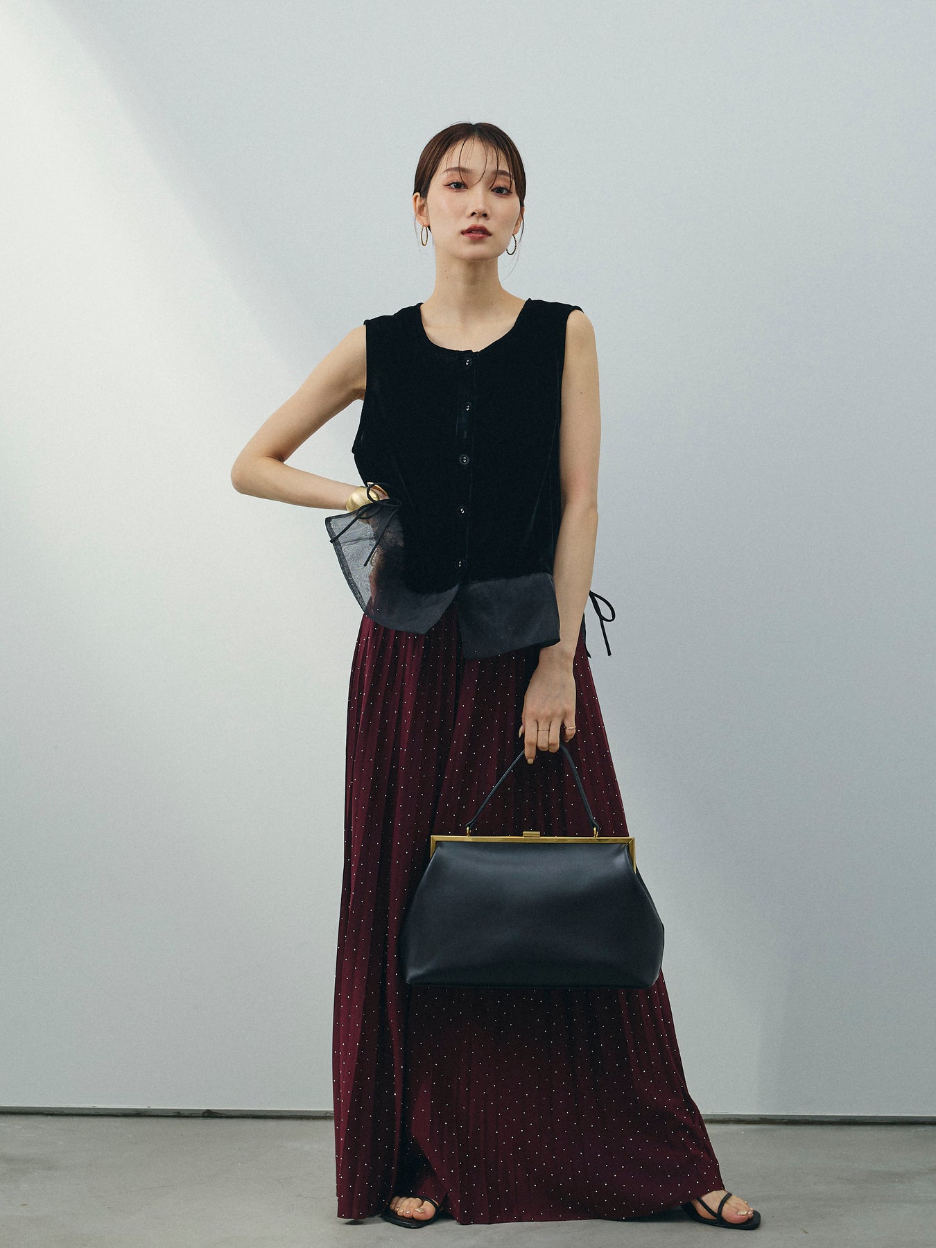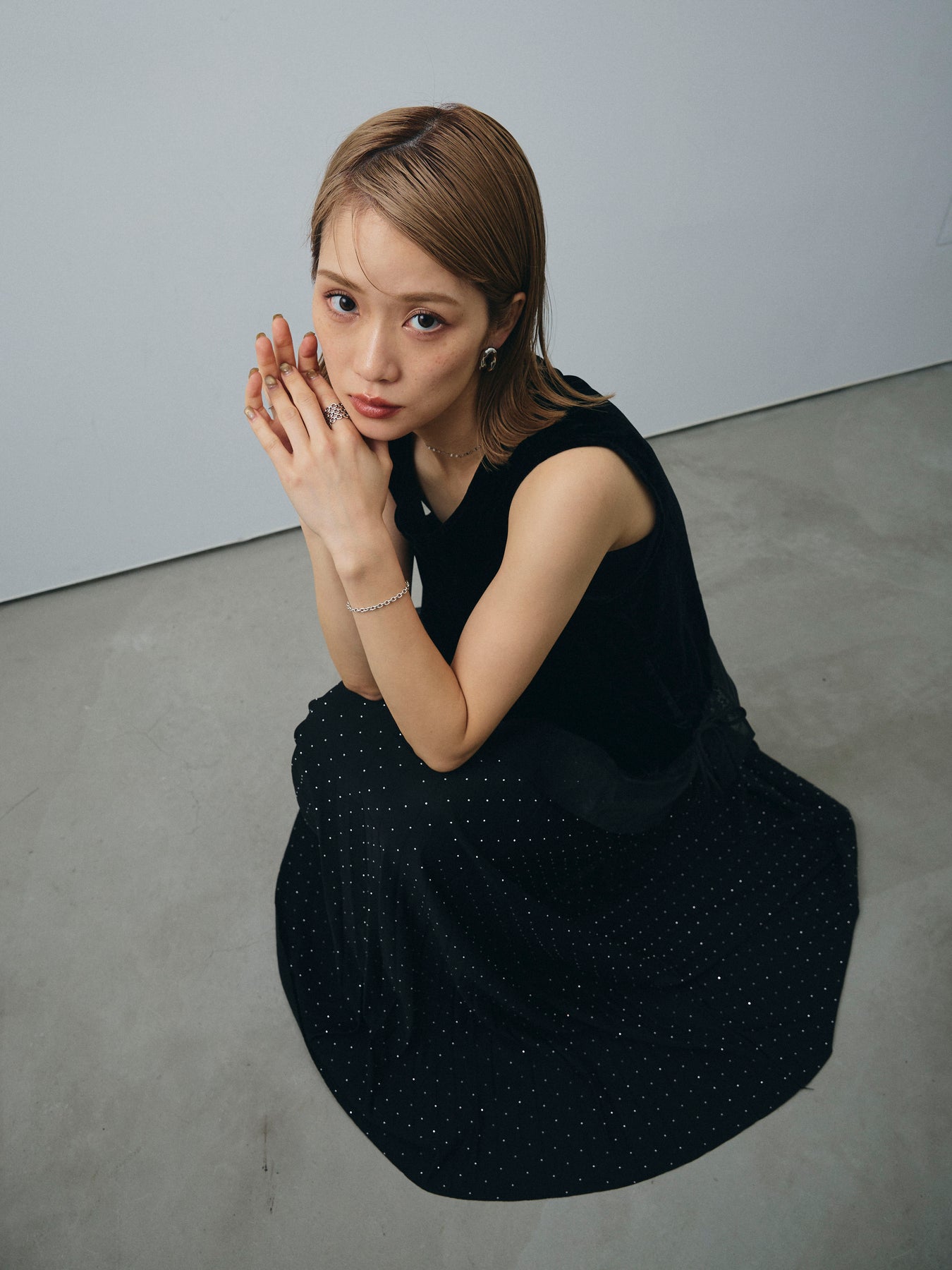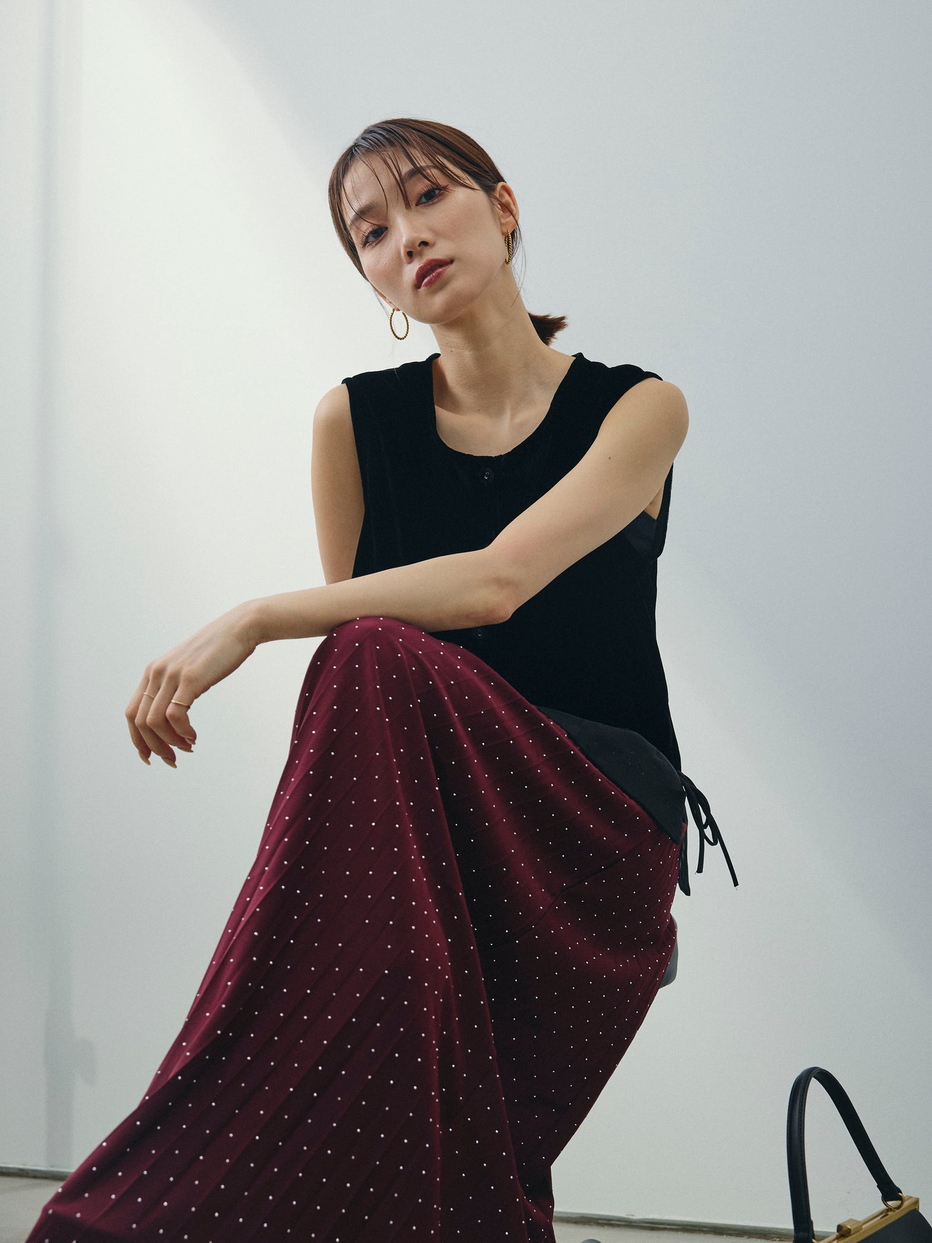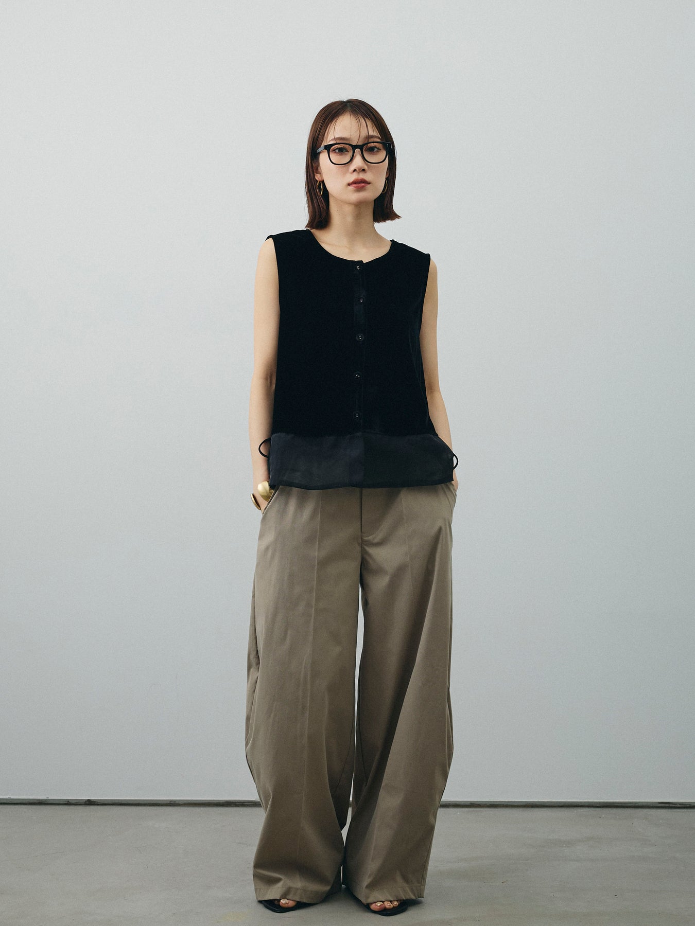 [予約]裾チュールベロアノースリーブプルオーバー/ブラック