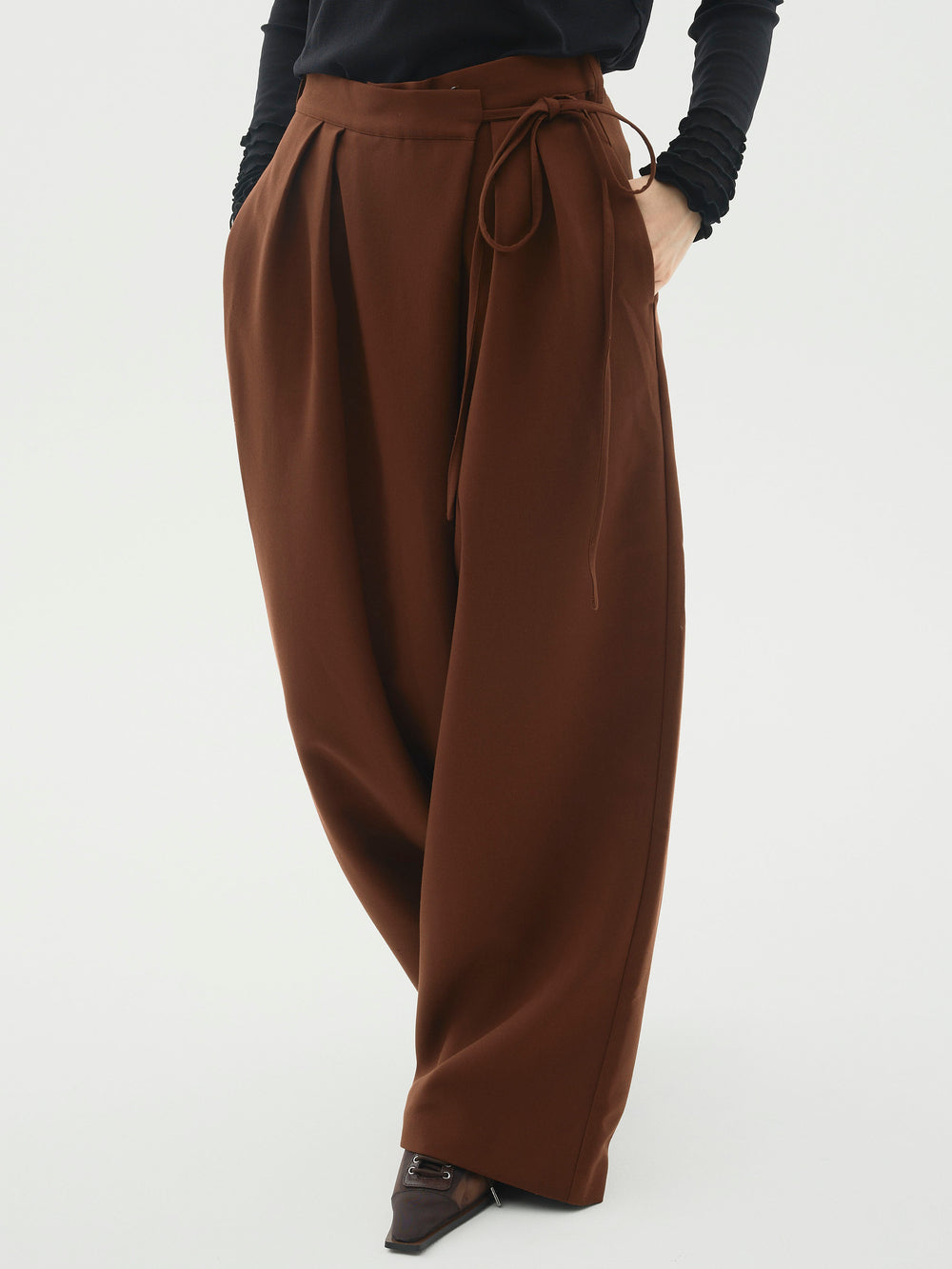 [予約]ラップデザインタックワイドパンツ/ブラウン