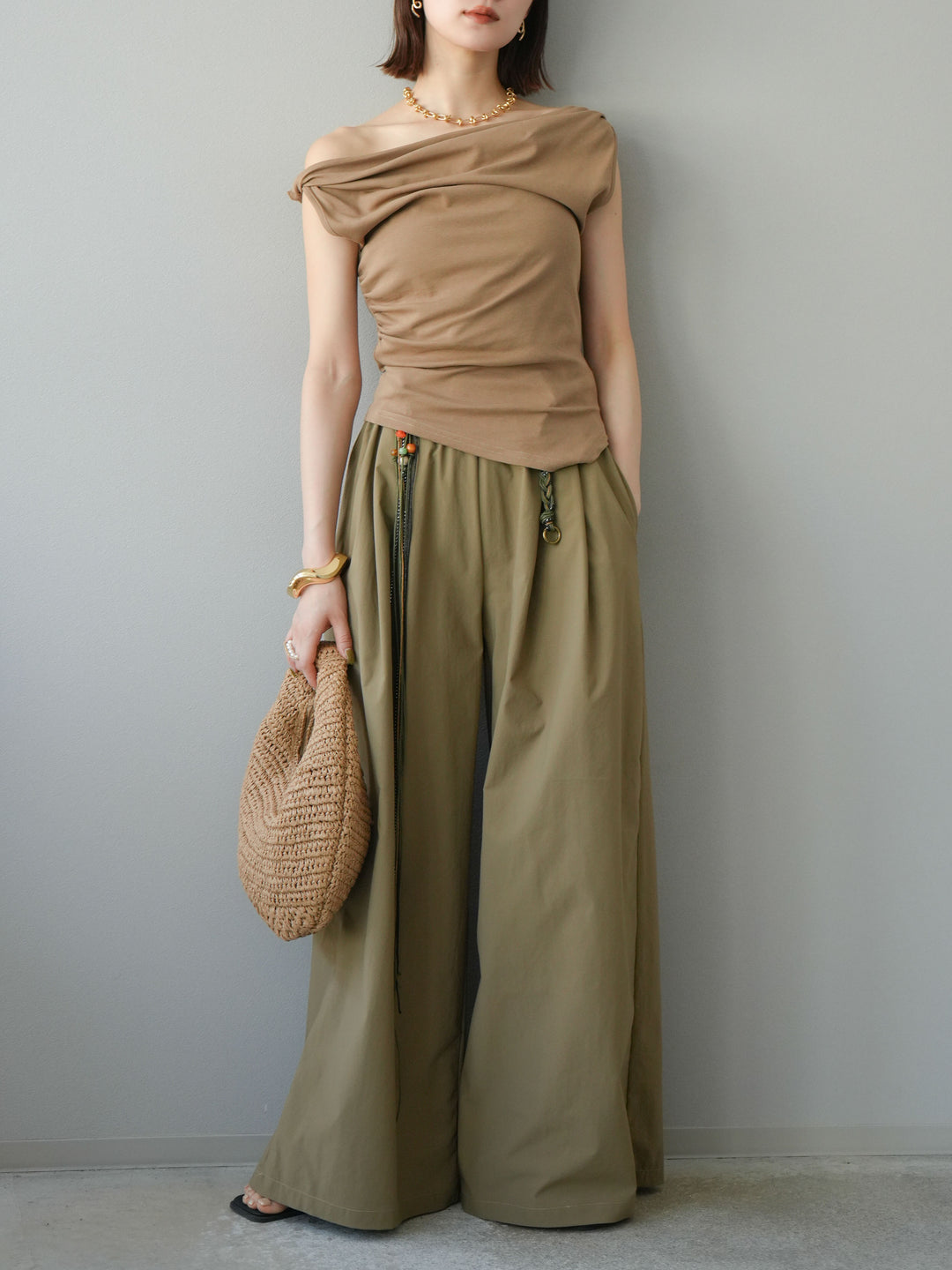 [SET]タックデザイントップス&ビーズベルト付きパンツSET UP(2set)