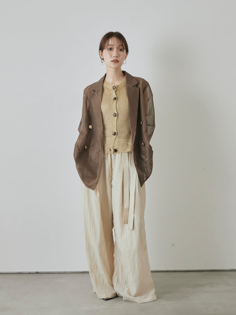 [予約]バックオーガンジーヘリンボーンストライプハーフジャケット/グレージュ