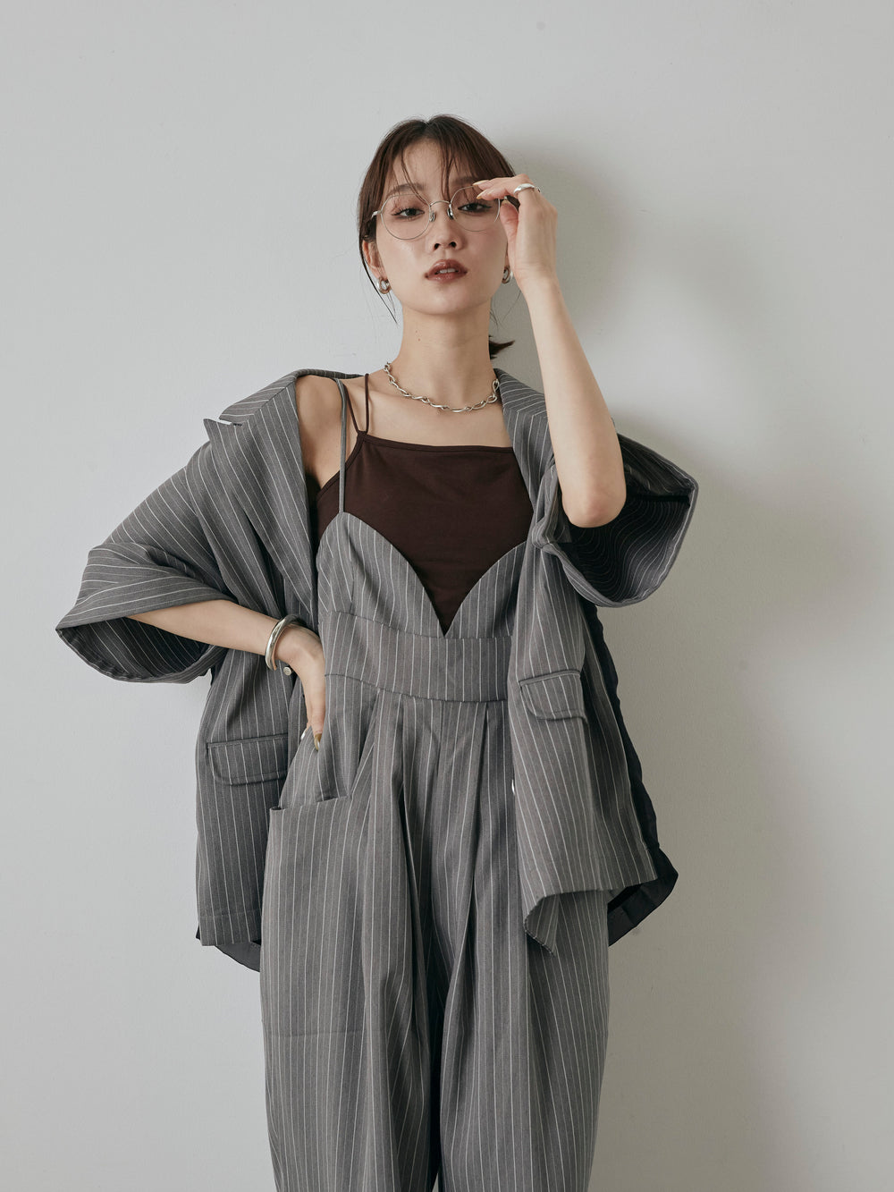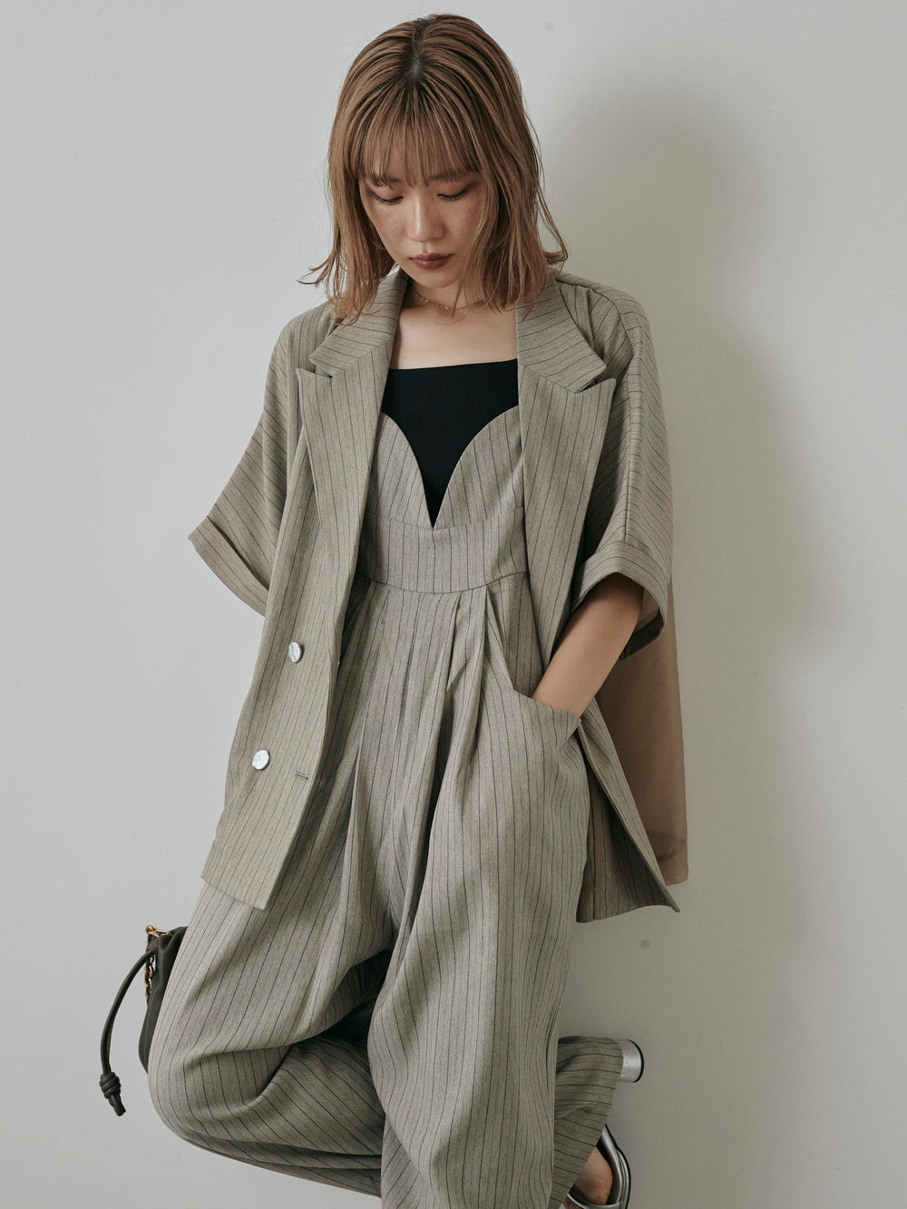 [SET]バックオーガンジーヘリンボーンストライプハーフジャケット+ヘリンボーンストライプサロペット(2set)