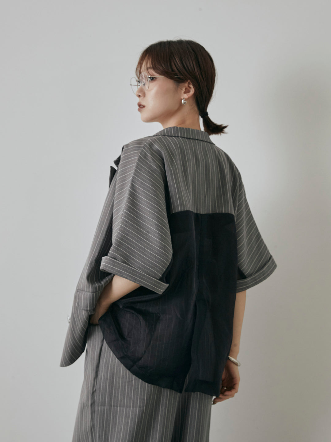 [SET]バックオーガンジーヘリンボーンストライプハーフジャケット+バックオーガンジーヘリンボーンストライプハーフジャケット(2set)