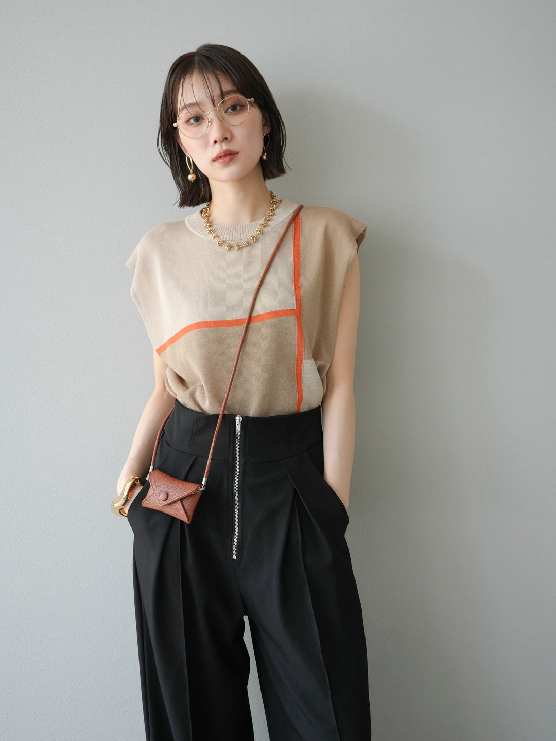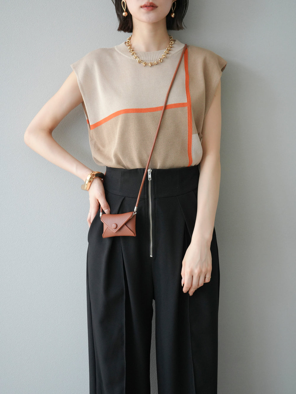 [予約]配色ノースリーブニットプルオーバー/ベージュ