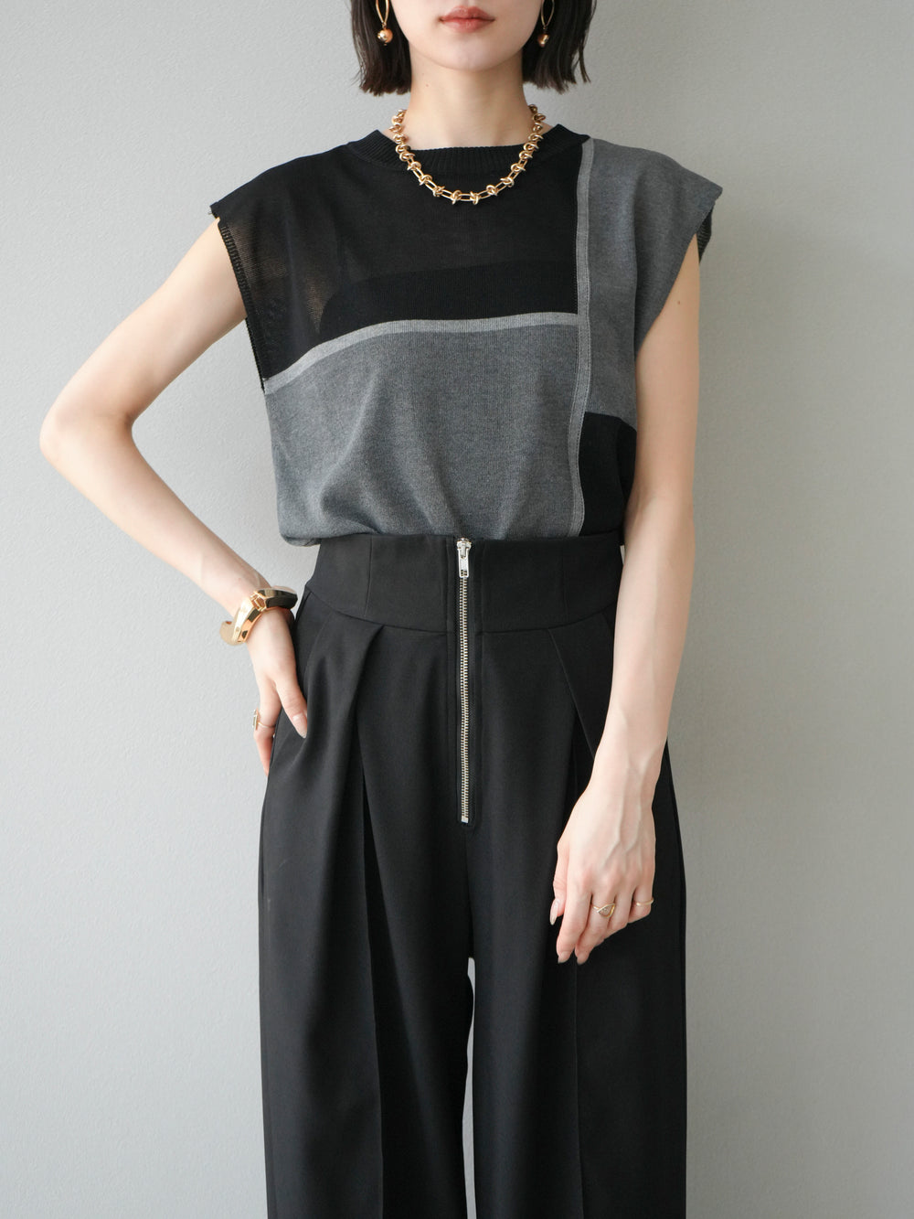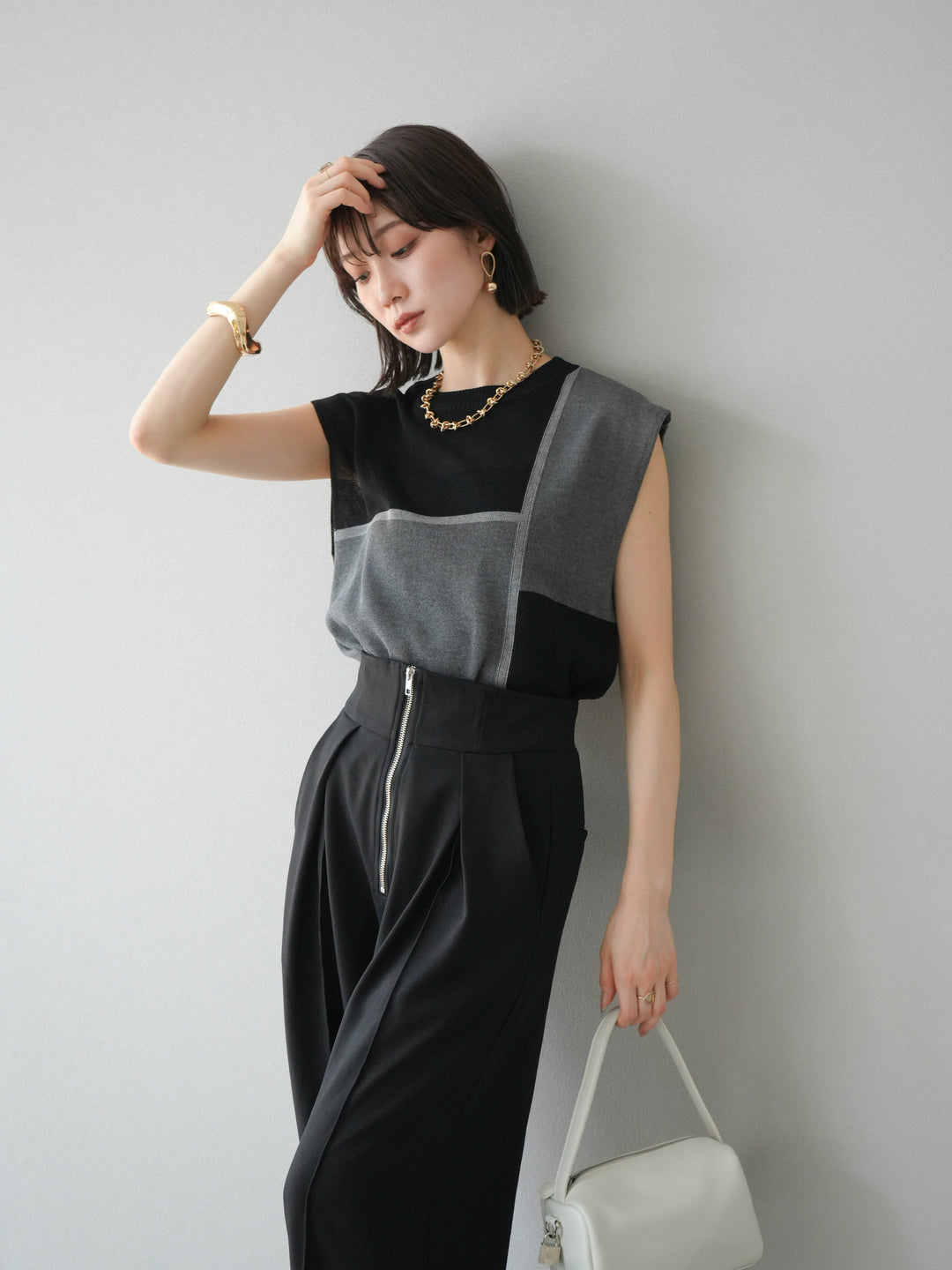 [予約]配色ノースリーブニットプルオーバー/ブラック
