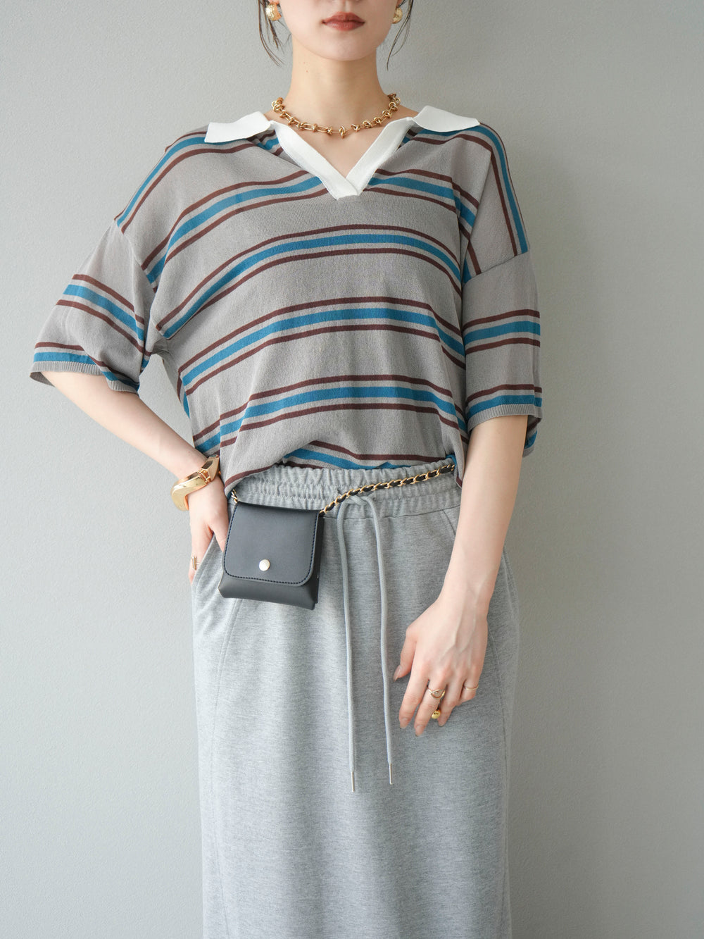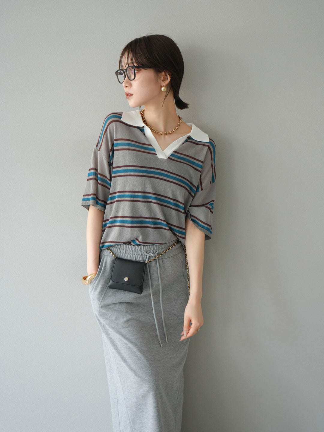 [予約]シアーポロニットプルオーバー/グレーボーダー