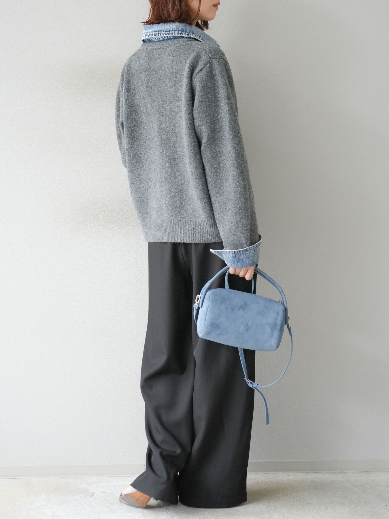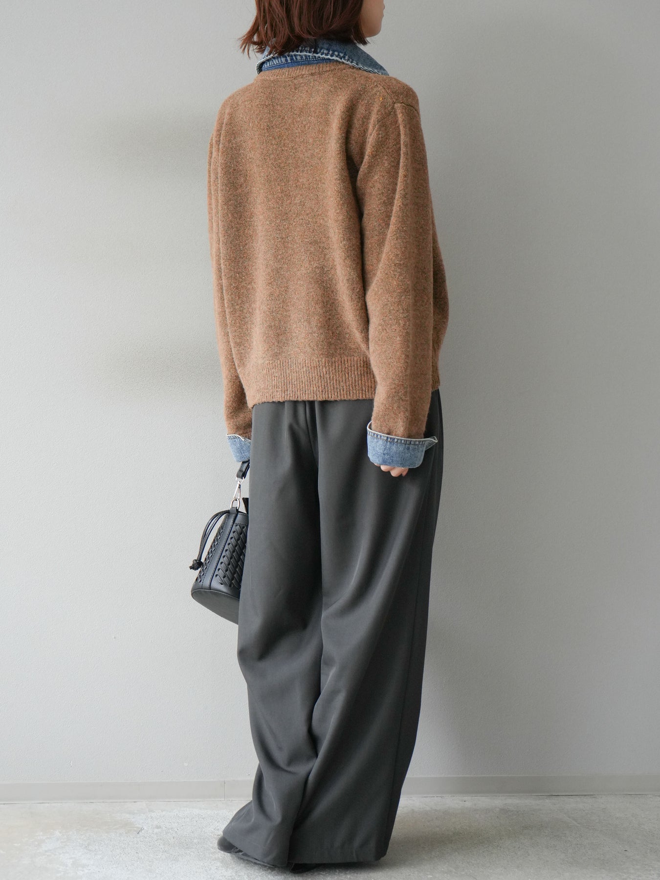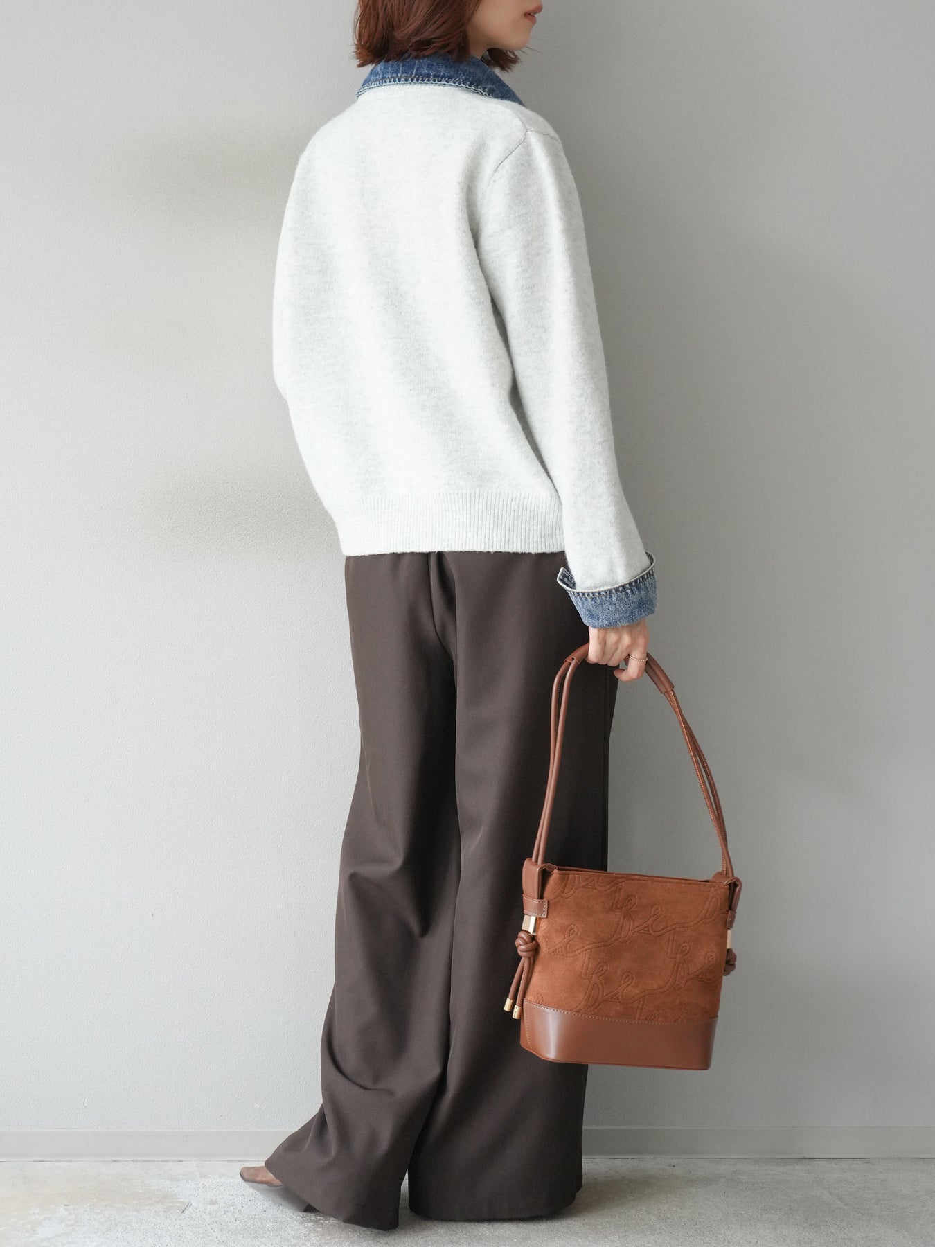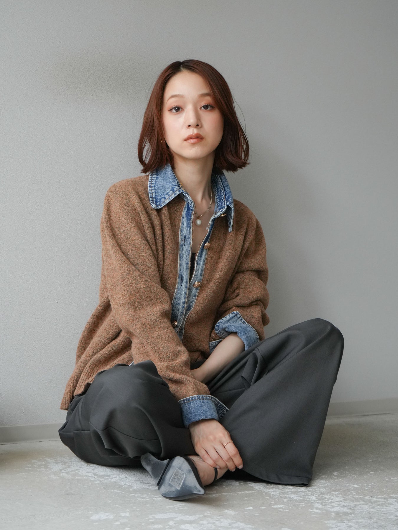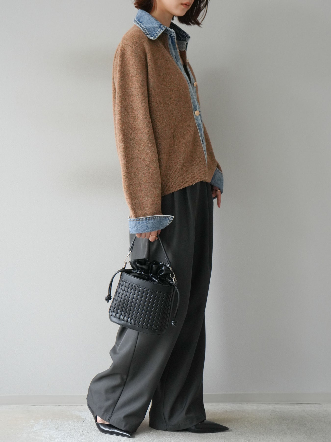 [SET]デニム襟ボタンニットカーディガン+エステルタックワイドパンツ(2set)