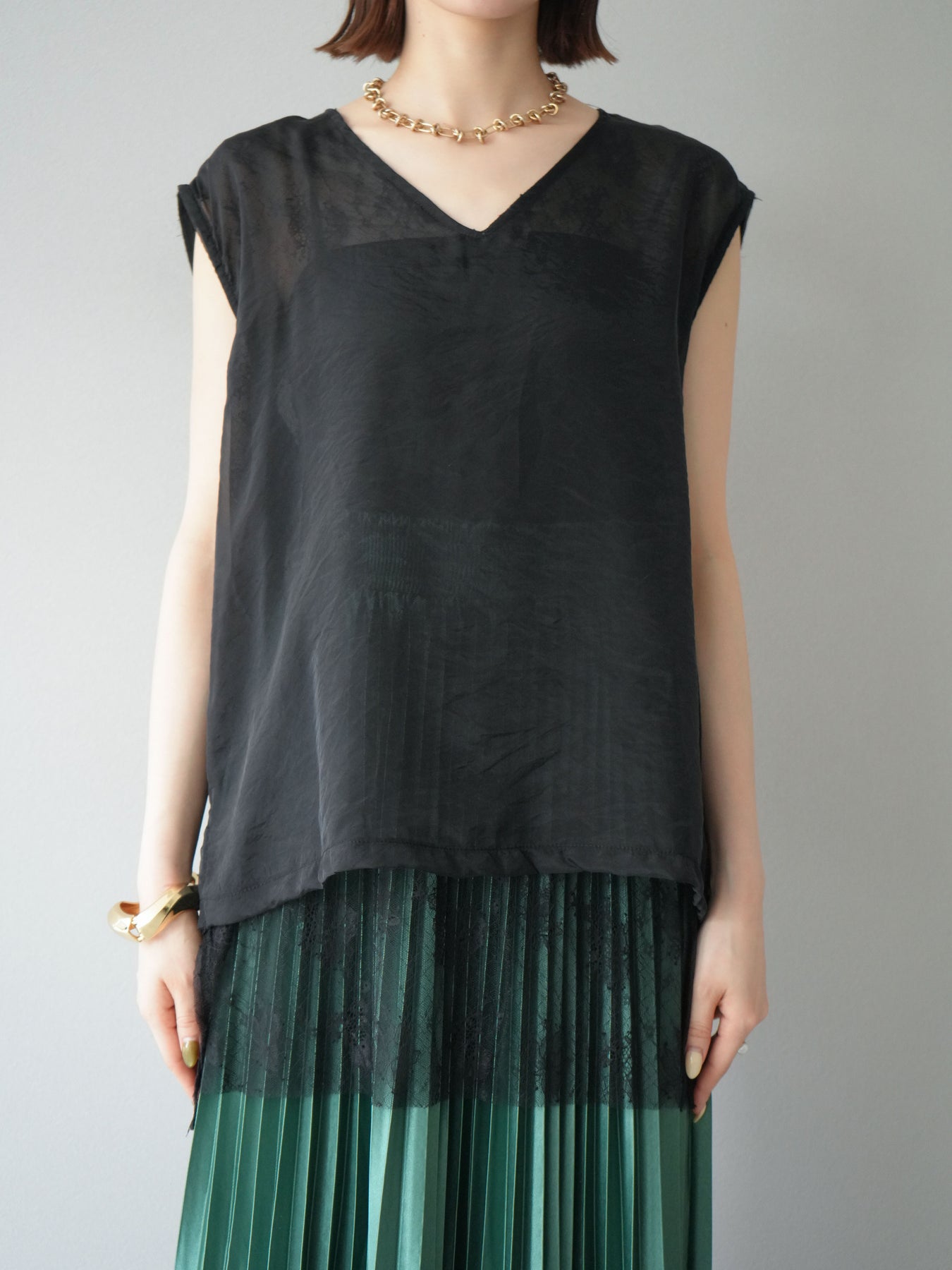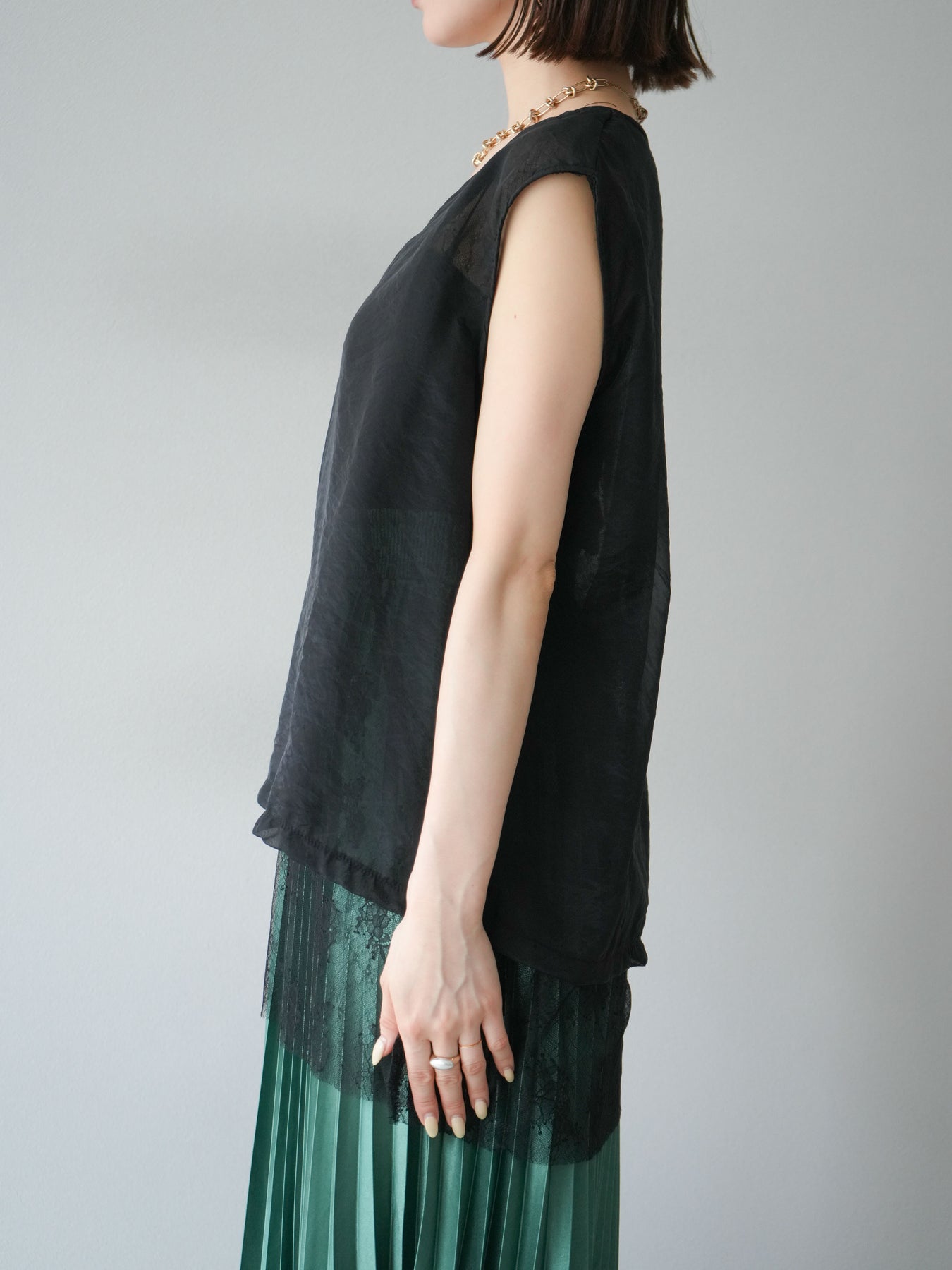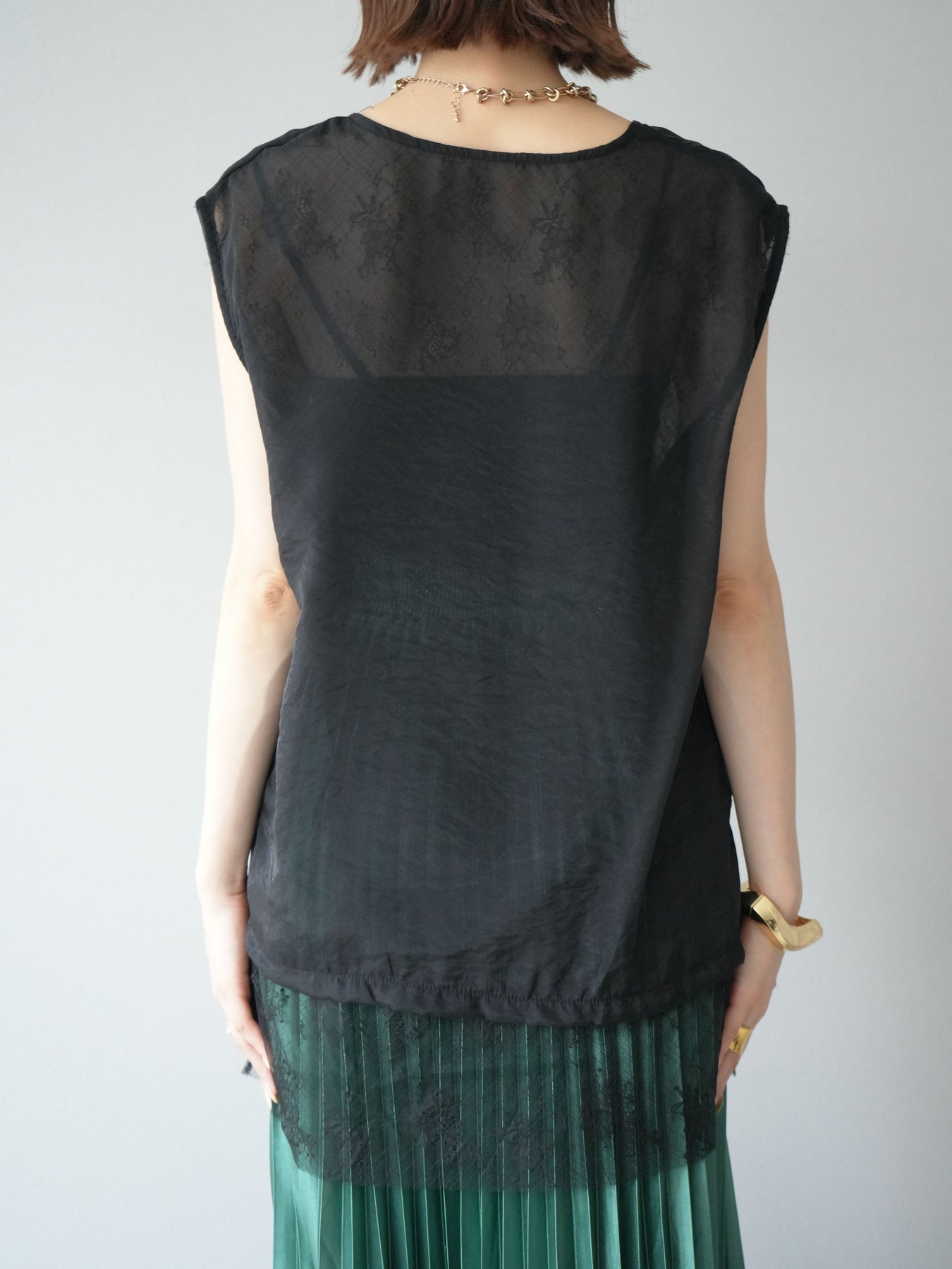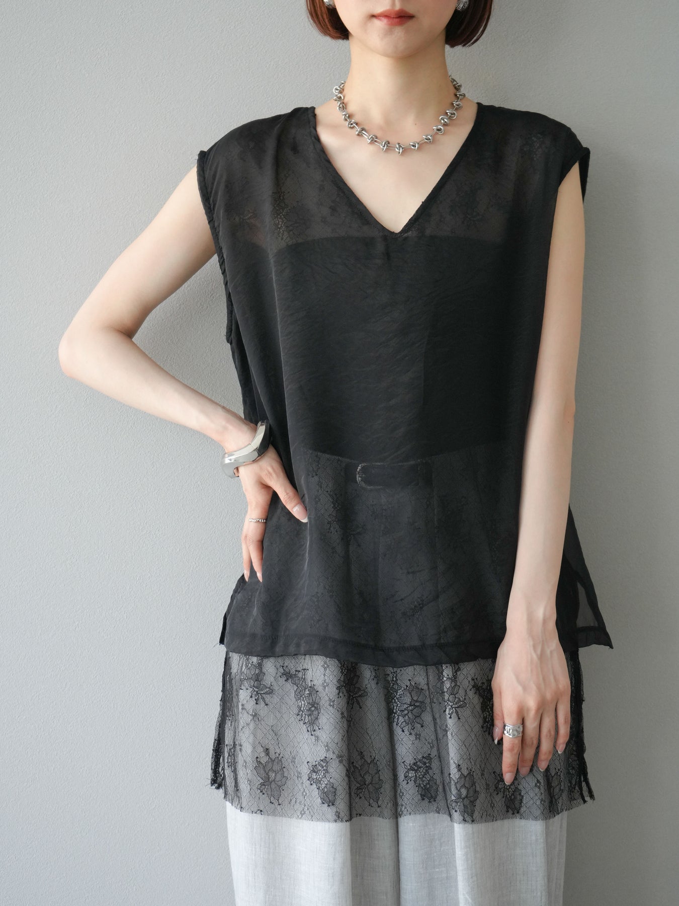 [予約]レースレイヤードオーガンジートップス/ブラック