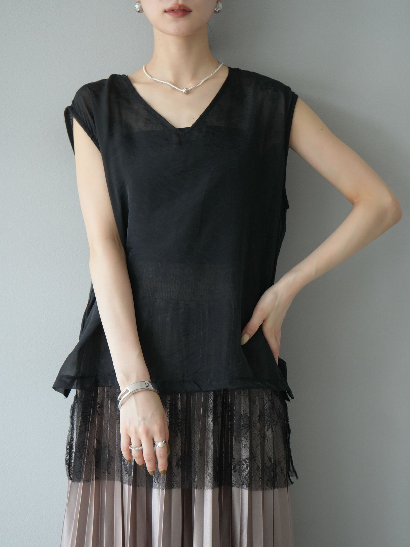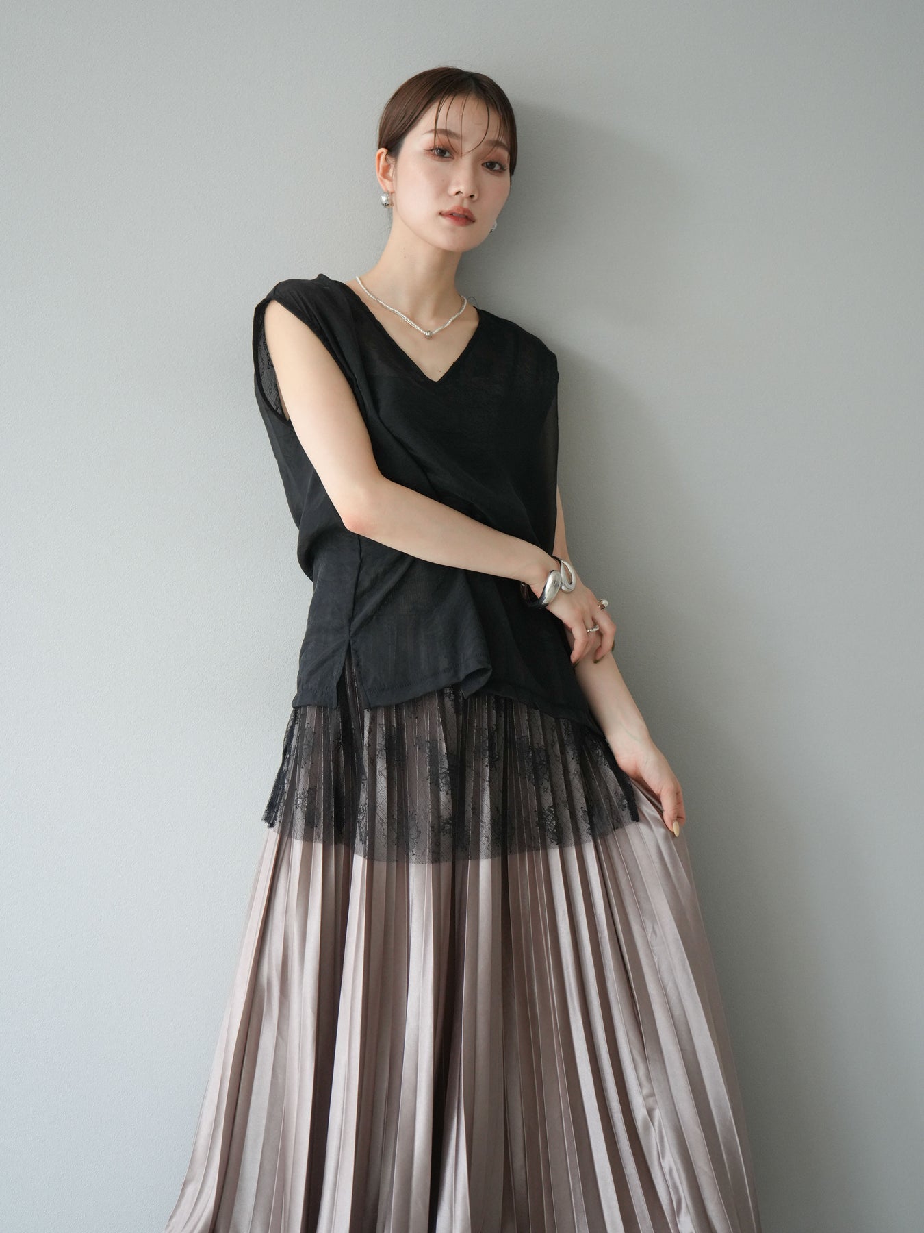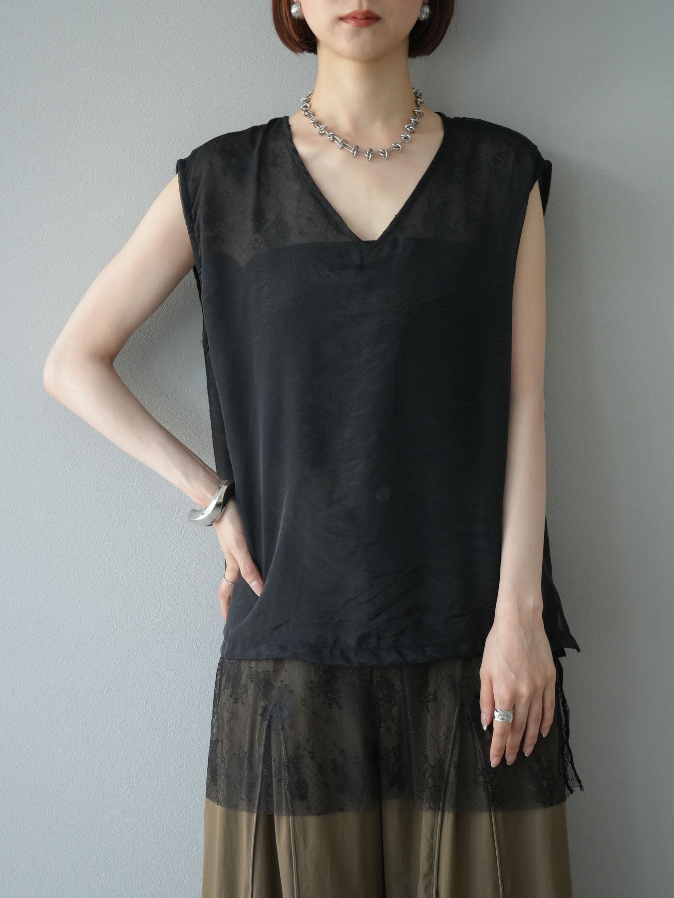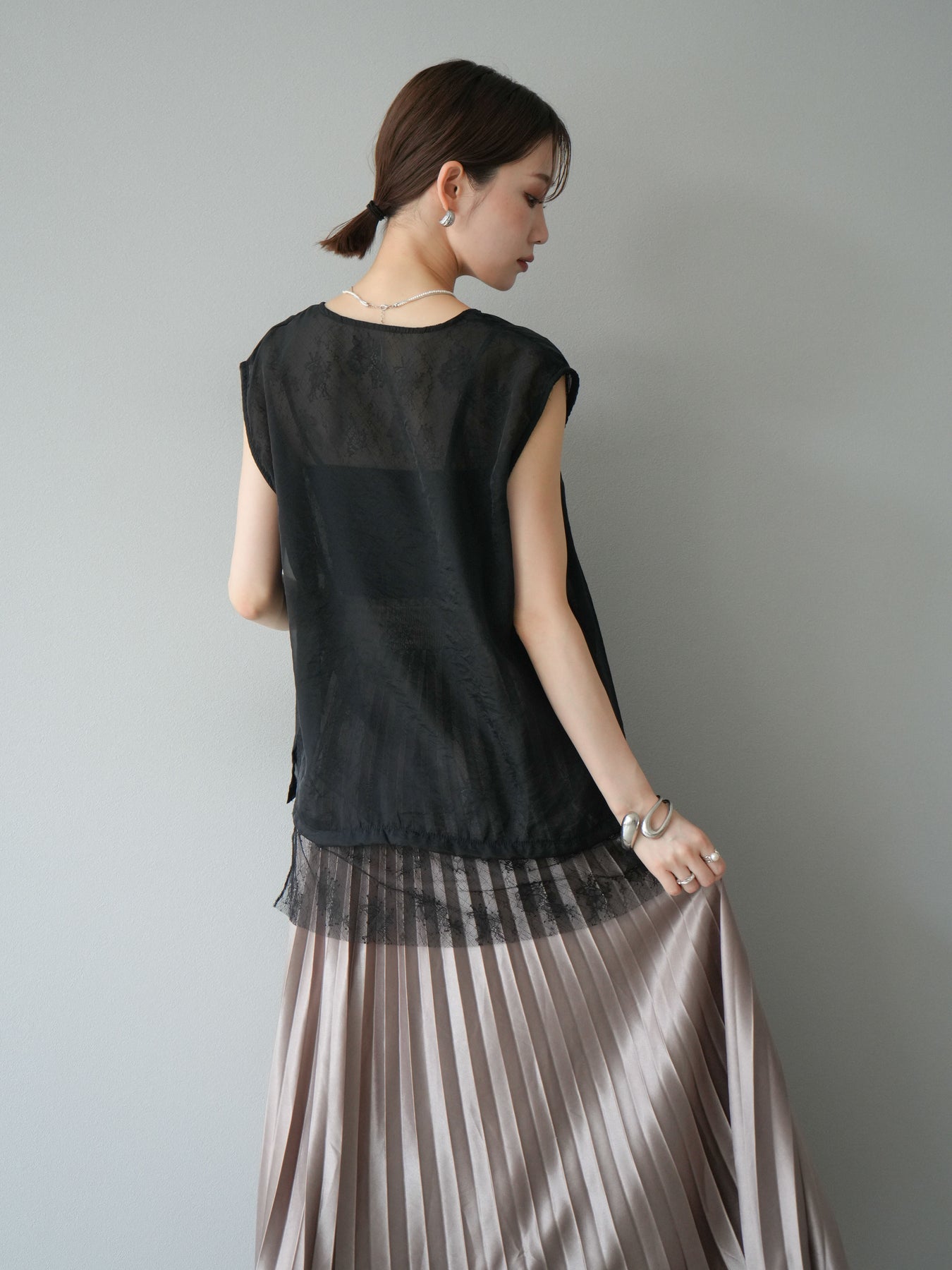 [予約]レースレイヤードオーガンジートップス/ブラック