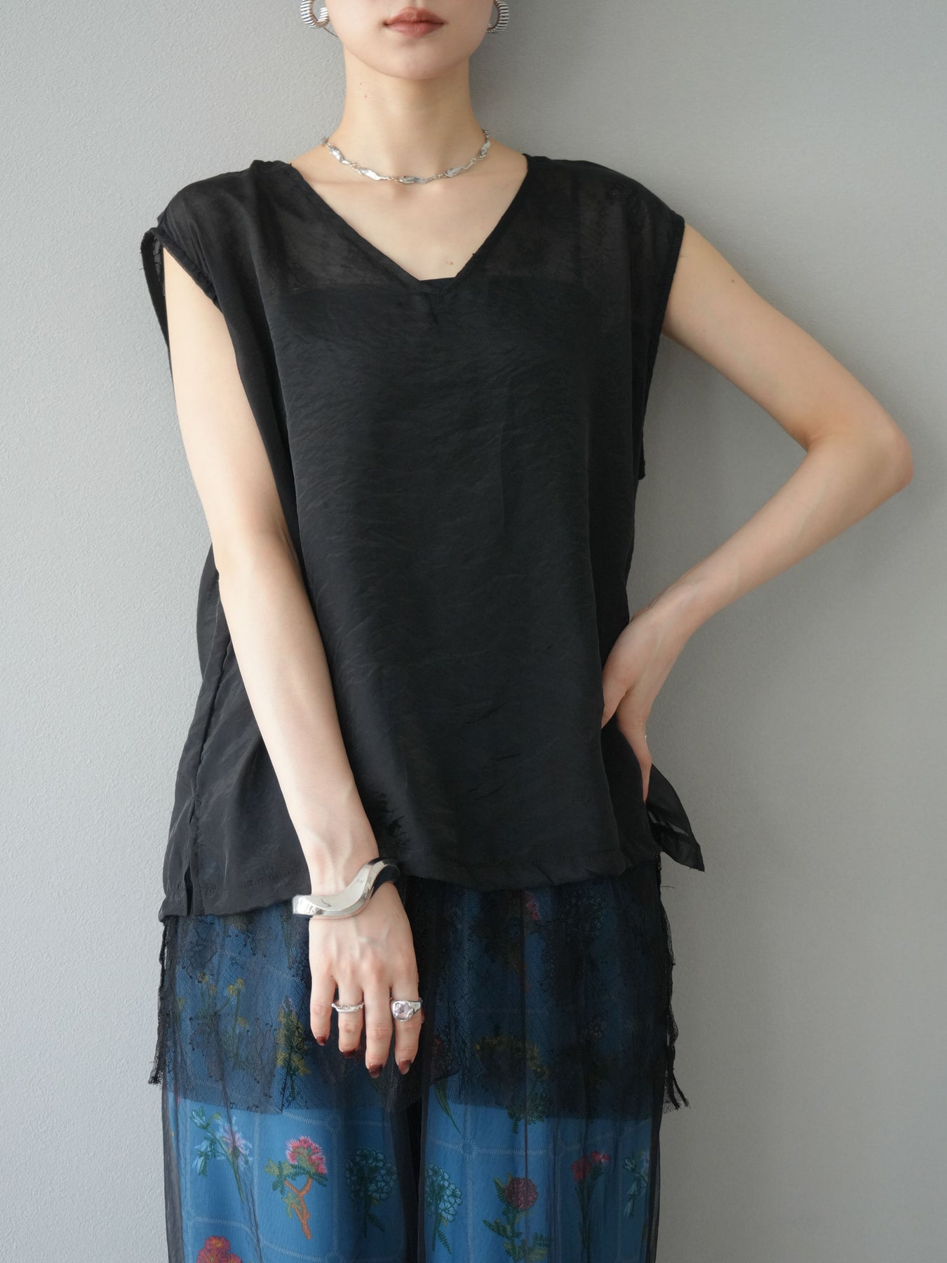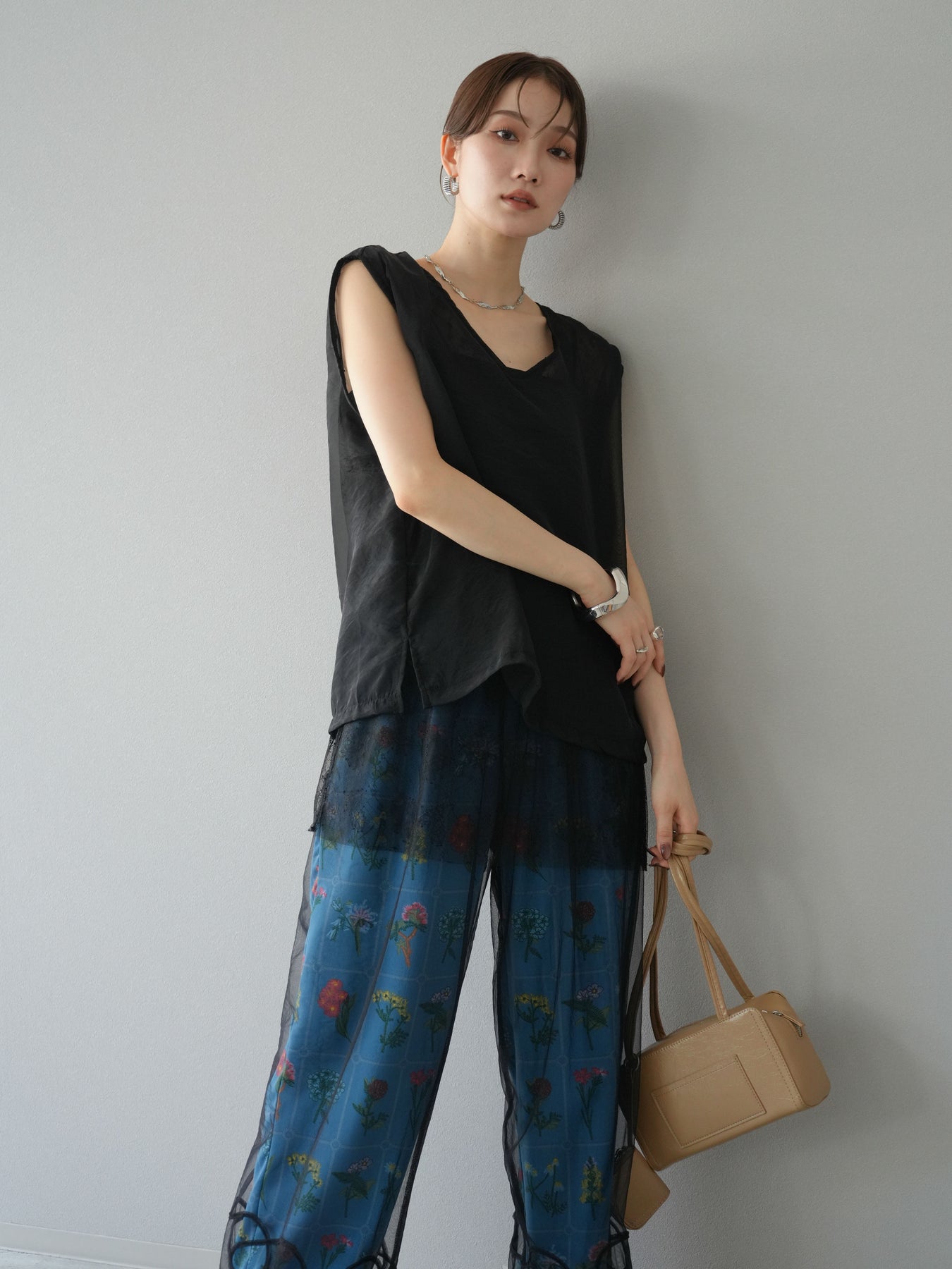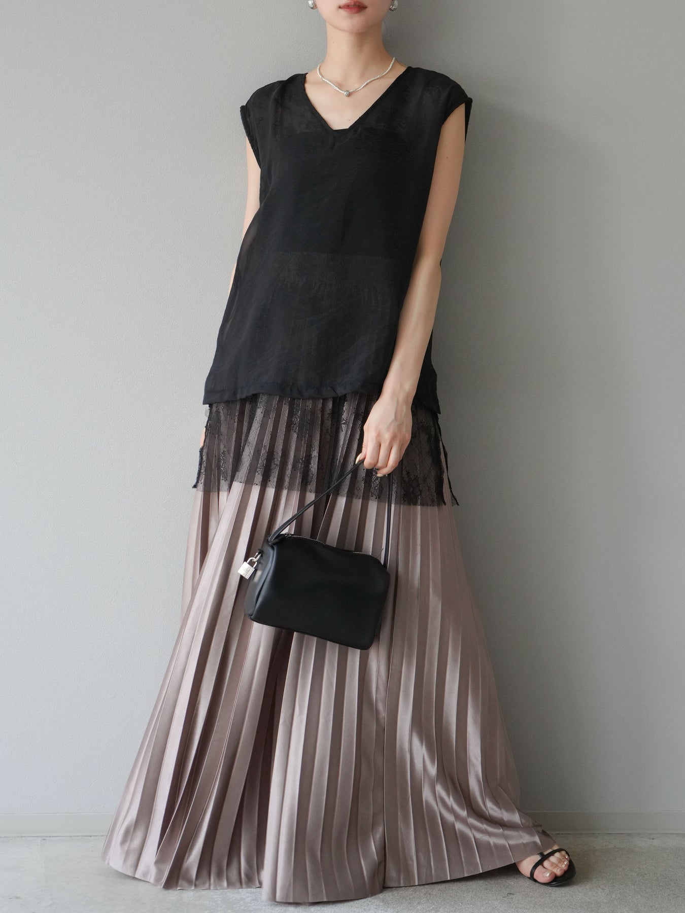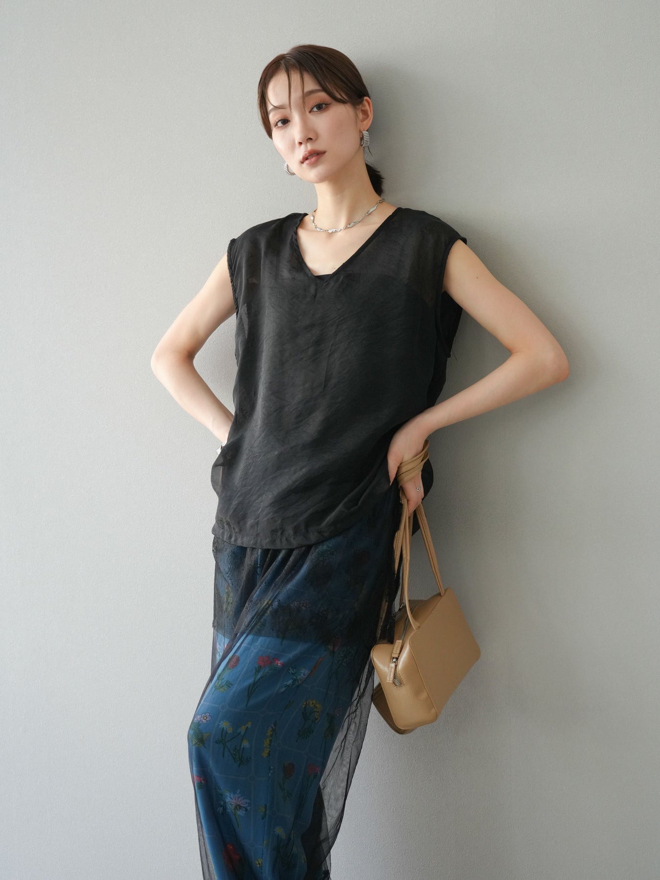 [予約]レースレイヤードオーガンジートップス/ブラック