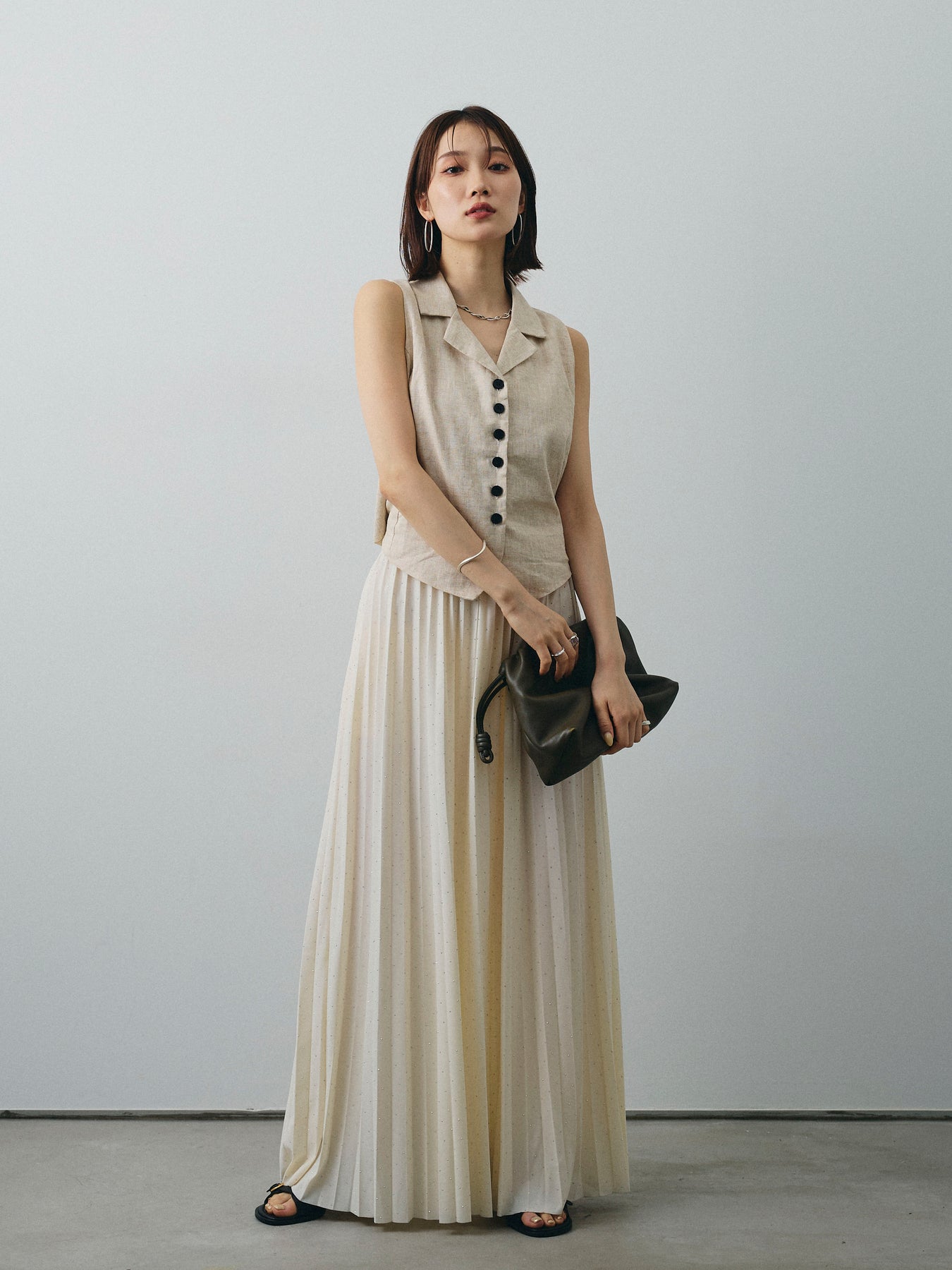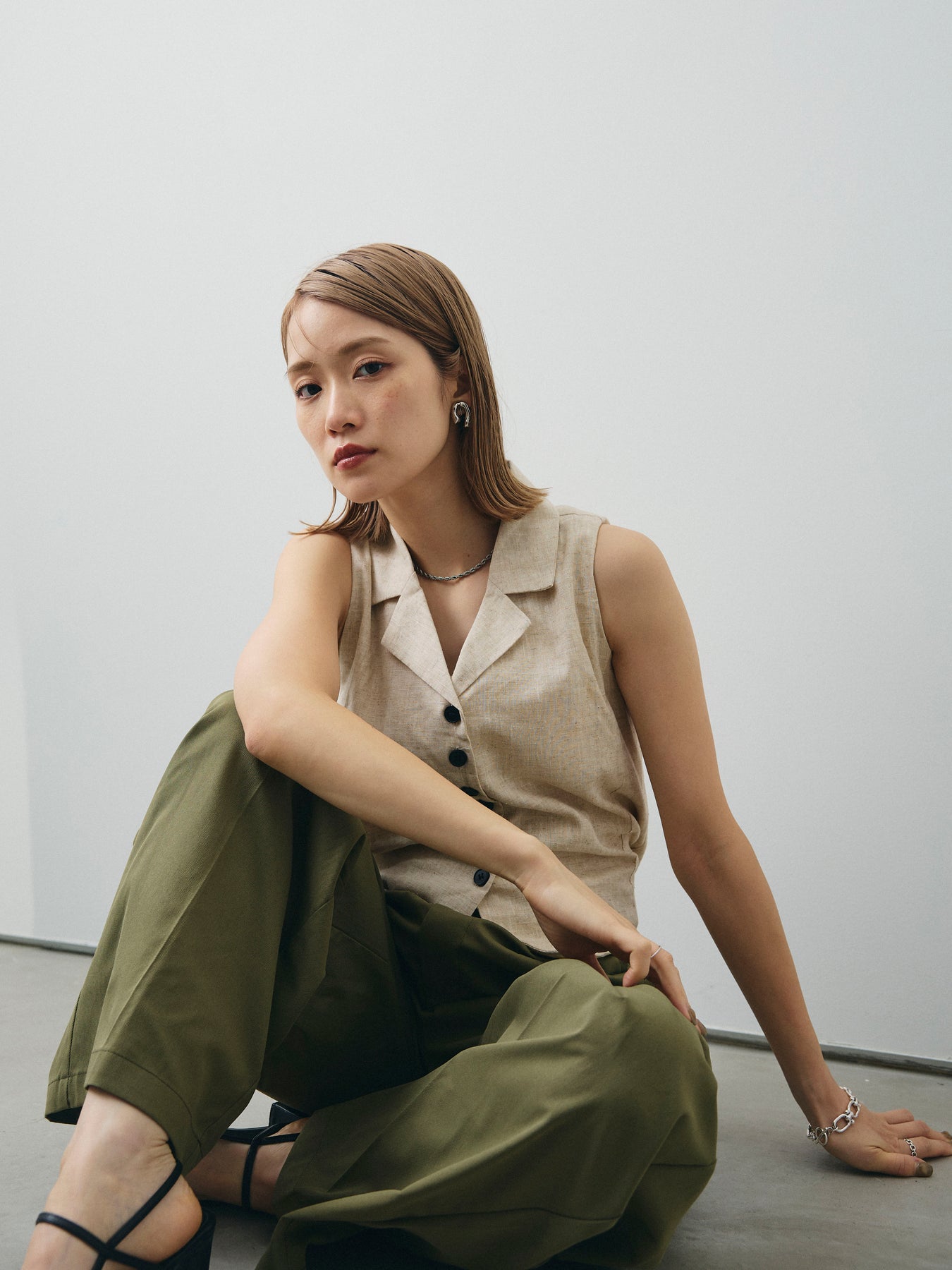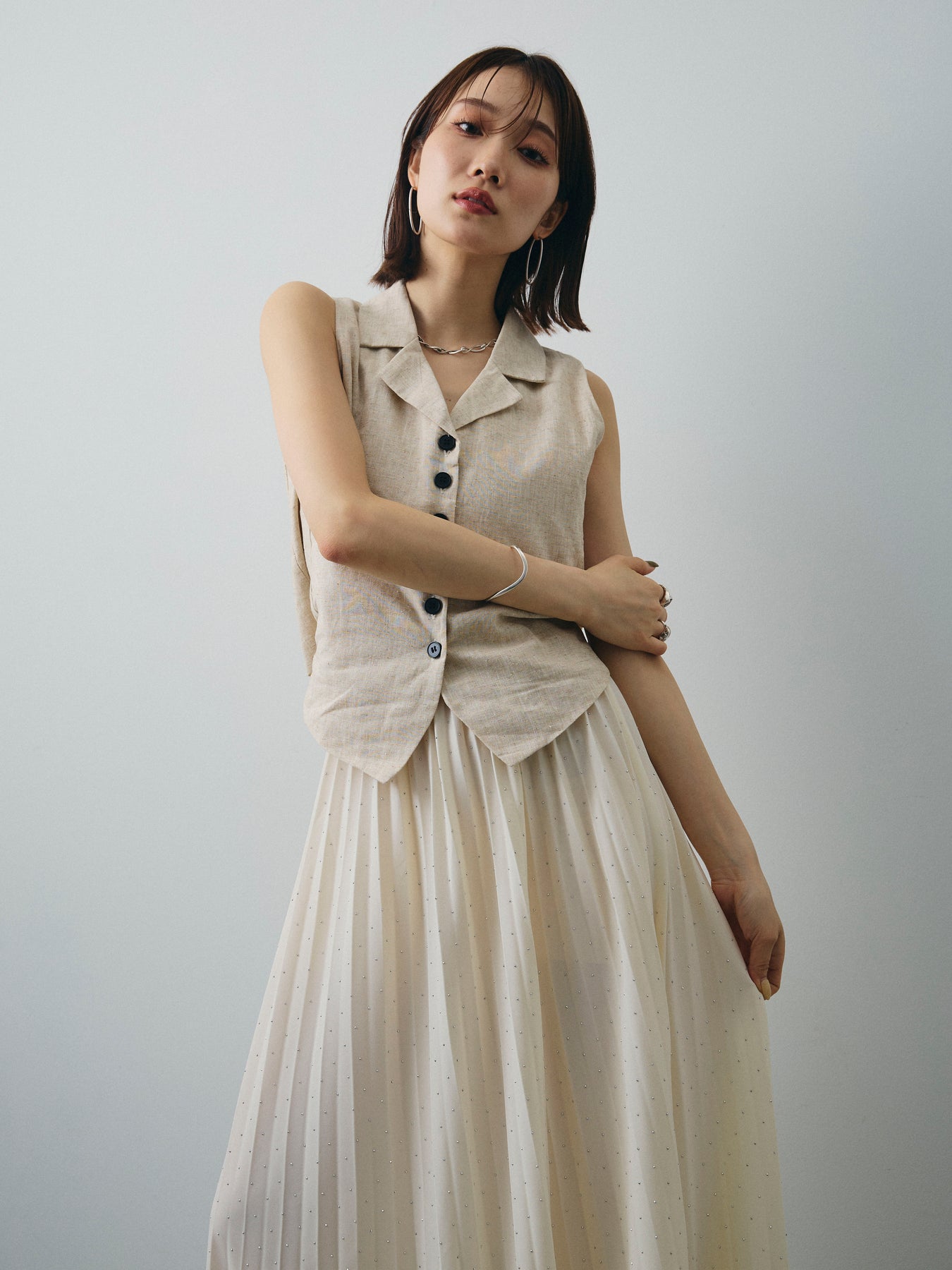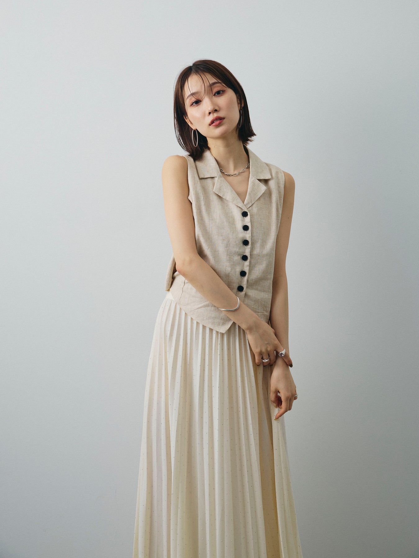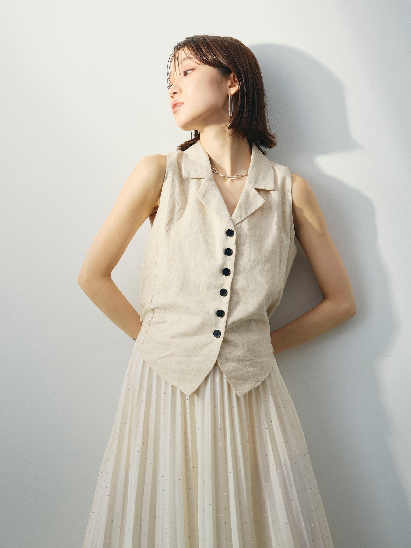 [予約]リネンライクテーラードジレ/オートミール
