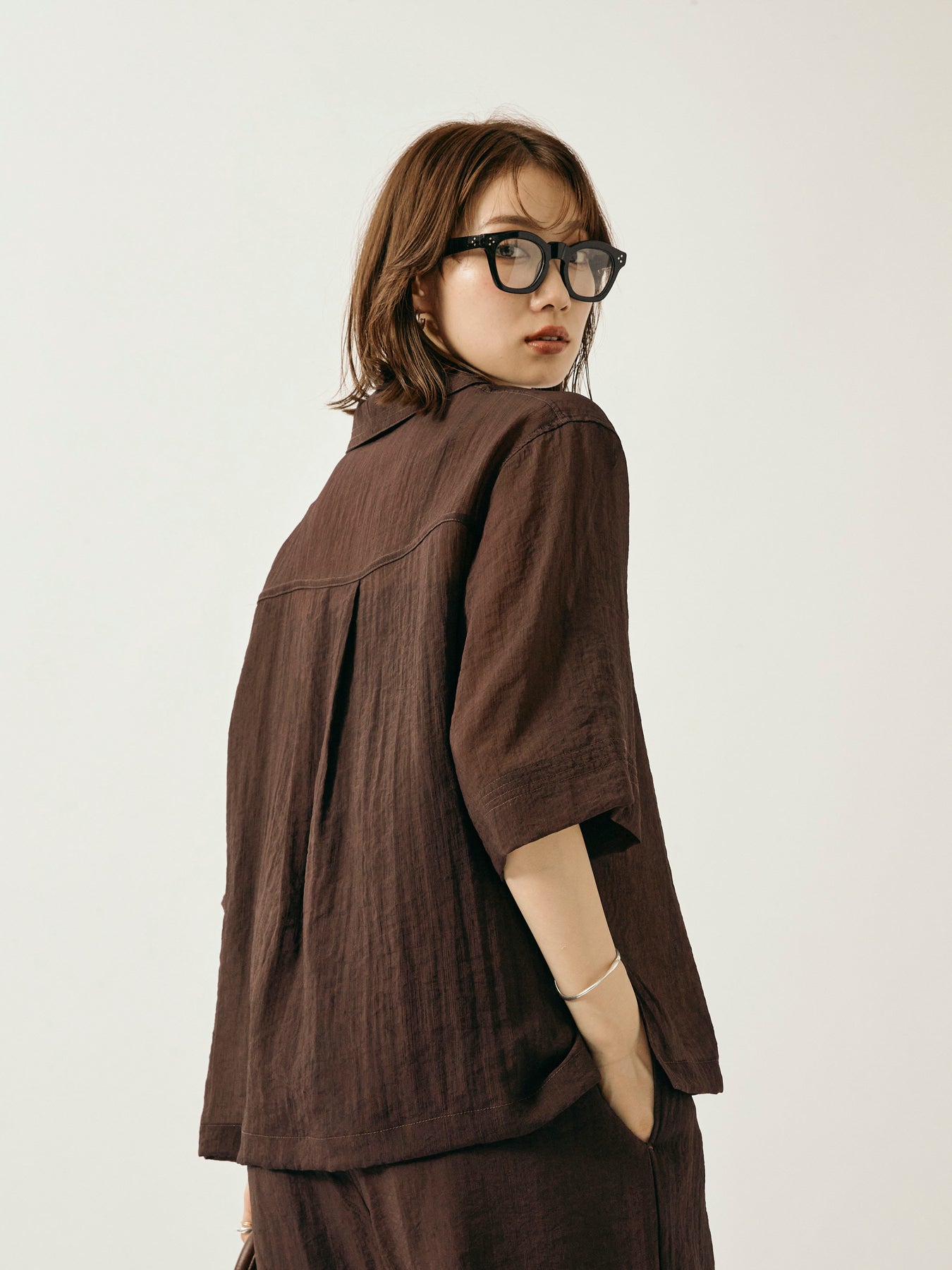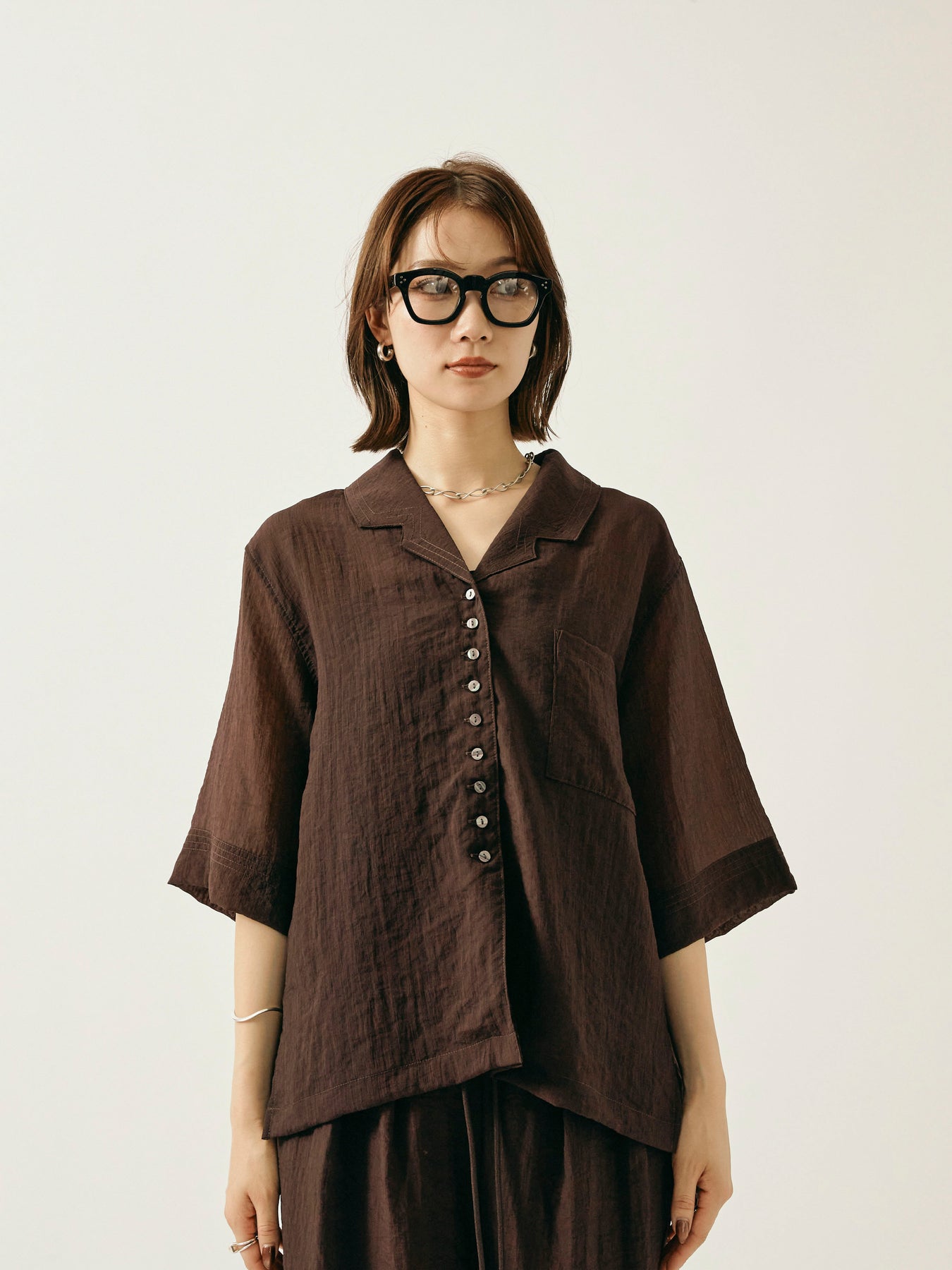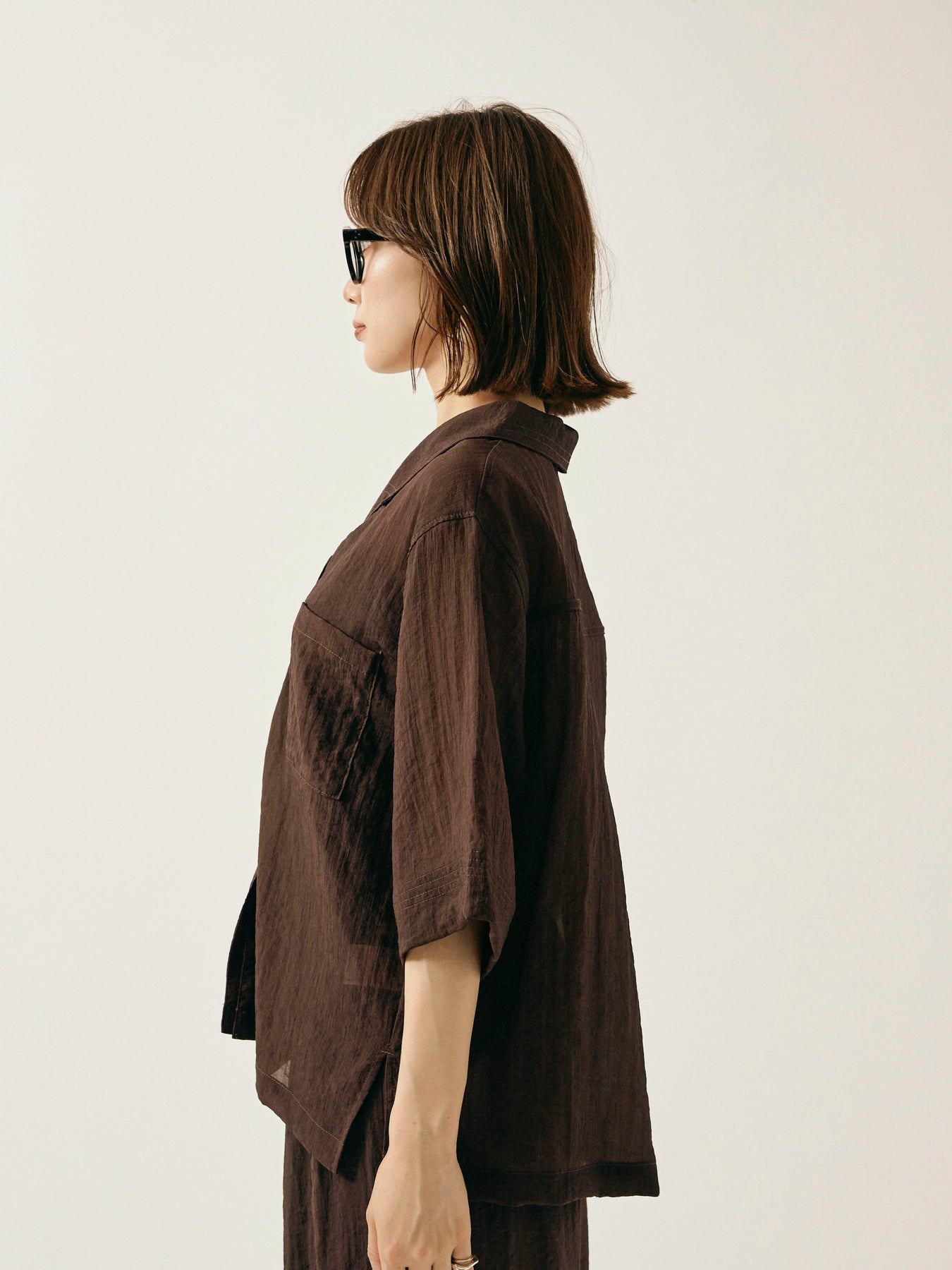 [予約]シャイニースラブシアー開襟ハーフシャツ/ブラウン