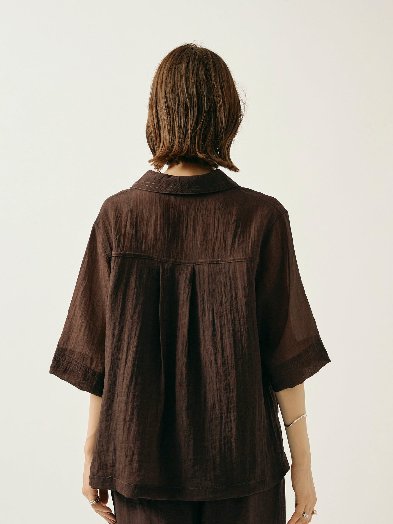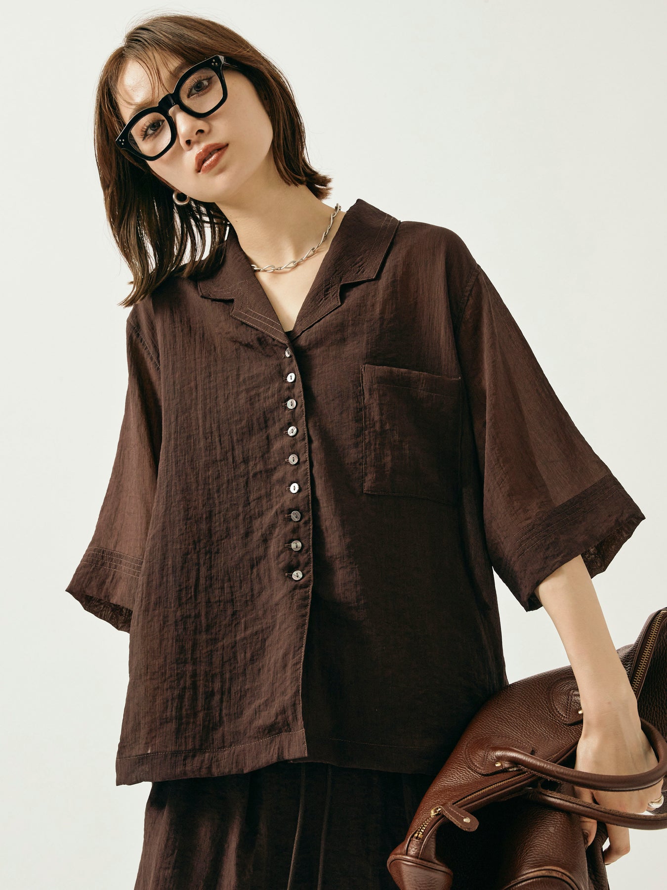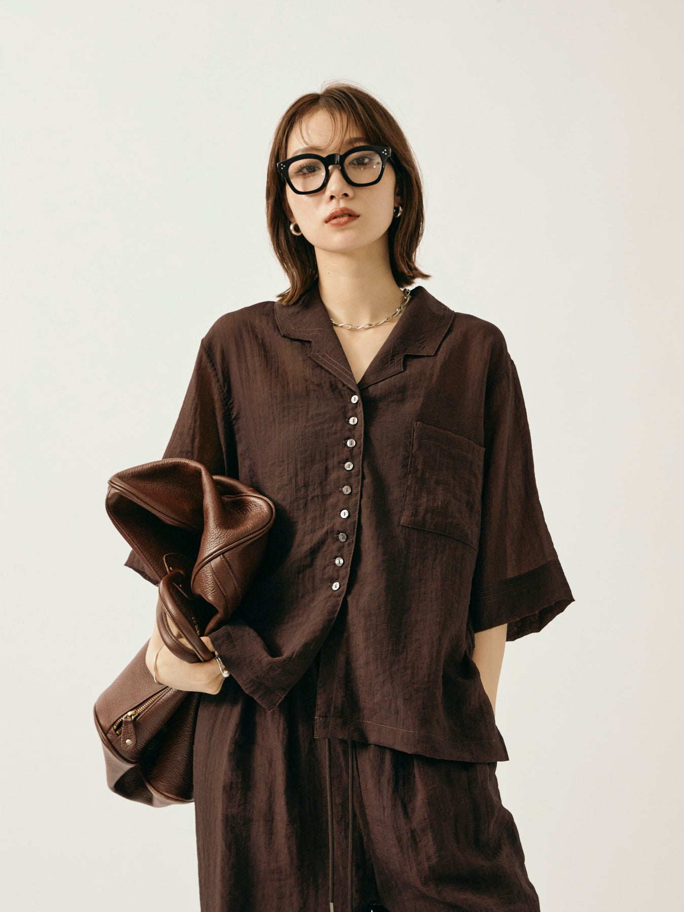 [予約]シャイニースラブシアー開襟ハーフシャツ/ブラウン