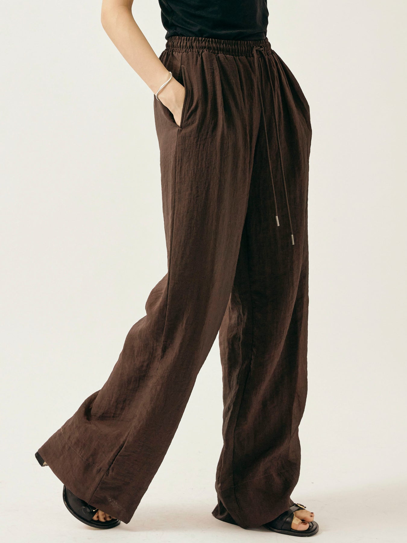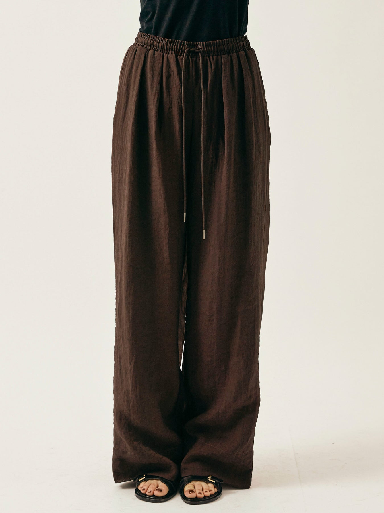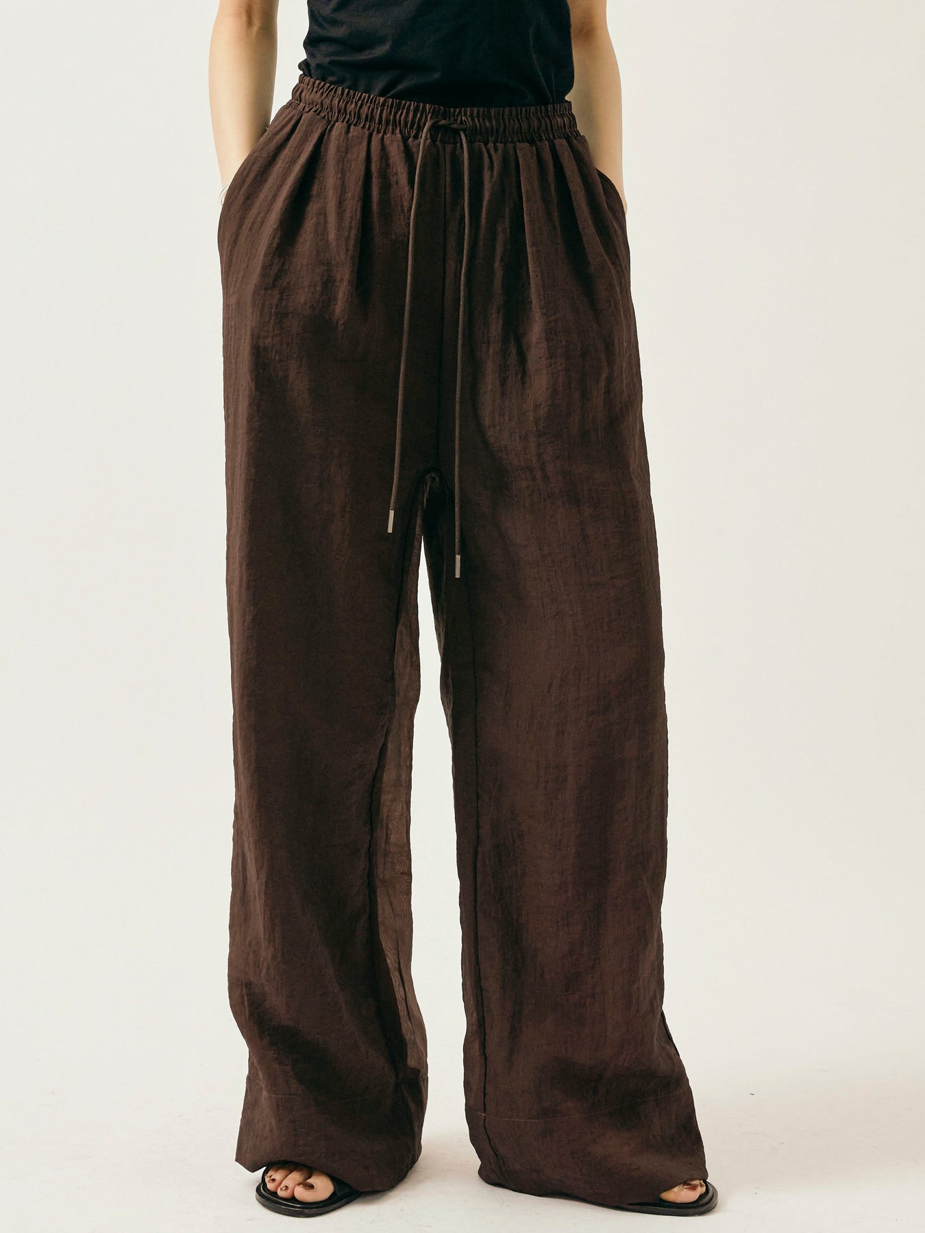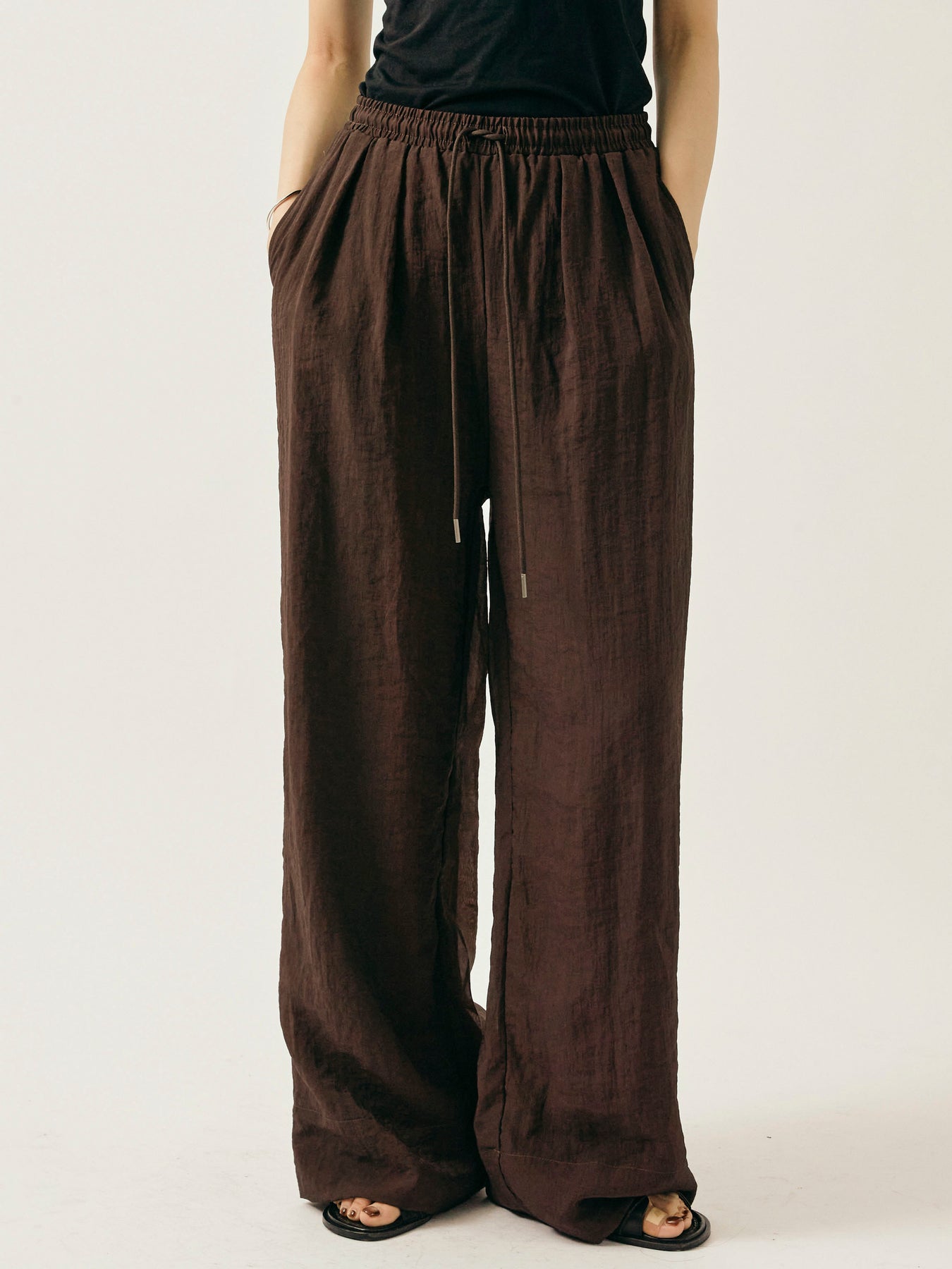 [予約]シャイニースラブシアーワイドパンツ/ブラウン