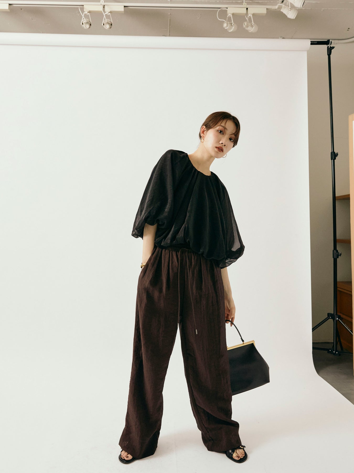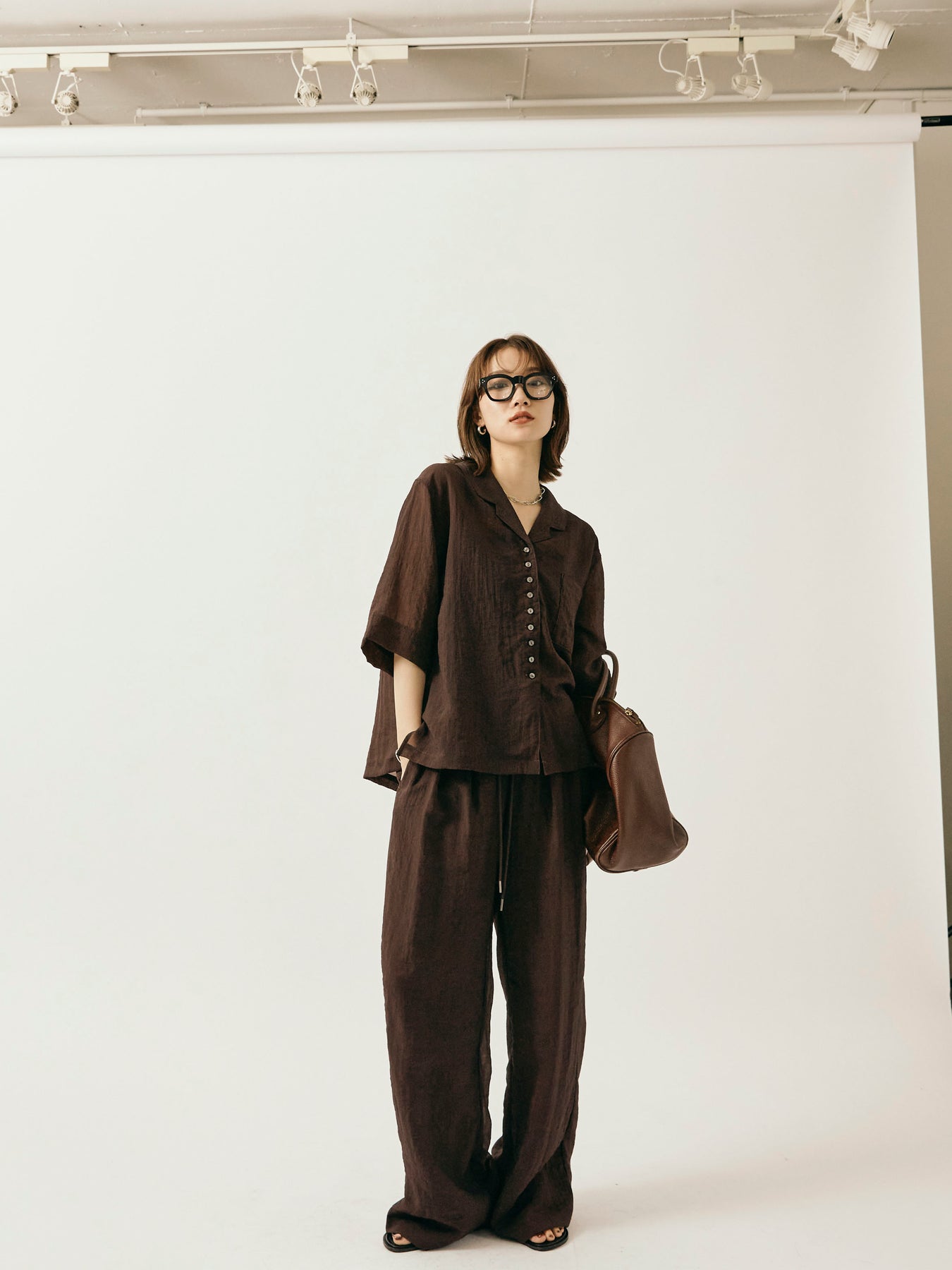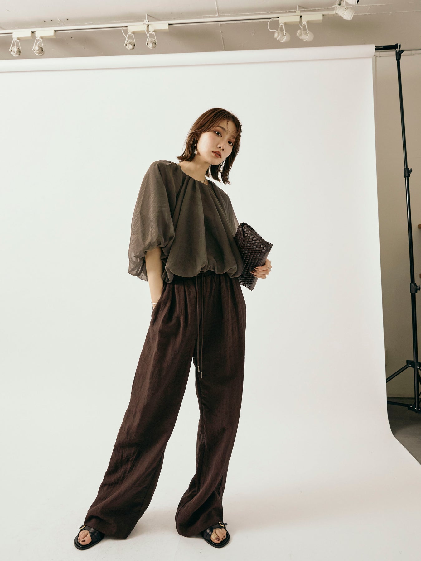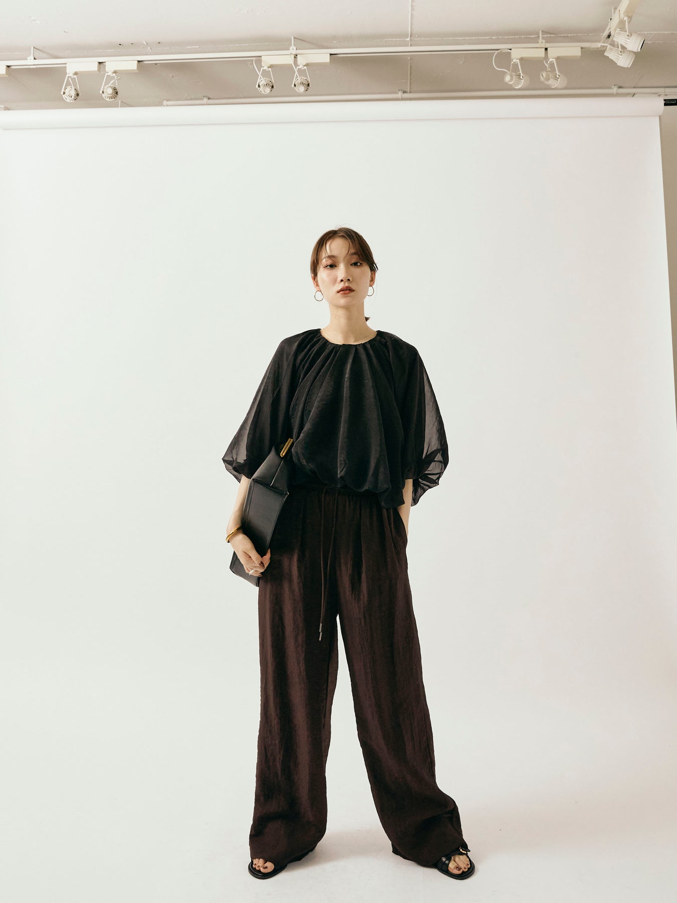 [予約]シャイニースラブシアーワイドパンツ/ブラウン