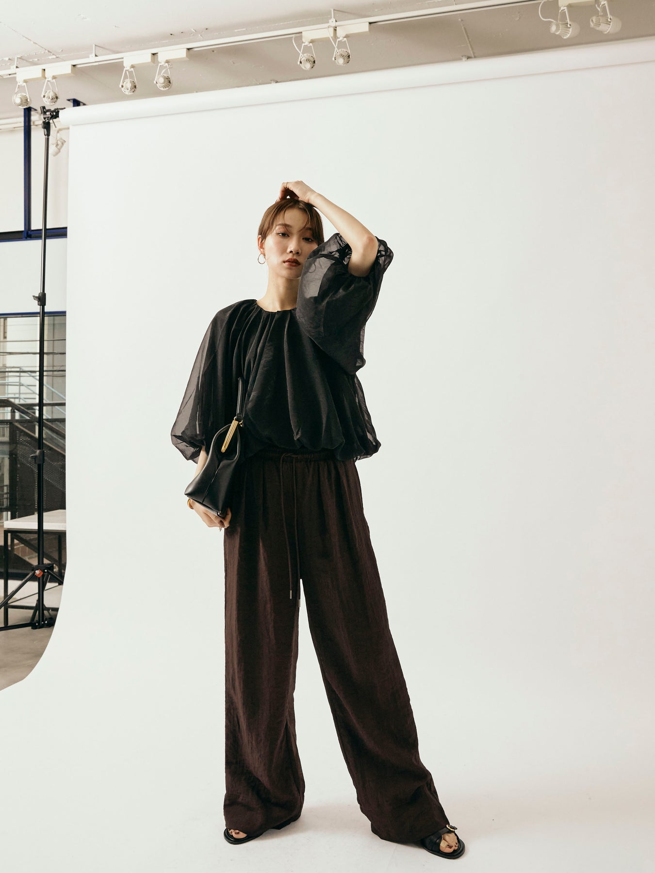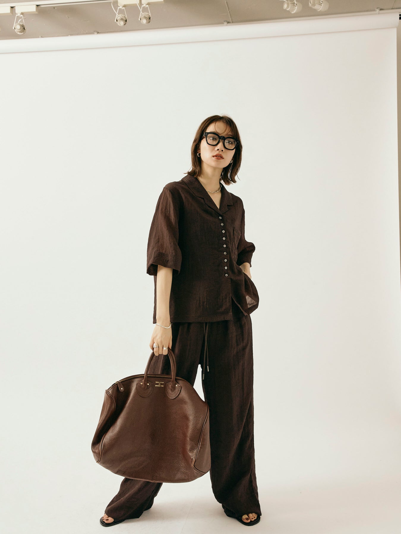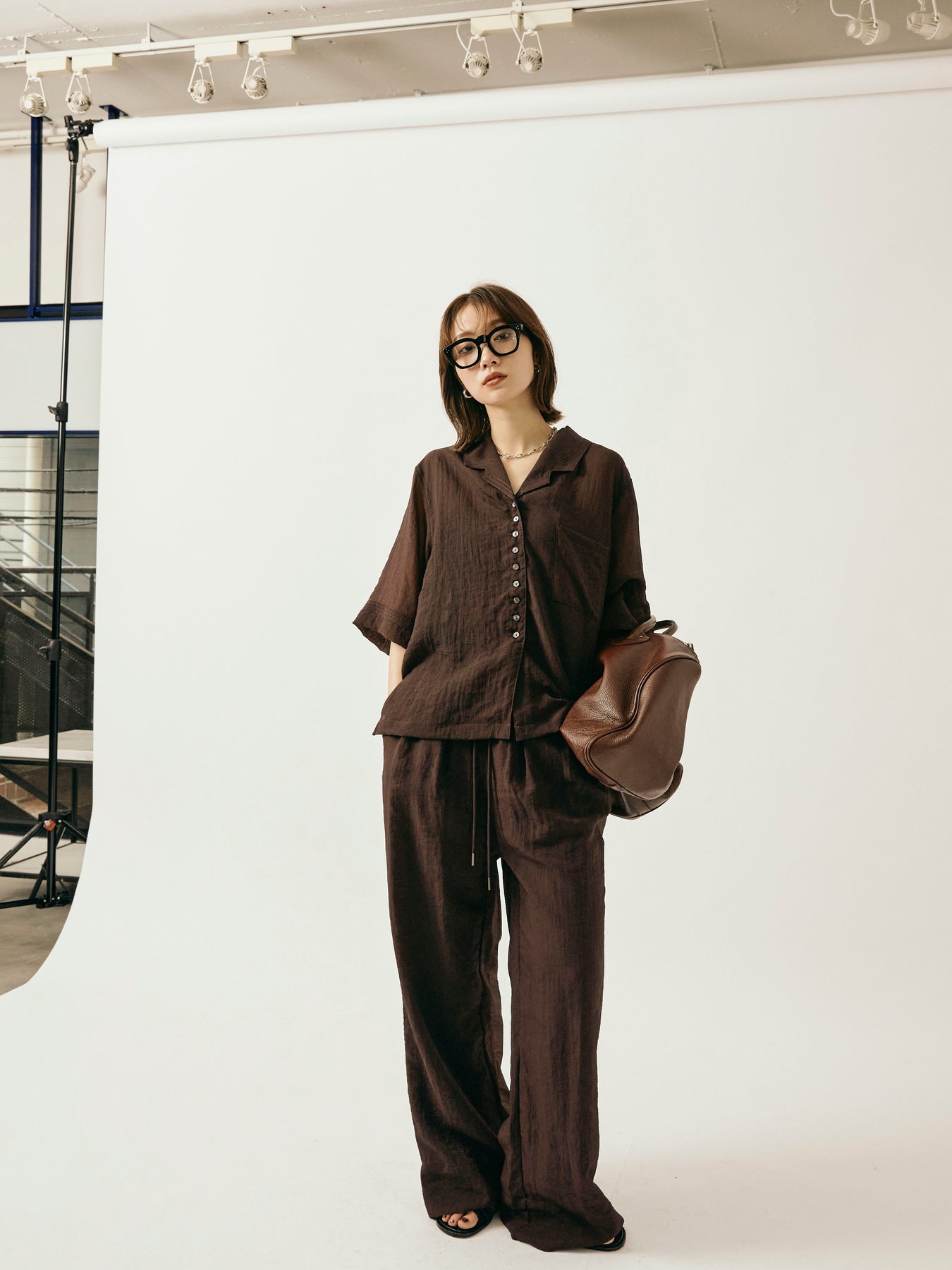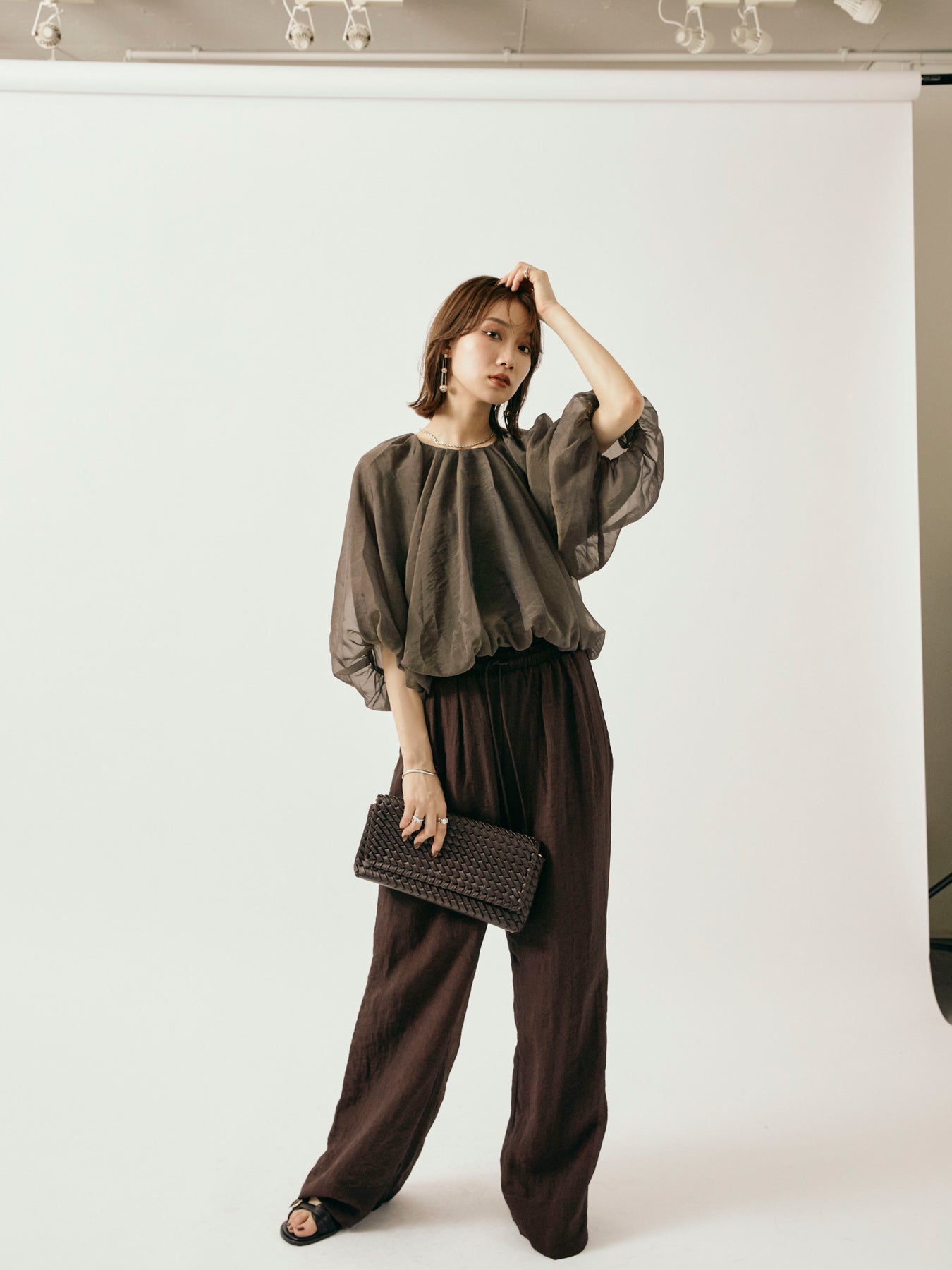 [予約]シャイニースラブシアーワイドパンツ/ブラウン