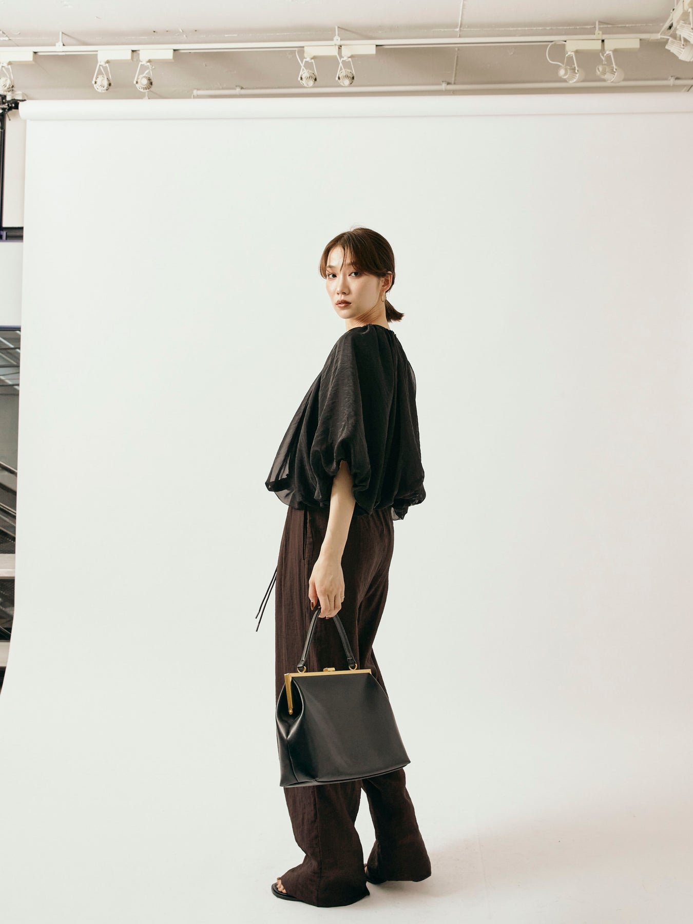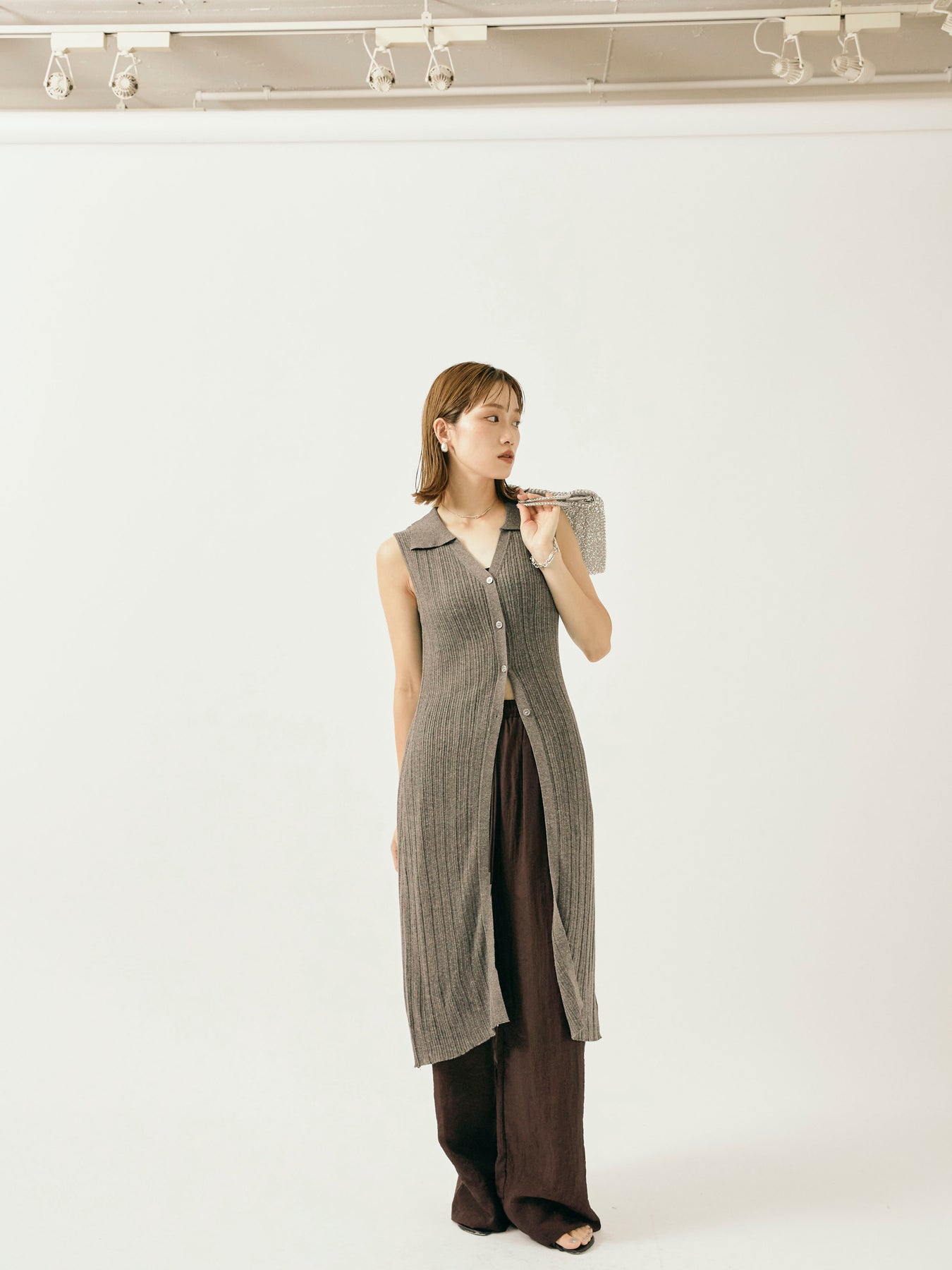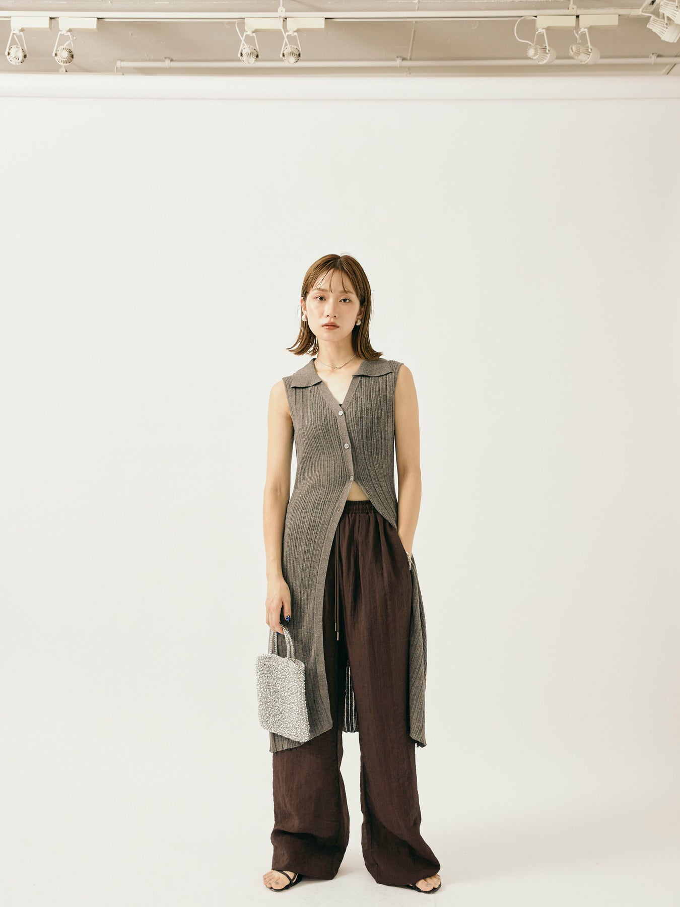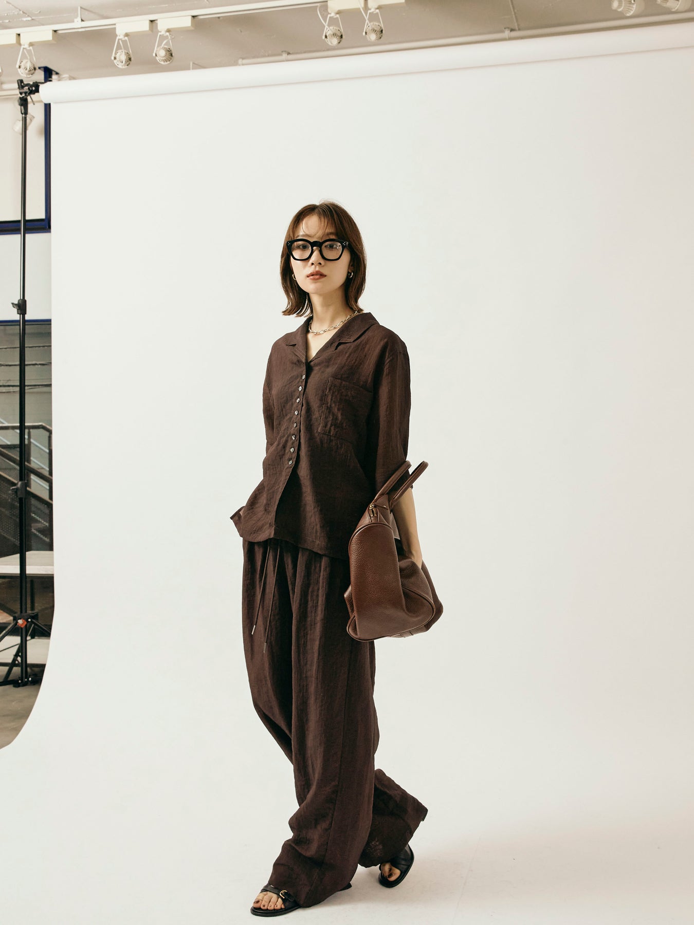 [予約]シャイニースラブシアーワイドパンツ/ブラウン