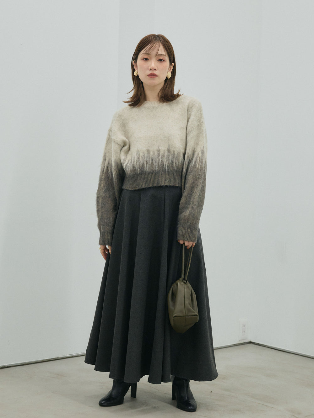 【Allure】[SET]グラデージョンクロップドシャギーニットプルオーバー+ウールタッチフレアスカート(2set)