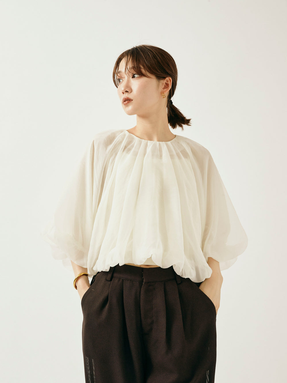 [予約]オーガンジーバルーンショートブラウス/オフ