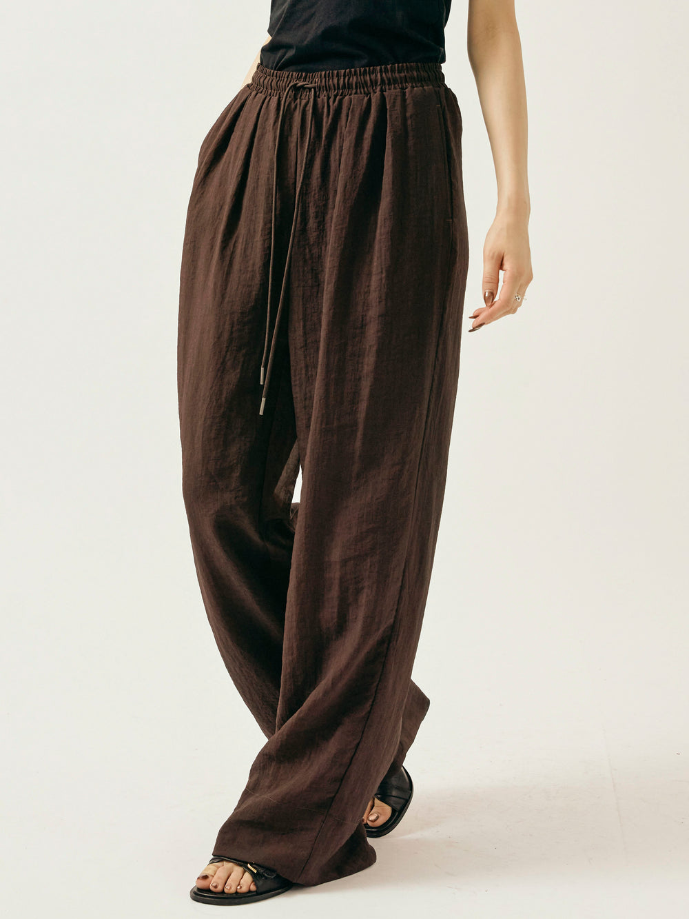 [予約]シャイニースラブシアーワイドパンツ/ブラウン