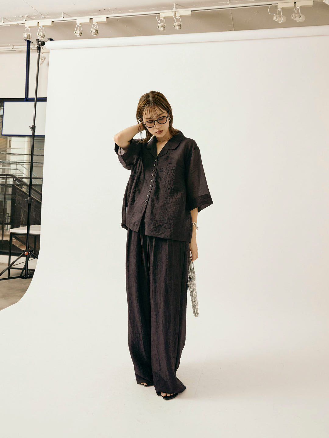 [予約]シャイニースラブシアー開襟ハーフシャツ/ブラウン