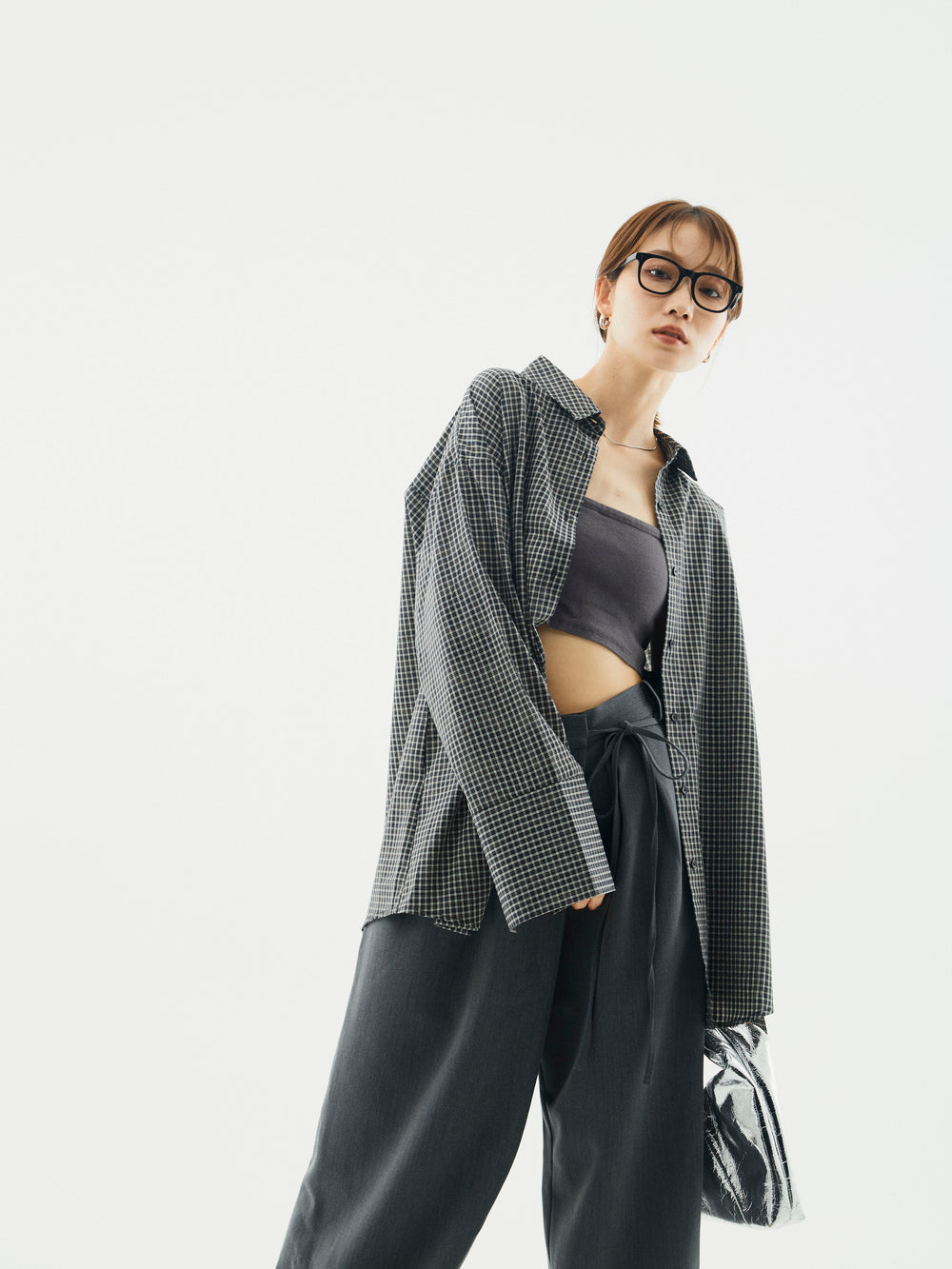 [予約]チェックBIGカフスオーバーシャツ/ブラック