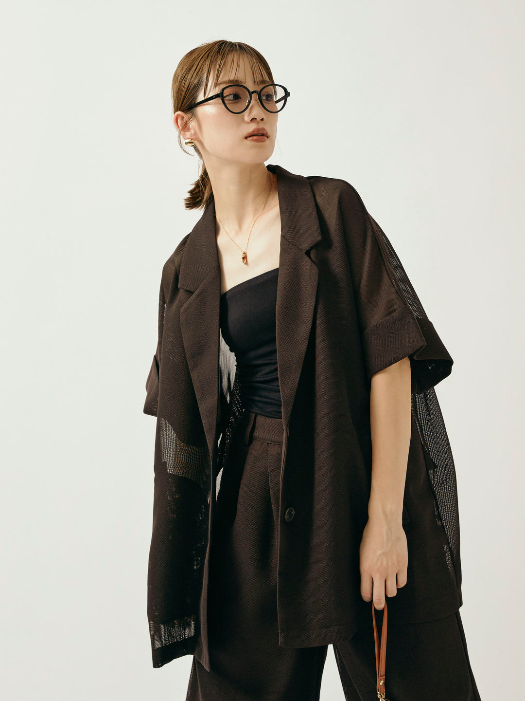 [予約]メッシュハーフテーラードジャケット/ブラウン