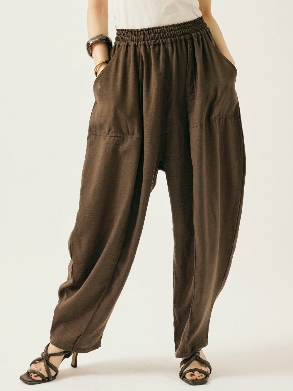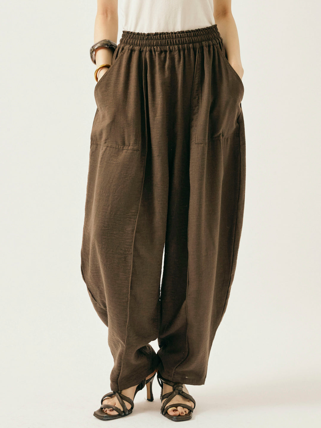 [予約]リネンライクベイカーバルーンパンツ/ブラウン