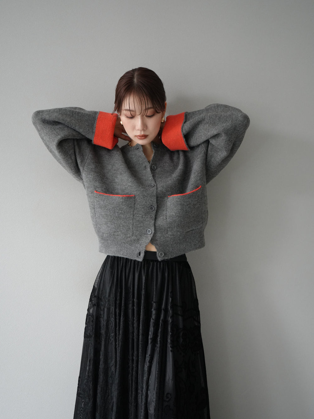 [予約]バイカラーオーバーニットカーディガン/チャコール