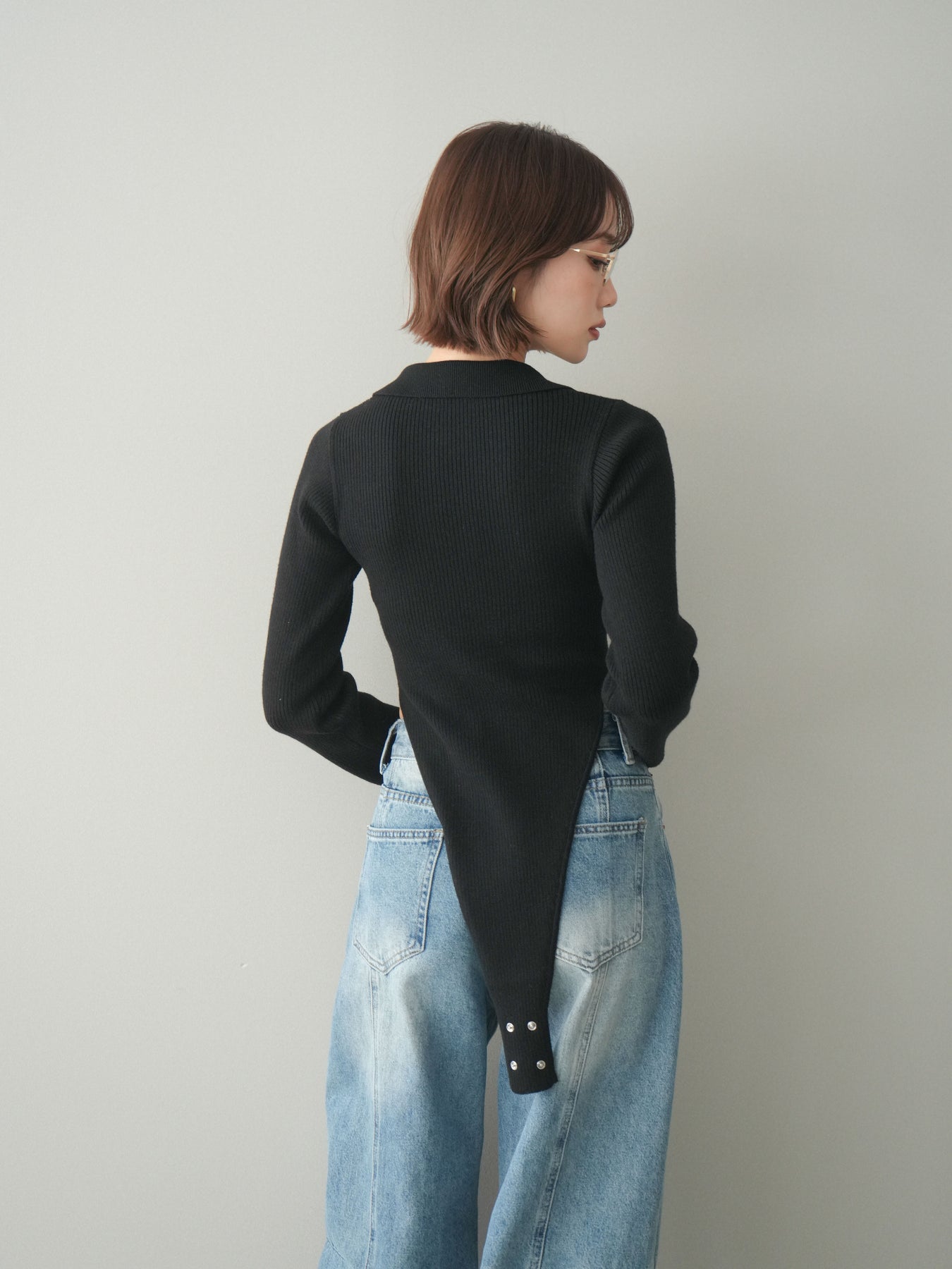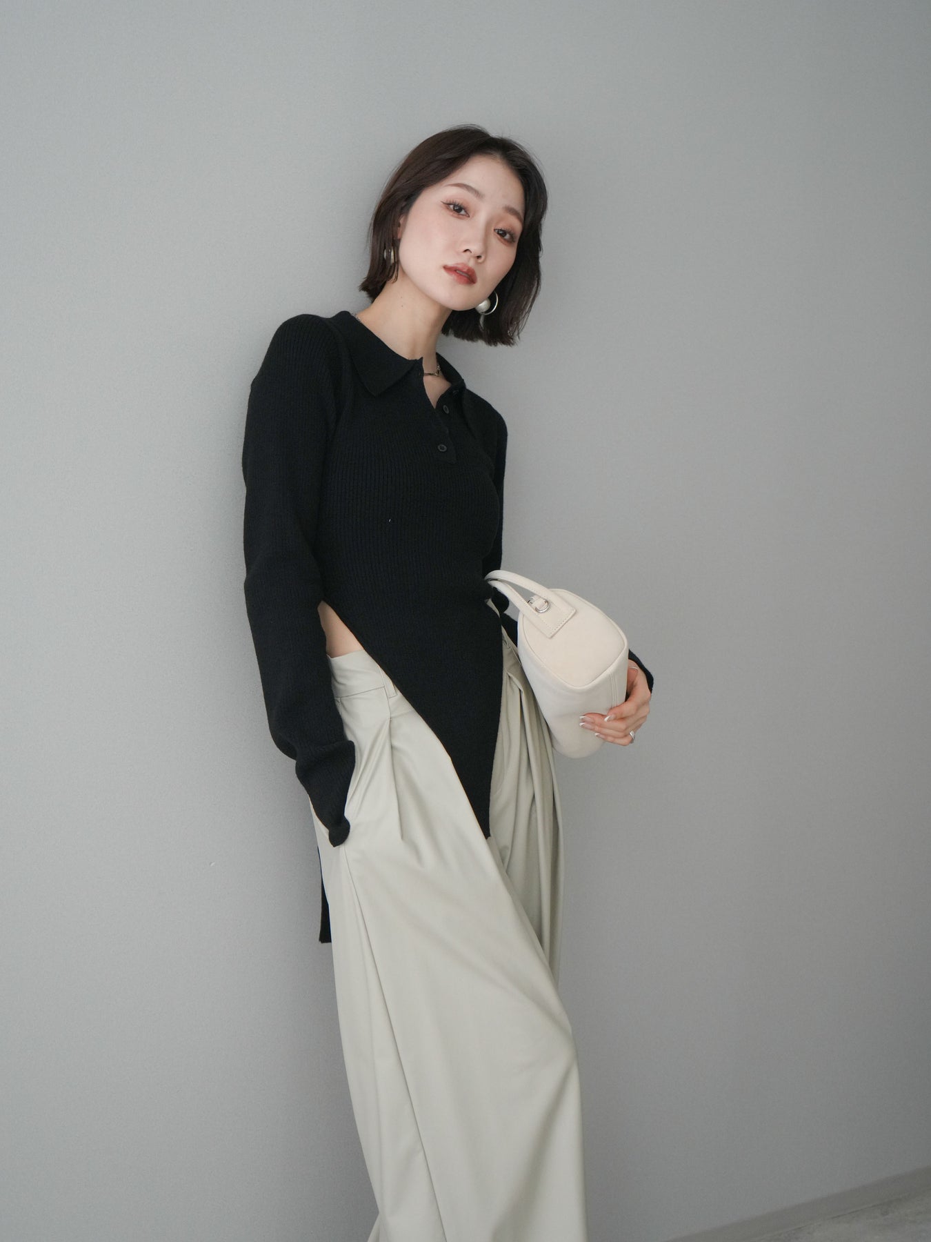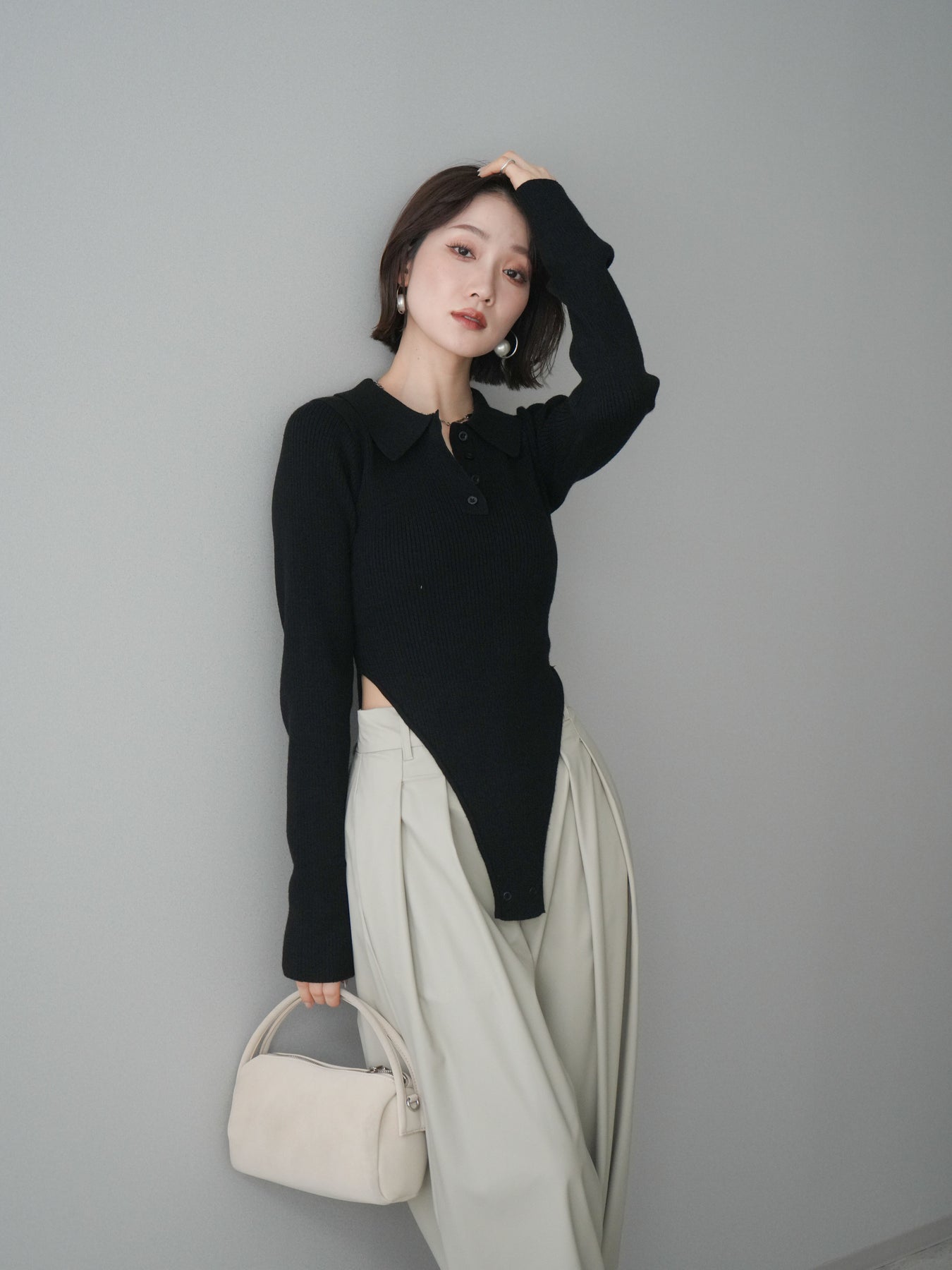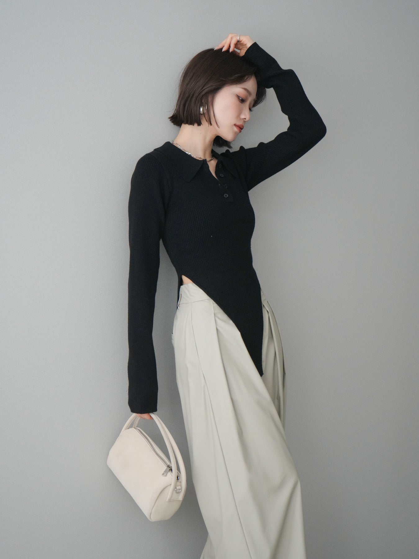 [予約]リブポロニットボディスーツ/black