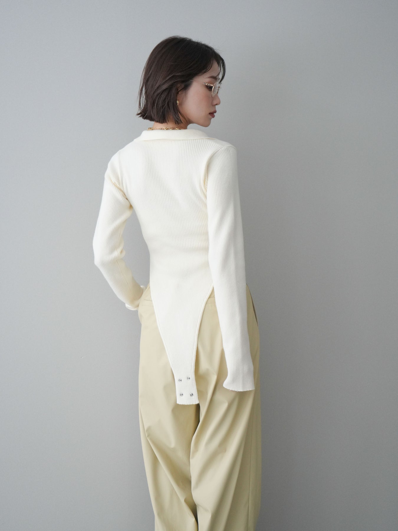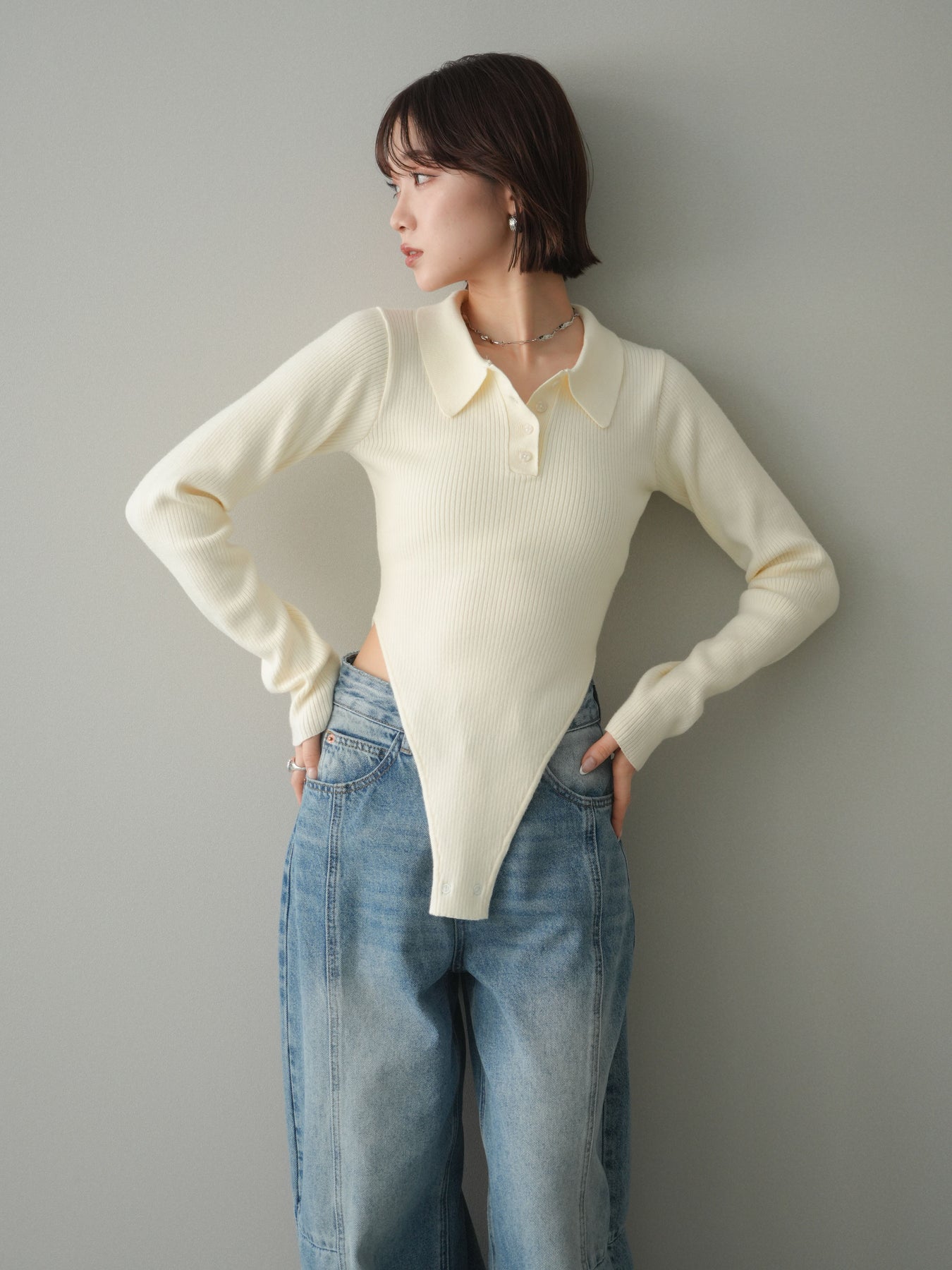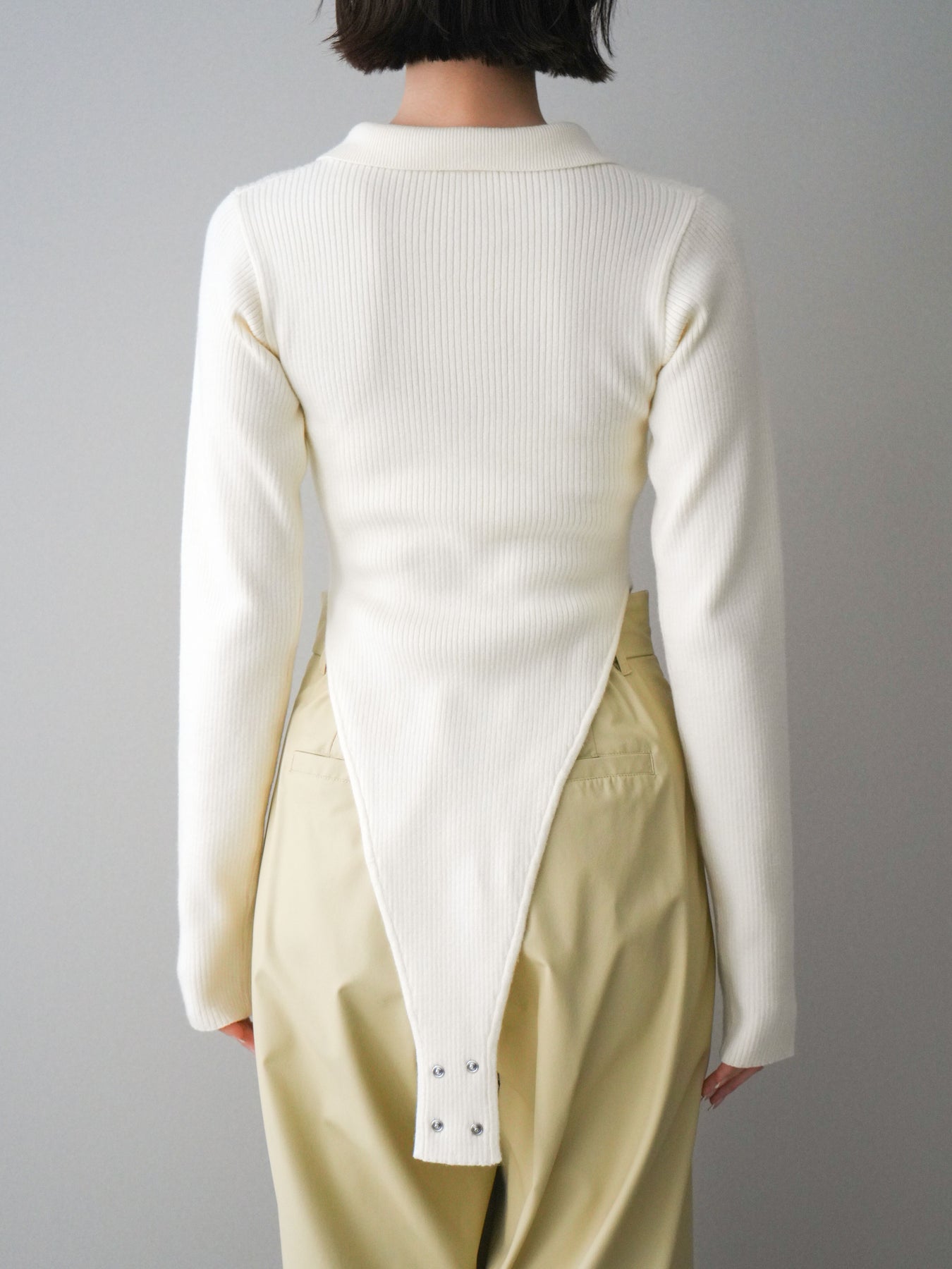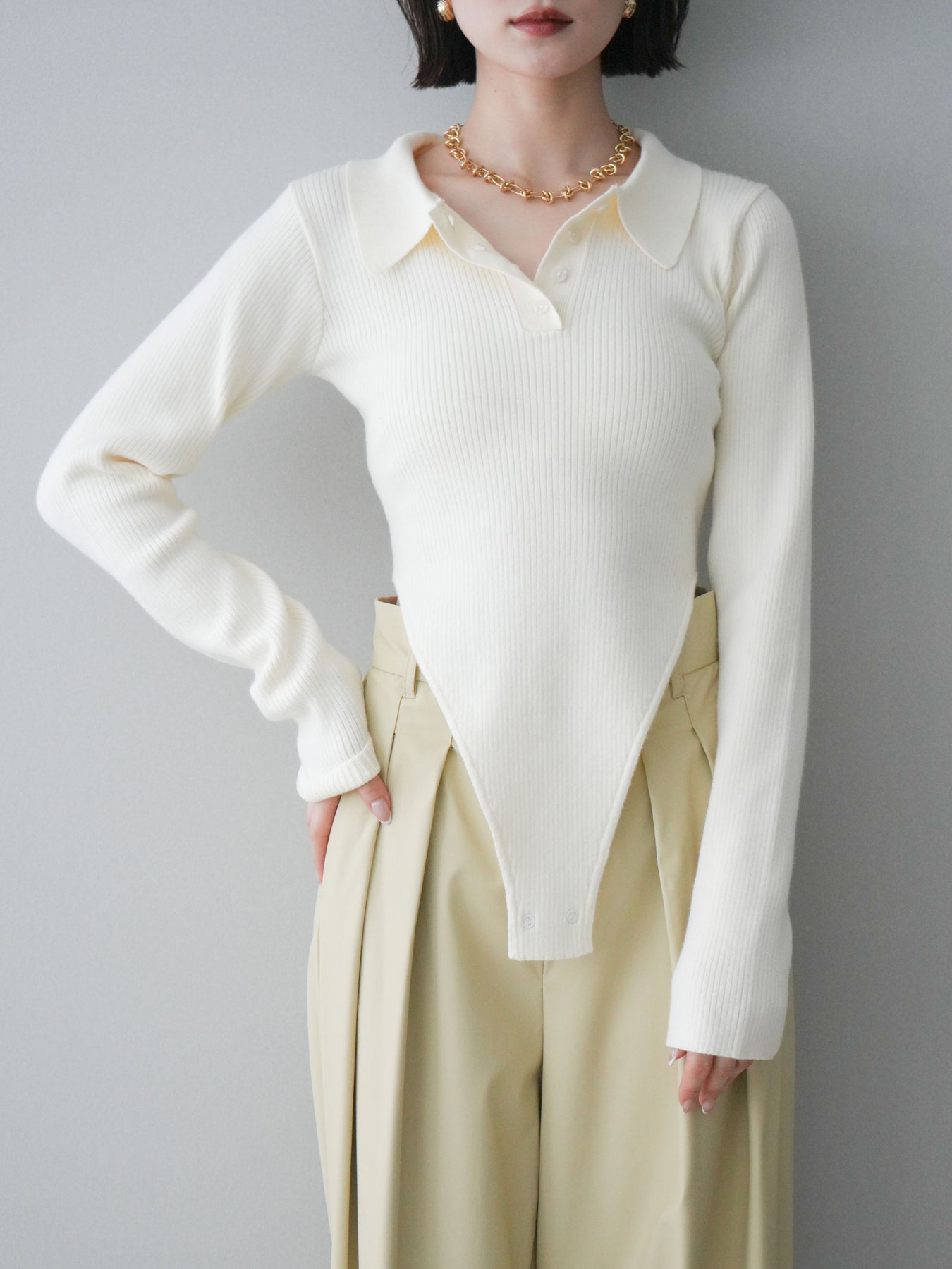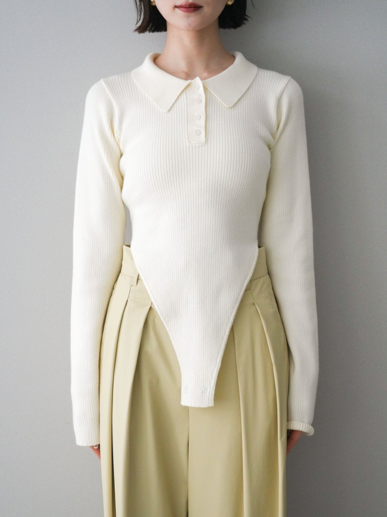 [予約]リブポロニットボディスーツ/ivory