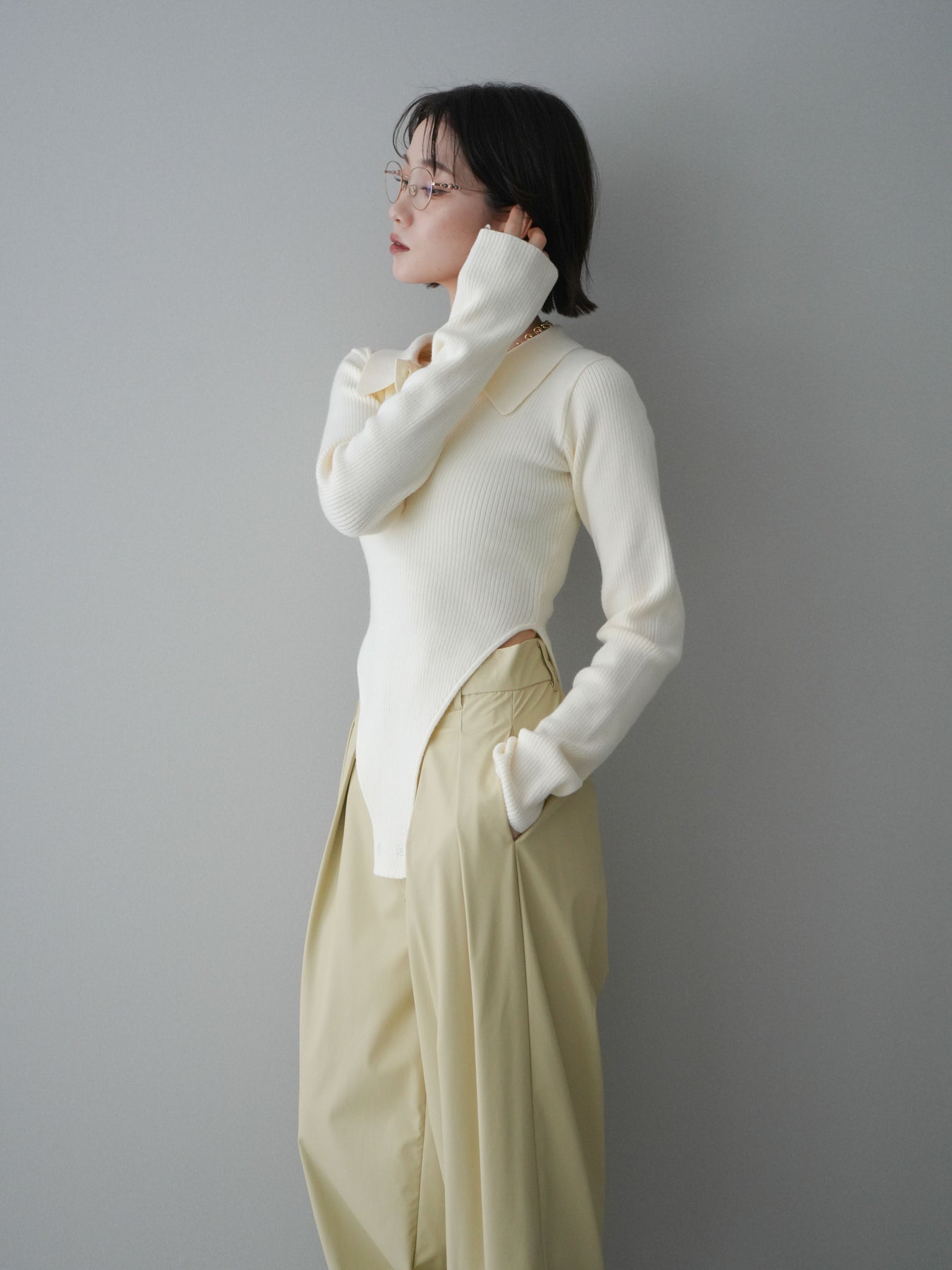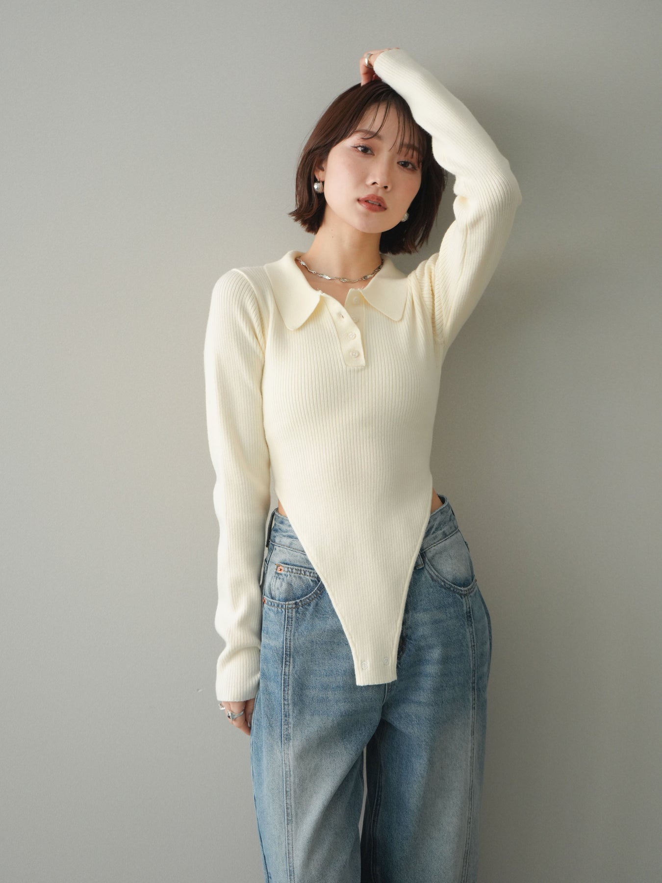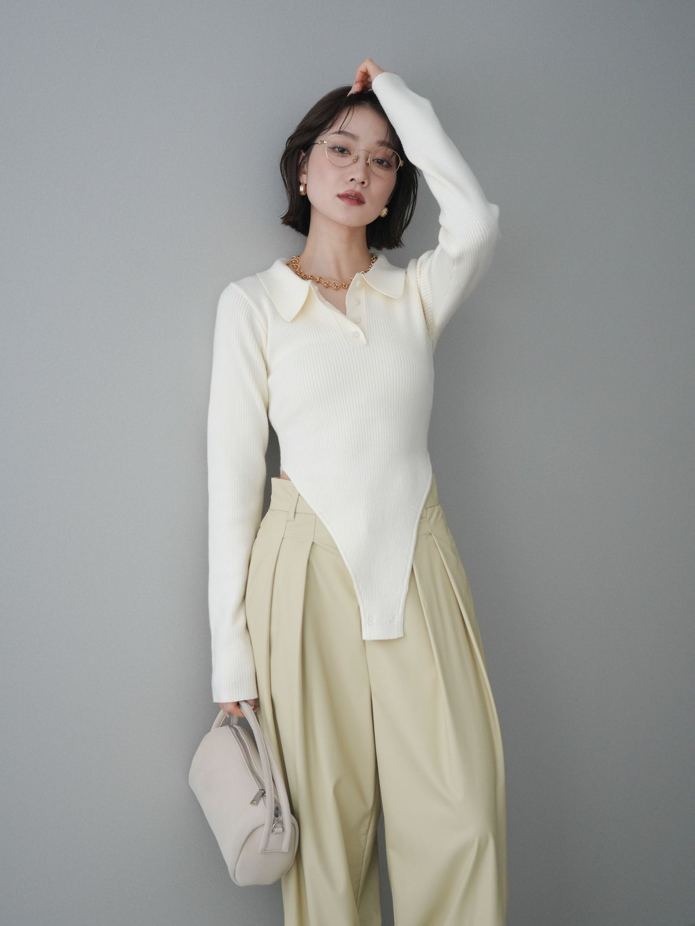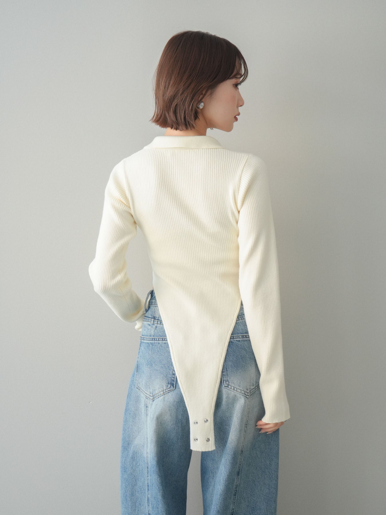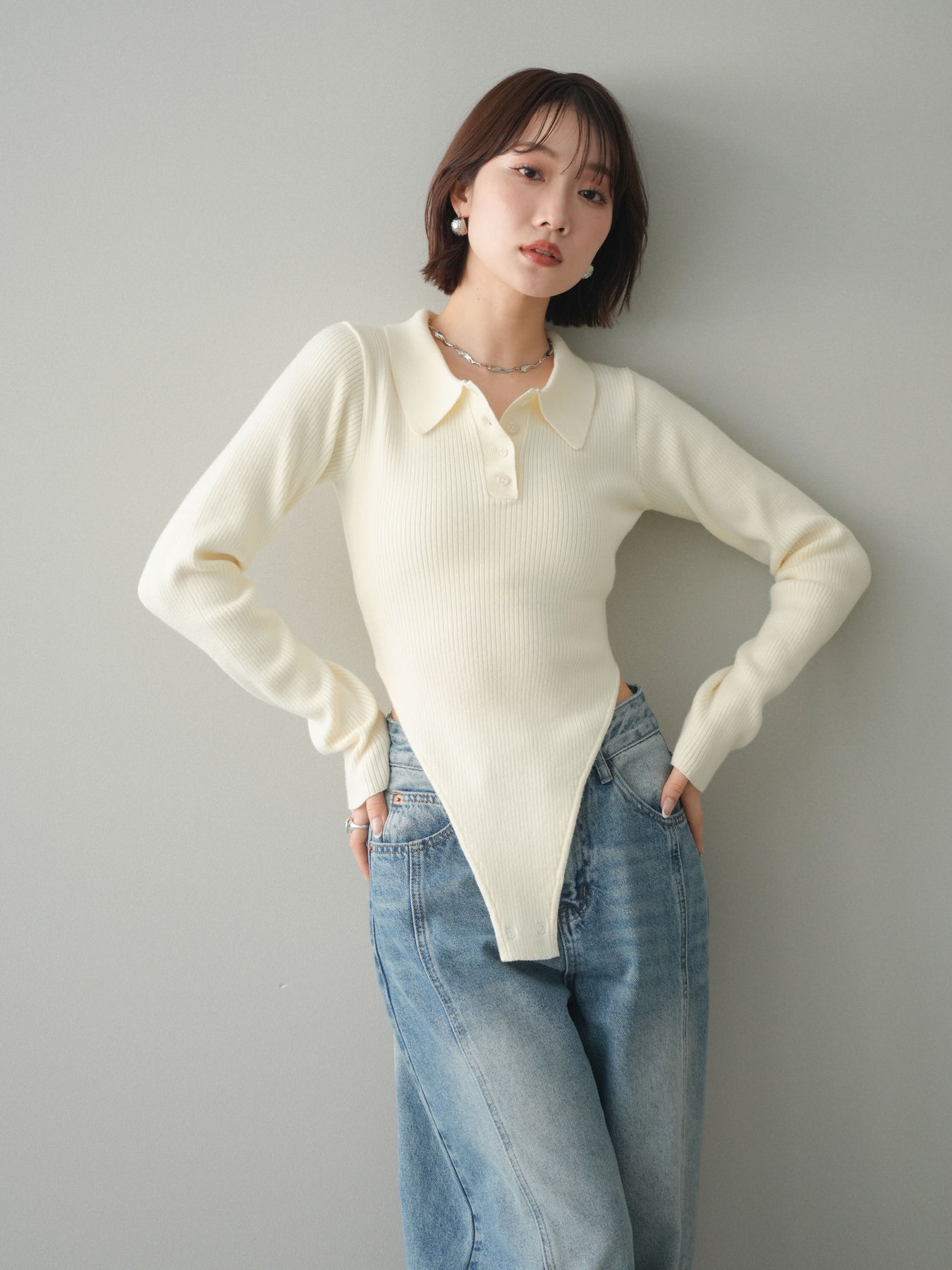 [予約]リブポロニットボディスーツ/ivory