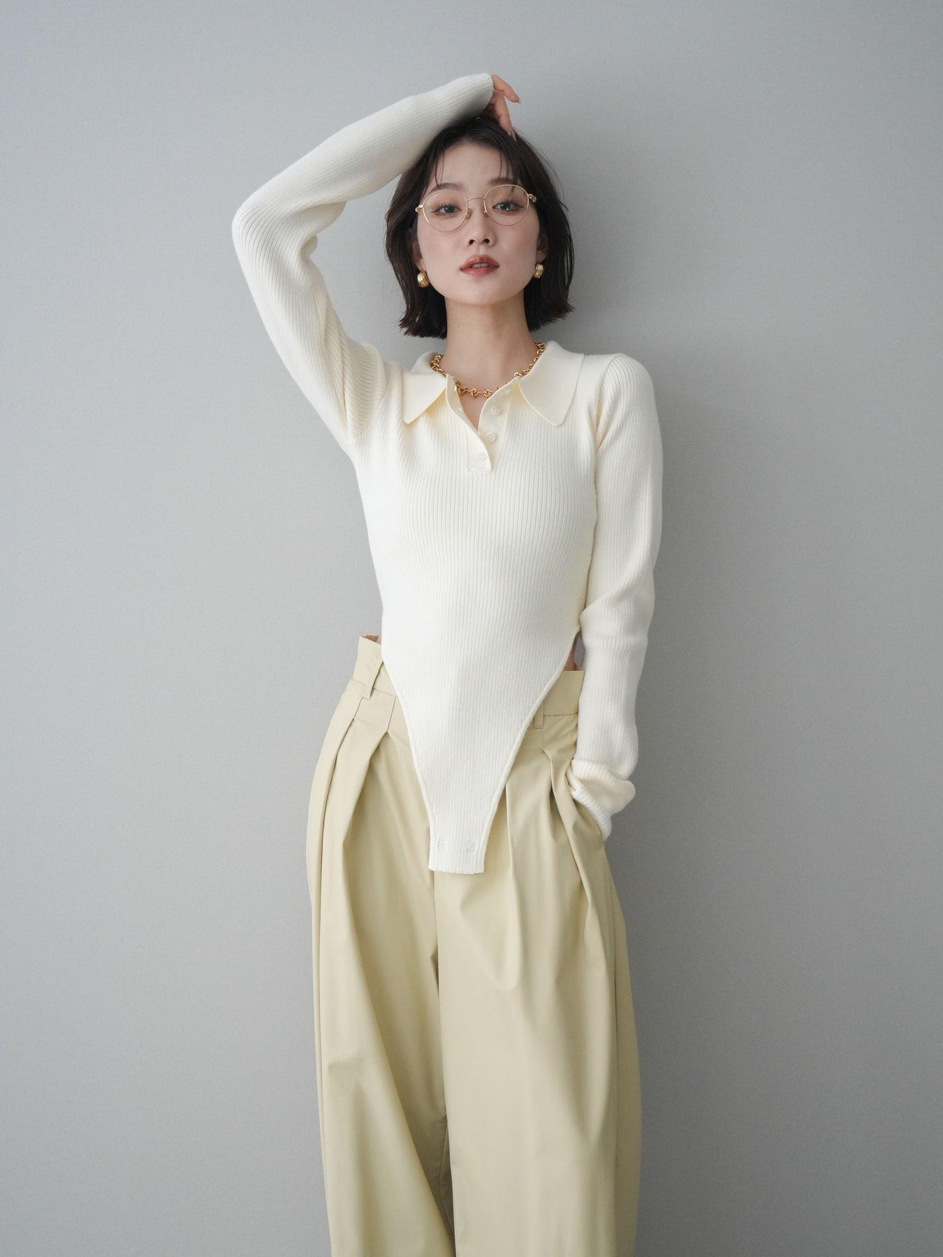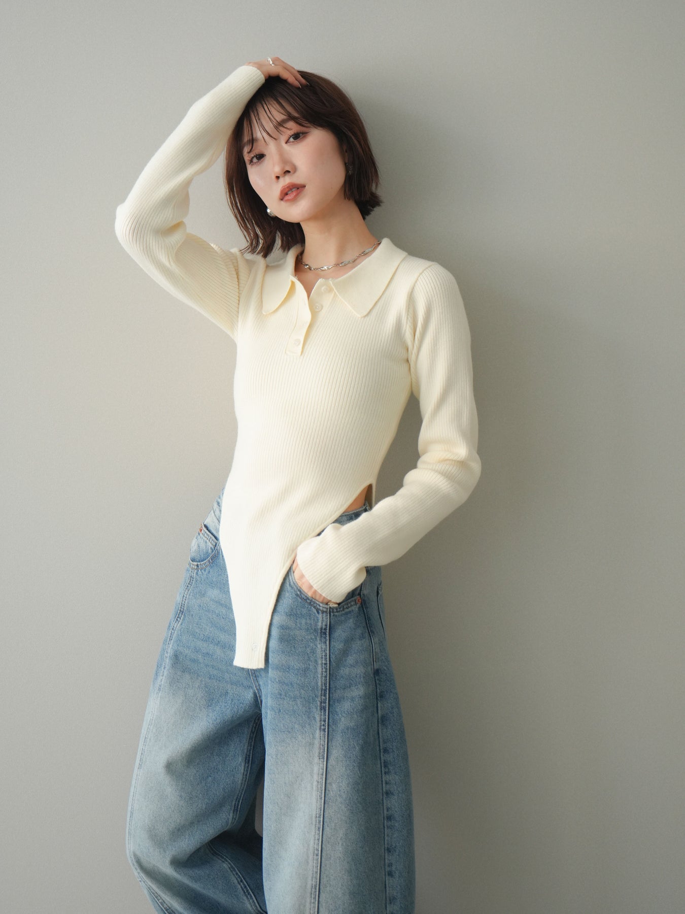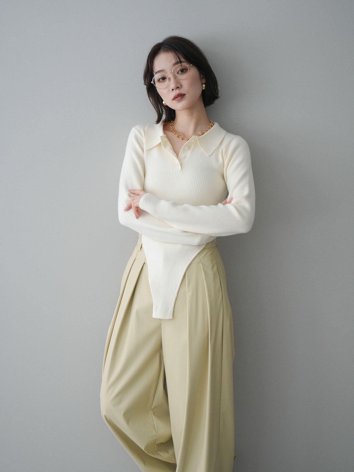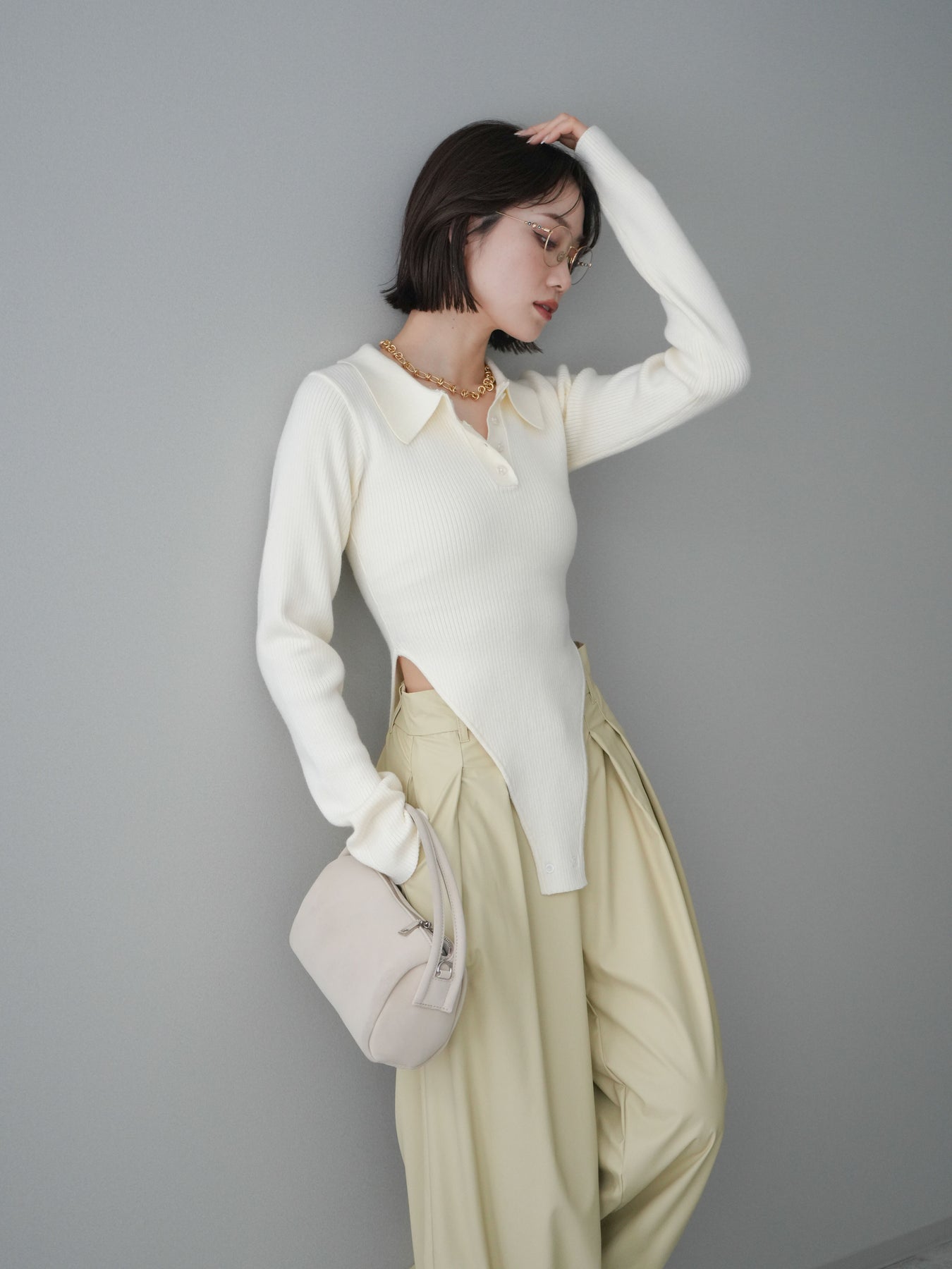 [予約]リブポロニットボディスーツ/ivory