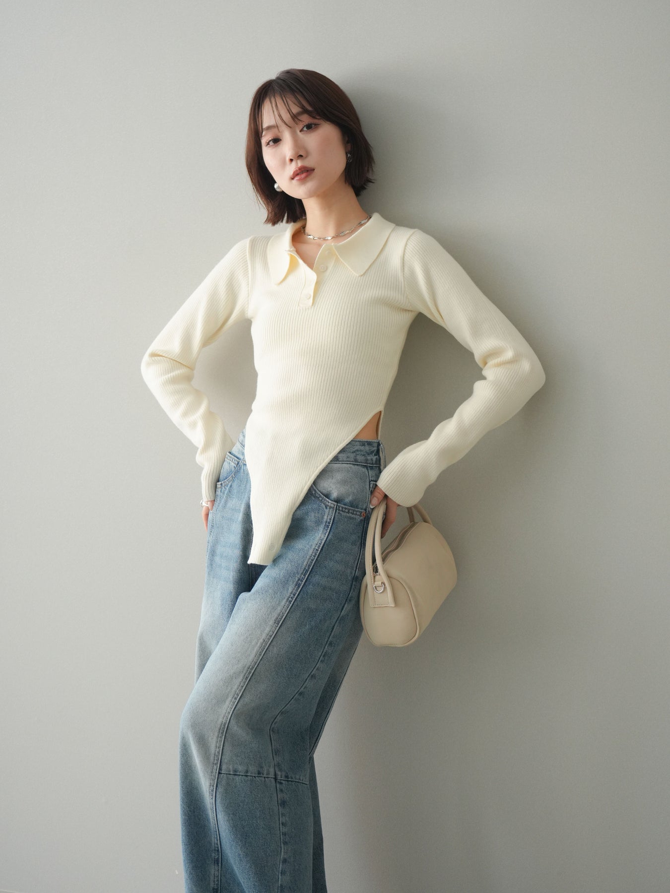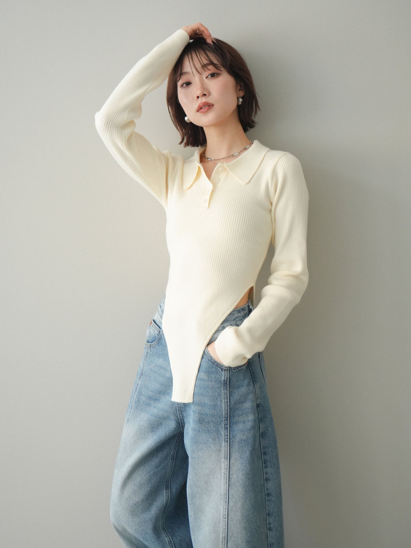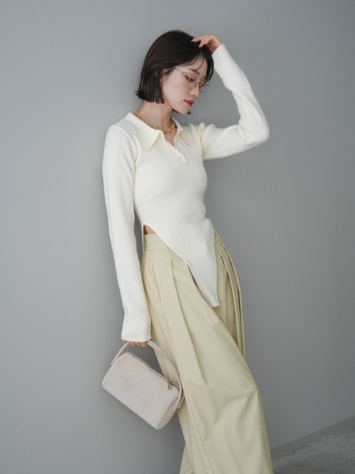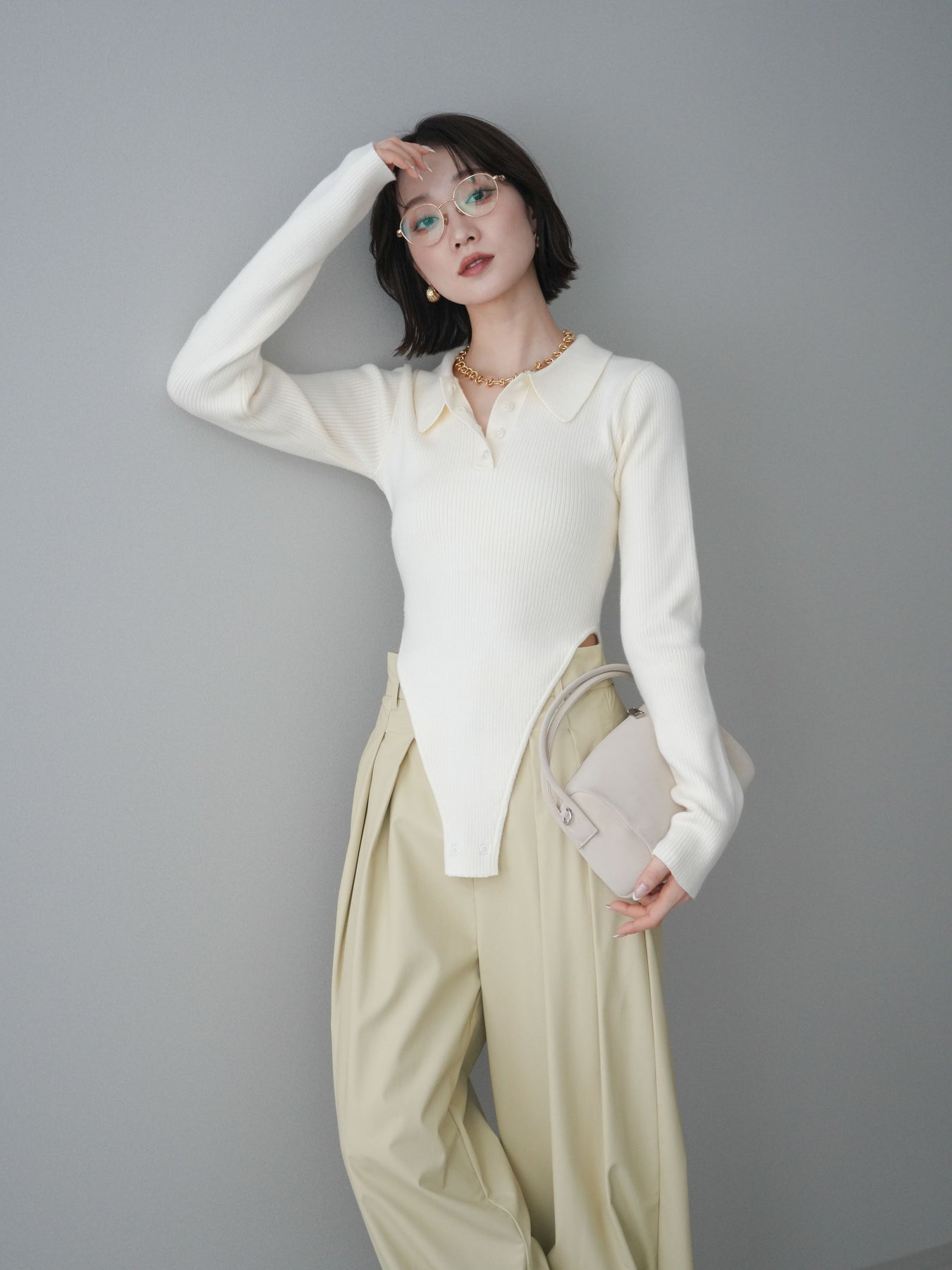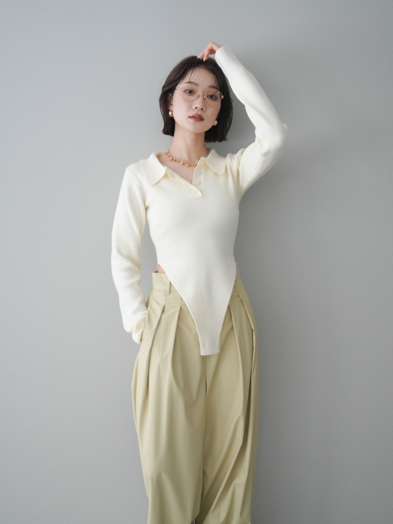 [予約]リブポロニットボディスーツ/ivory