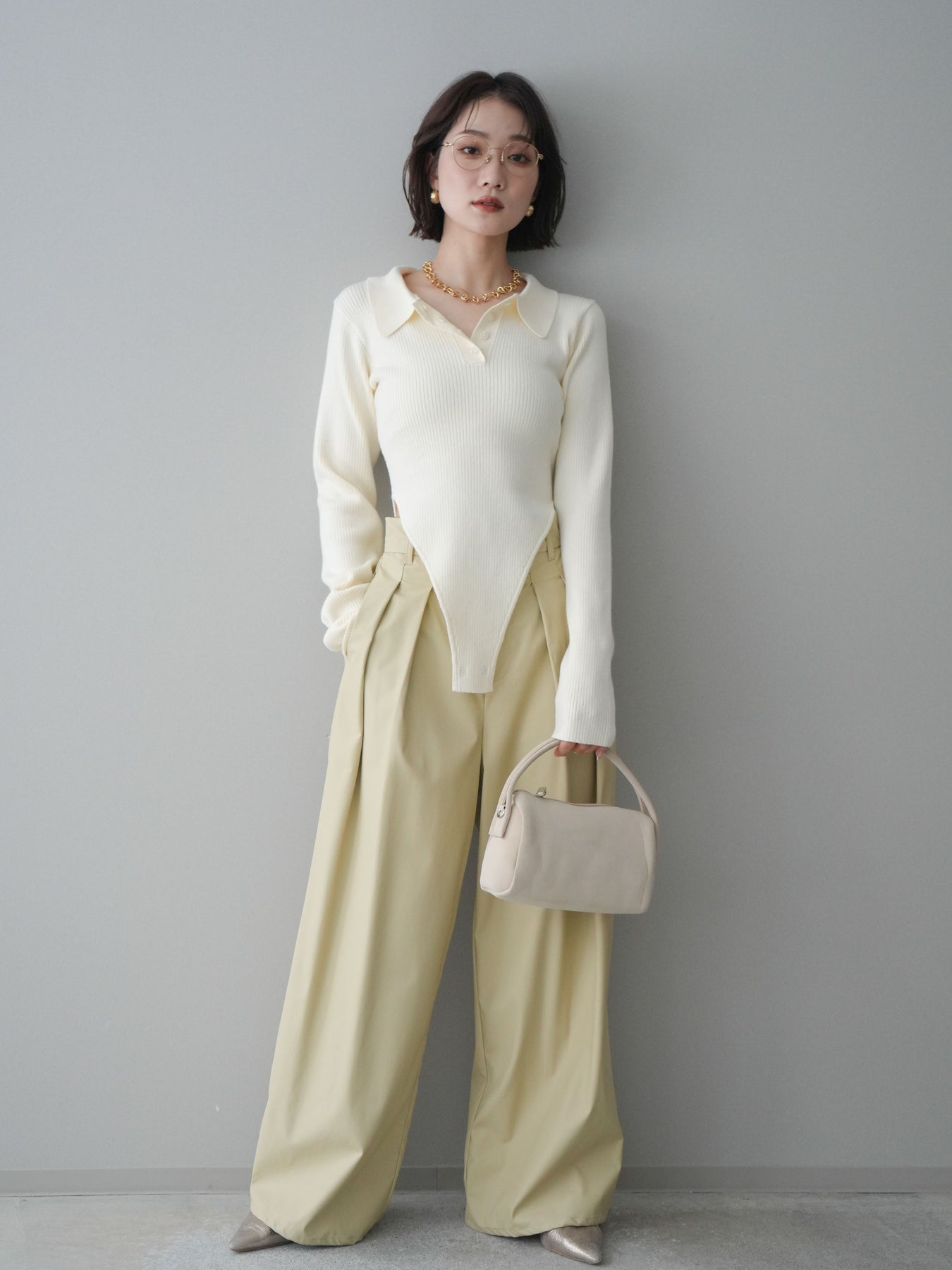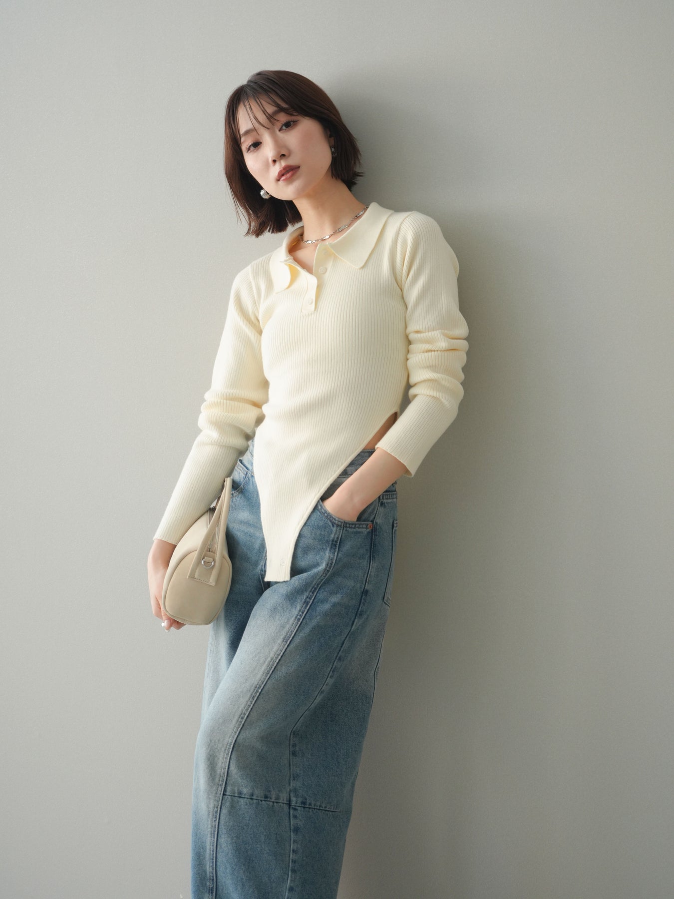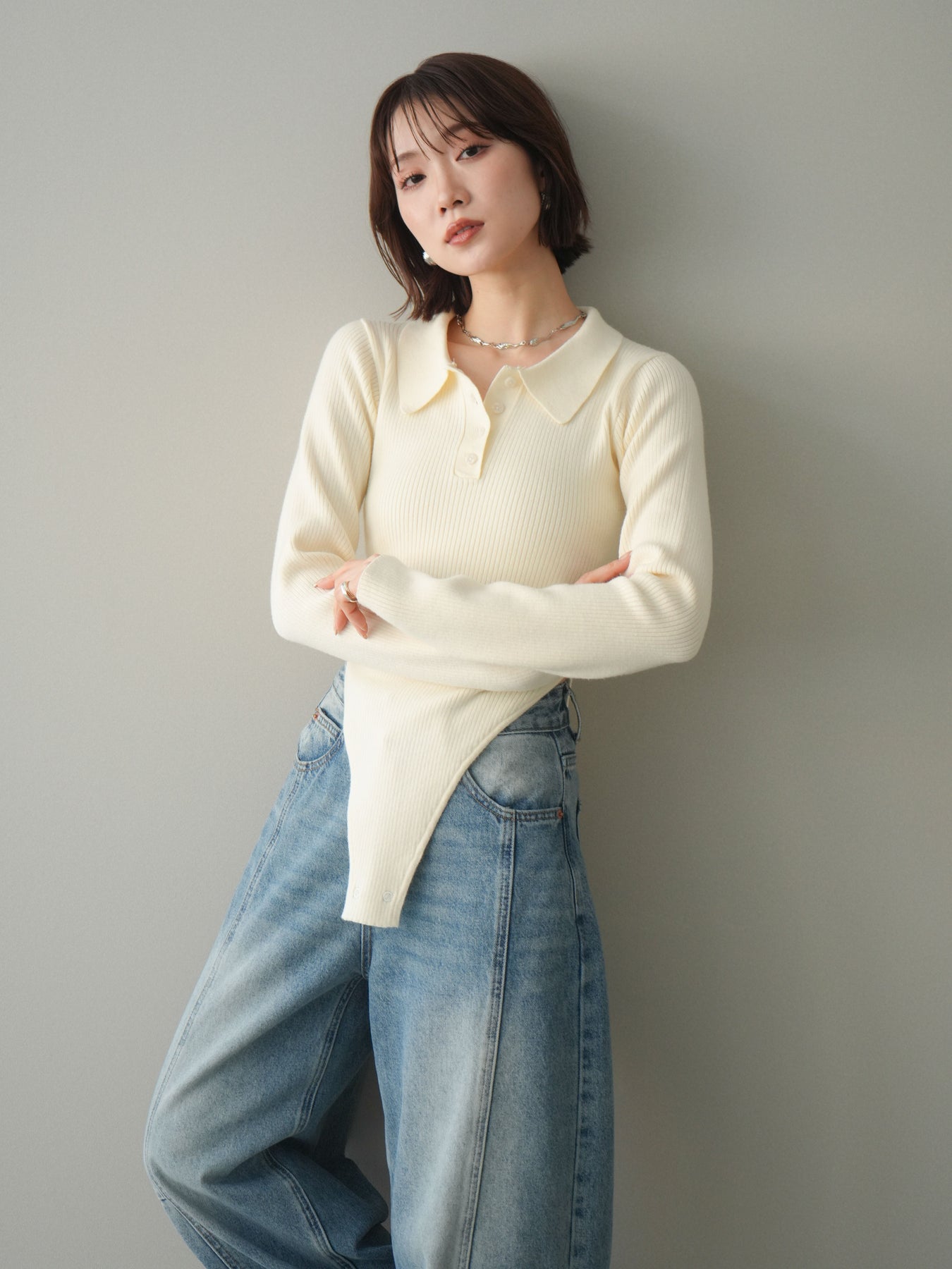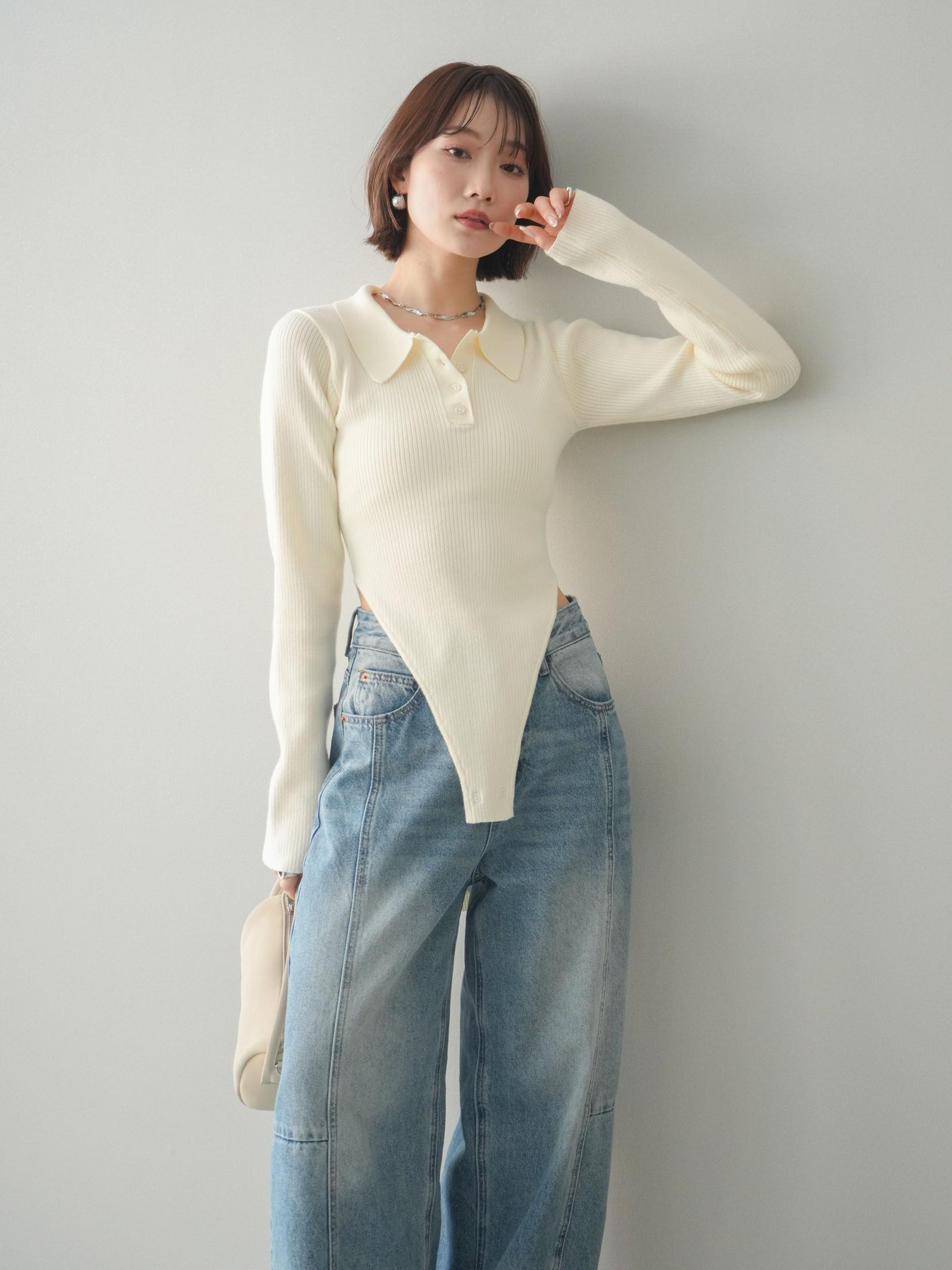 [予約]リブポロニットボディスーツ/ivory