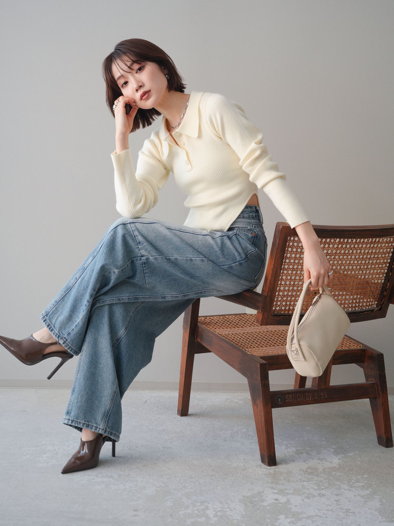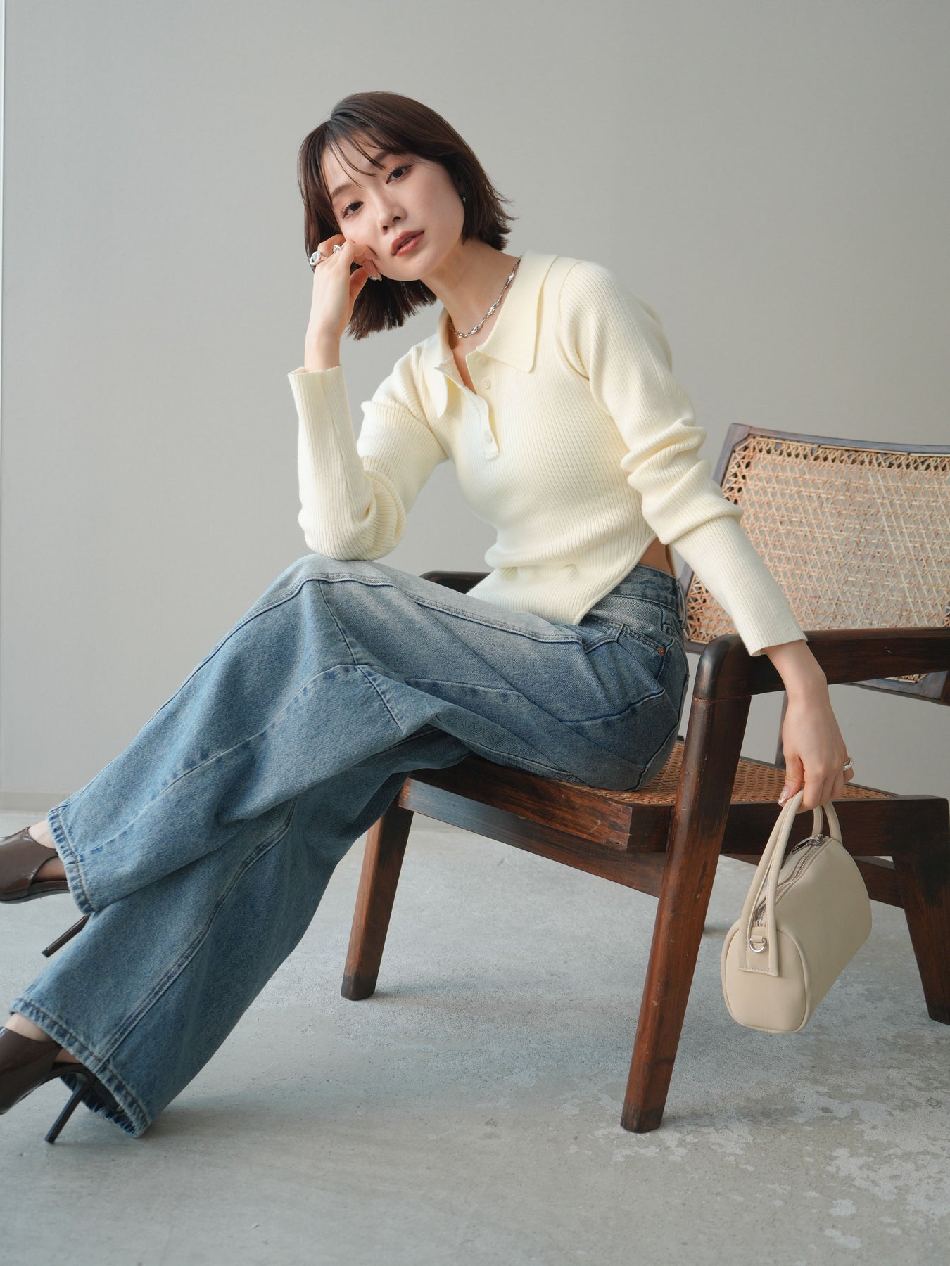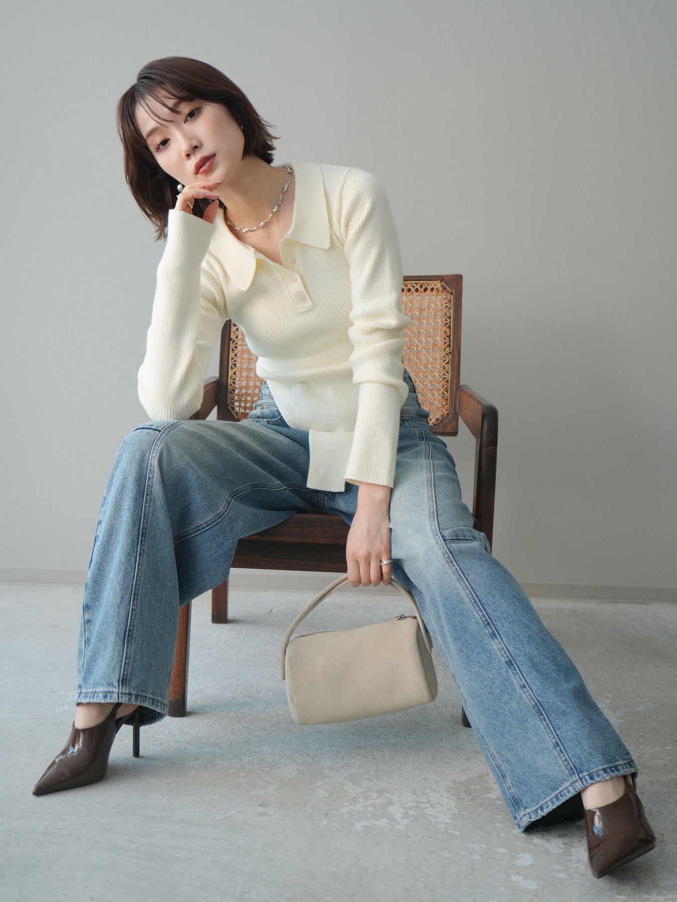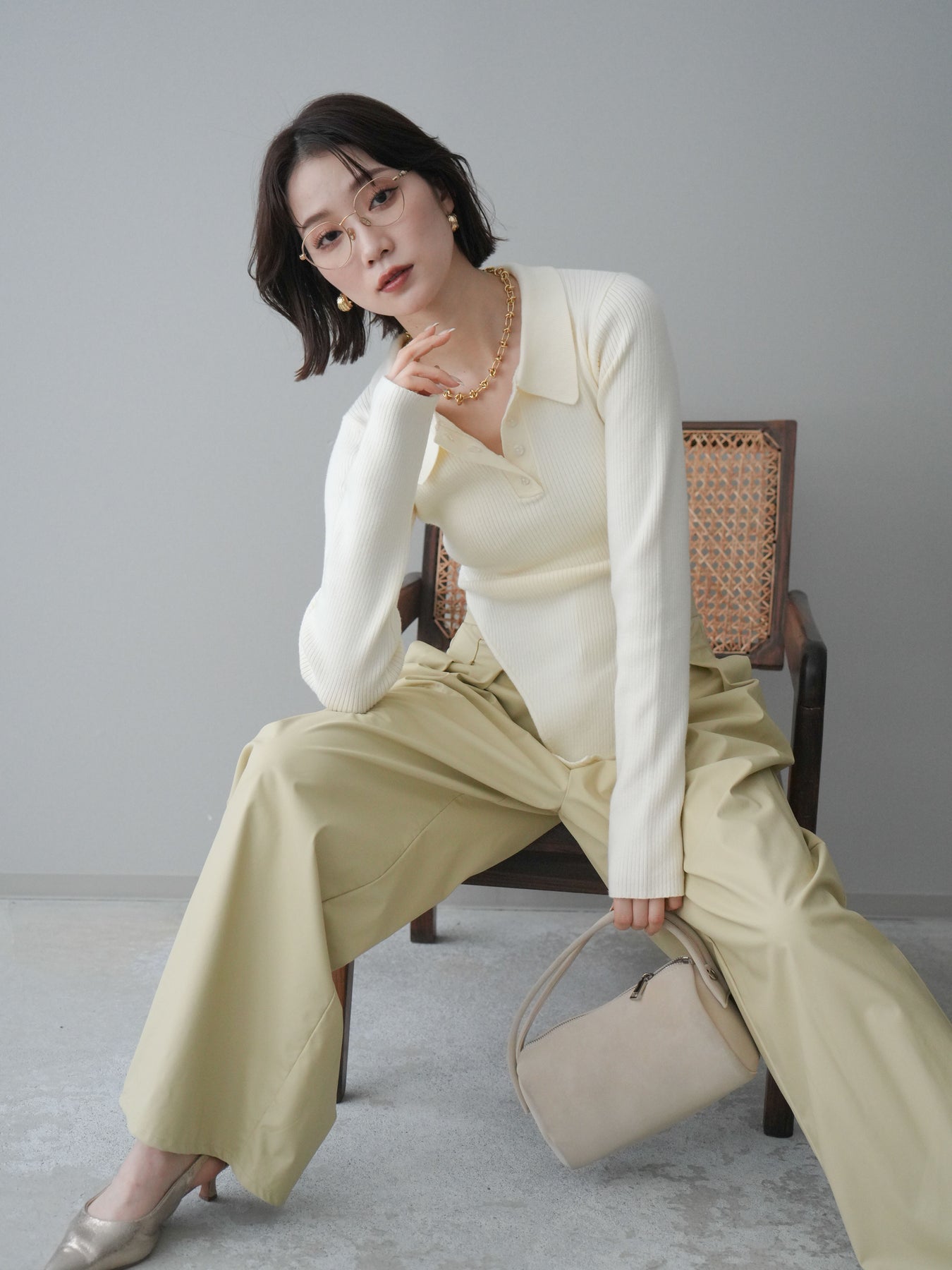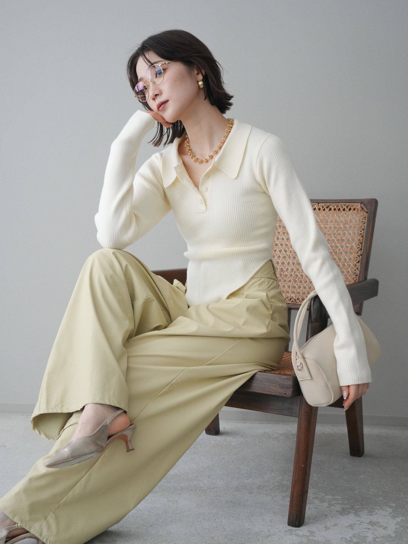 [予約]リブポロニットボディスーツ/ivory