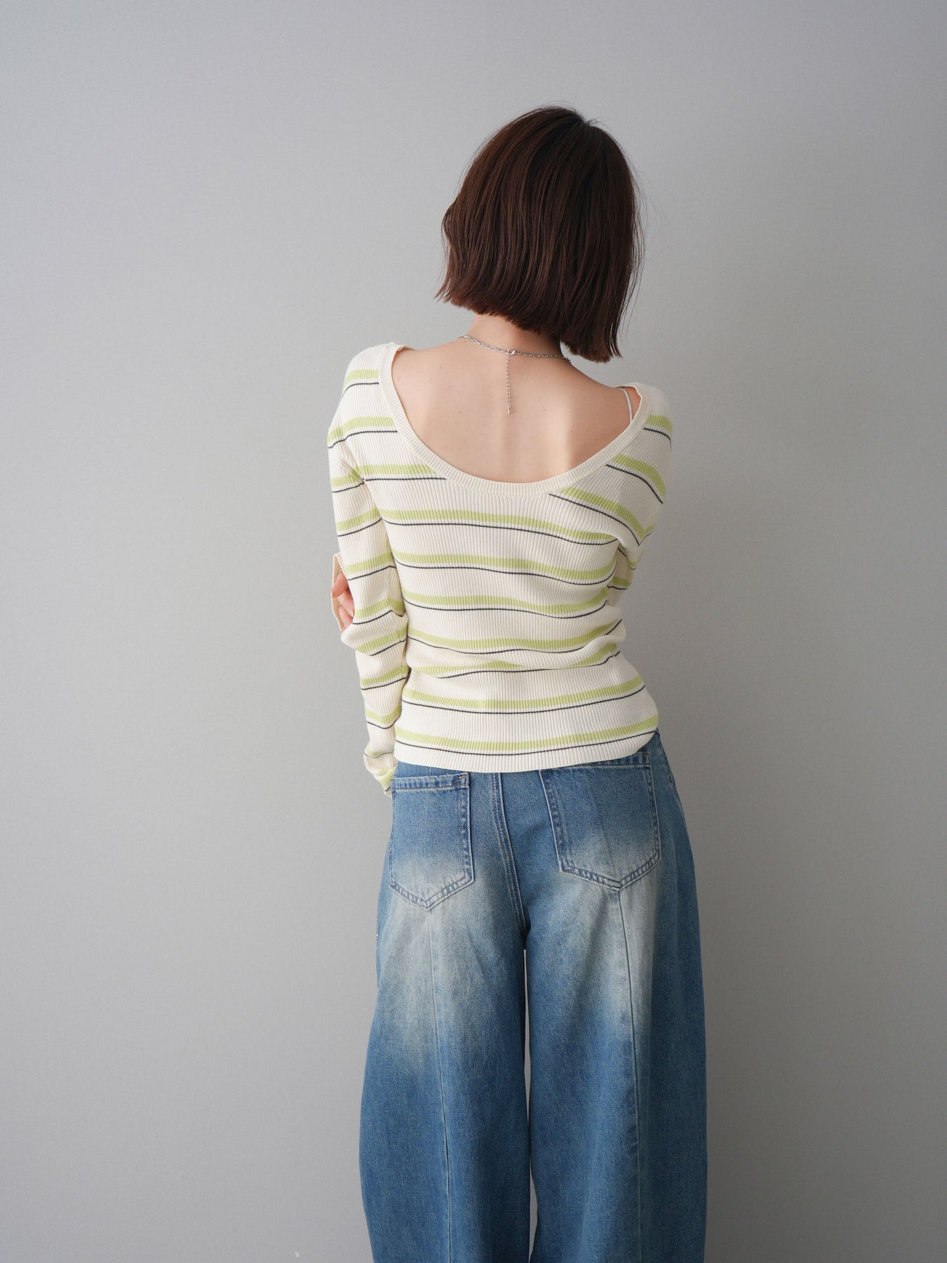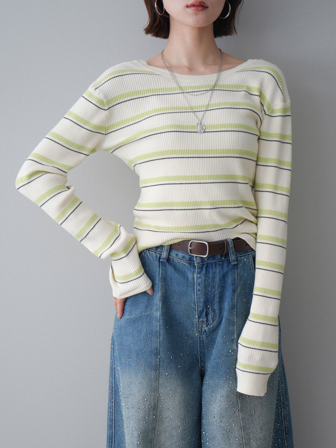 [予約]バックオープンテレコリブマルチボーダートップス/ivory