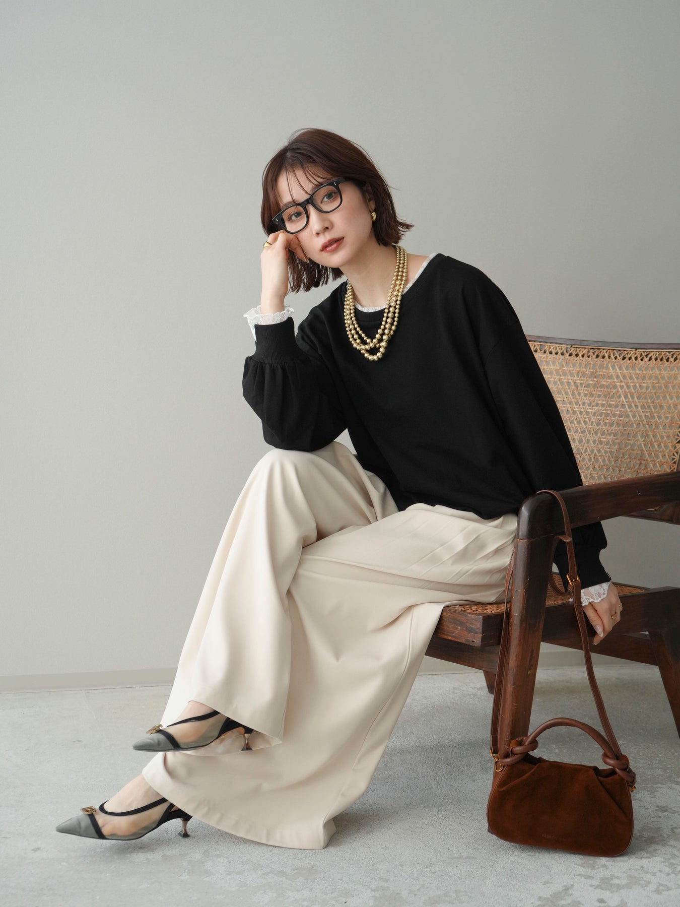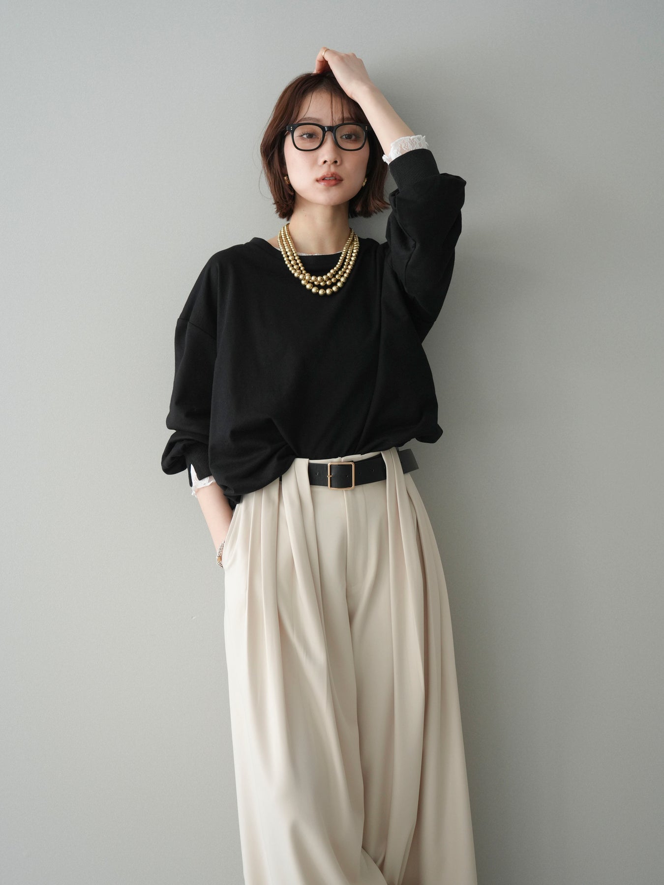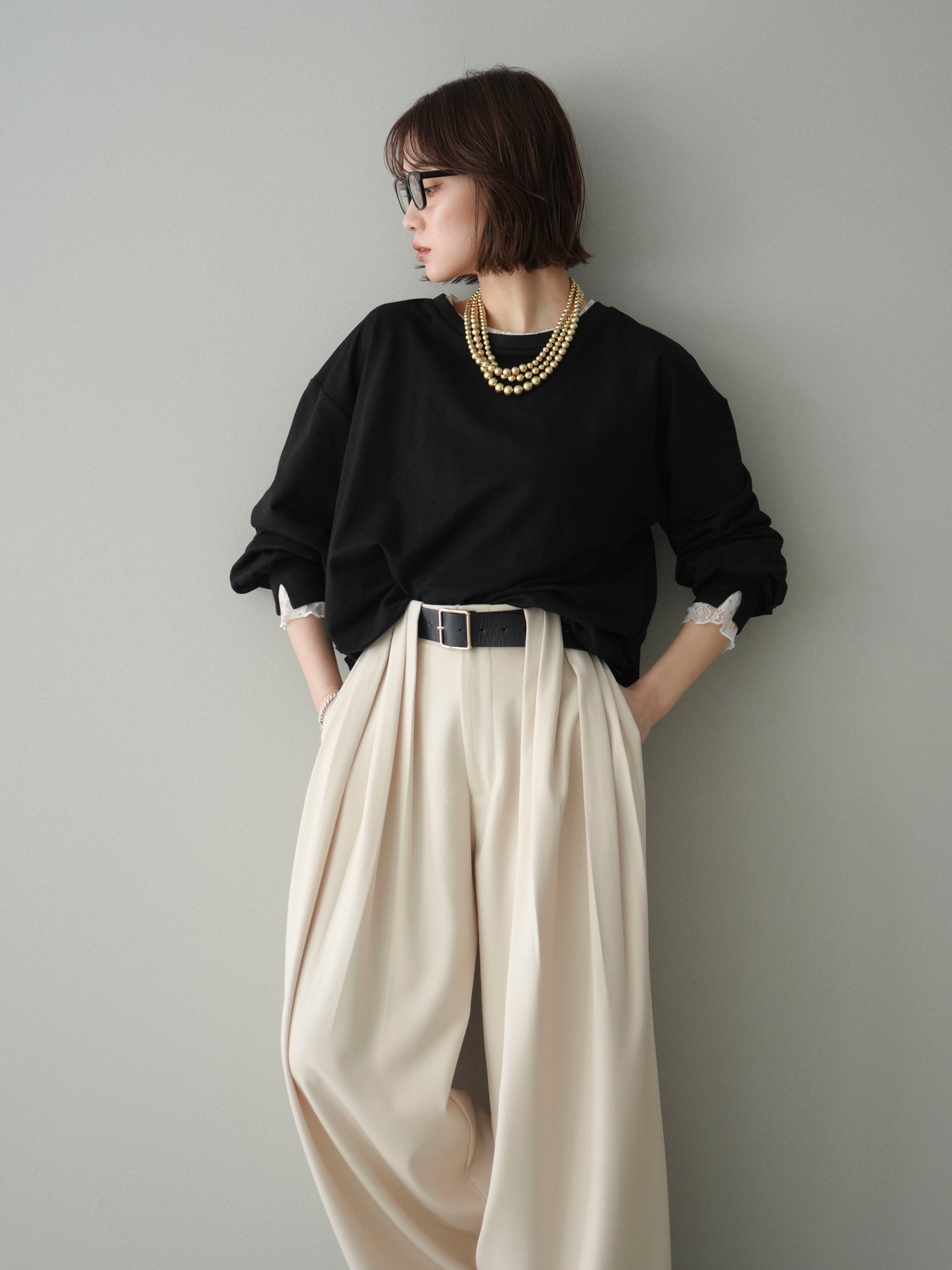 カットソー素材をベースに、袖口へ繊細なレースをあしらったバルーンシルエットのプルオーバー。ふんわりと丸みのあるフォルムが自然な立体感を生み、シンプルながらも着映えするデザインに仕上げています。程よくゆとりのあるサイズ感でリラックスした着心地ながら、レースの透け感が軽やかさと女性らしさをプラス。デイリー使いはもちろん、きれいめなスタイリングにも取り入れやすい一着です。 ※ボトムス、キャミソール(インナー)以外の商品は一律でインナーは付属していません。