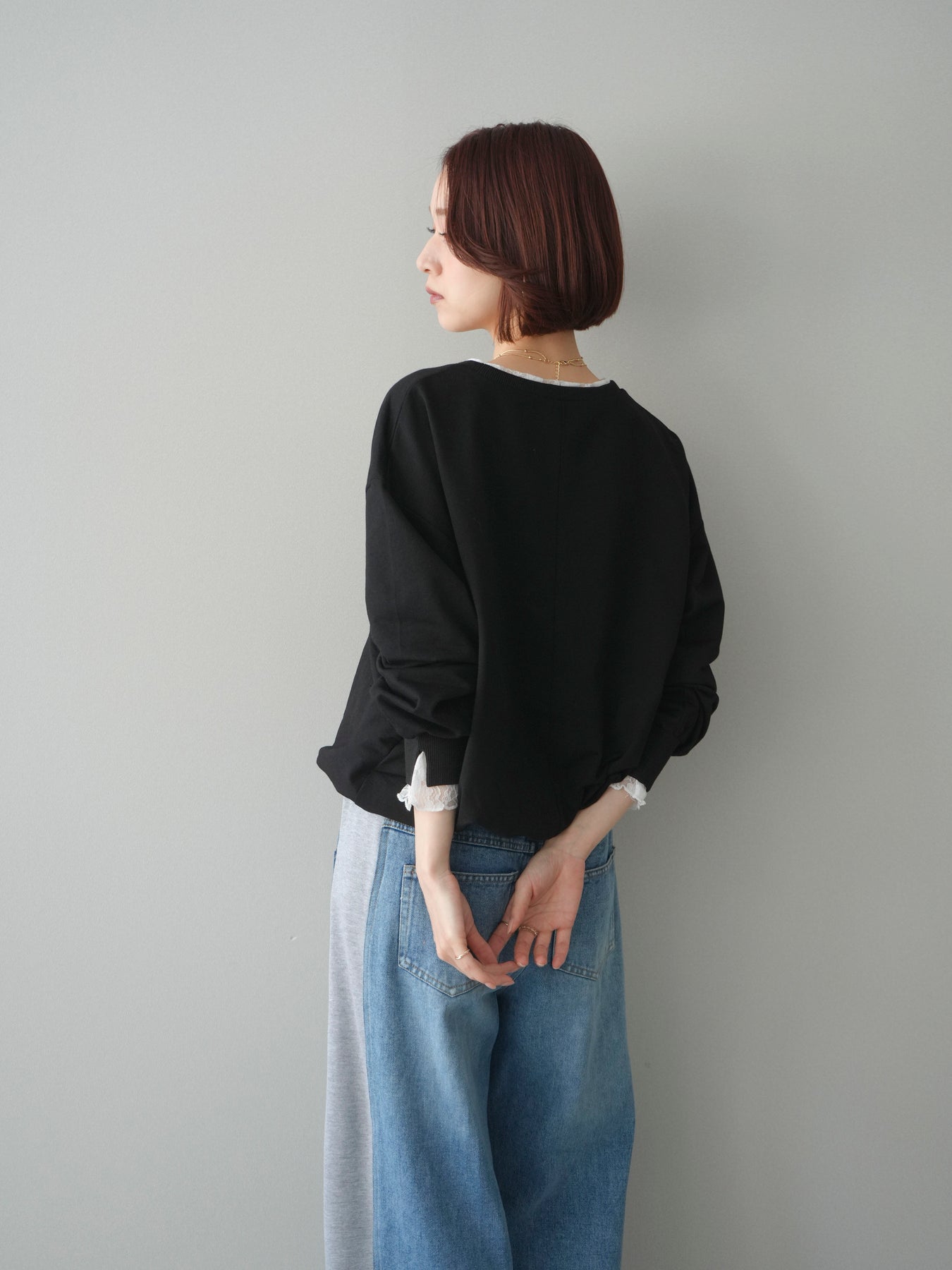 [予約]袖レースカットバルーンプルオーバー/black