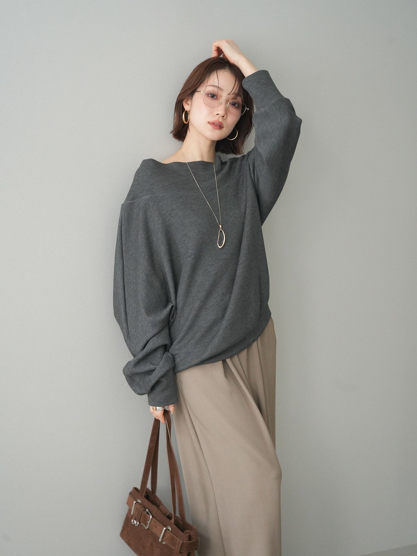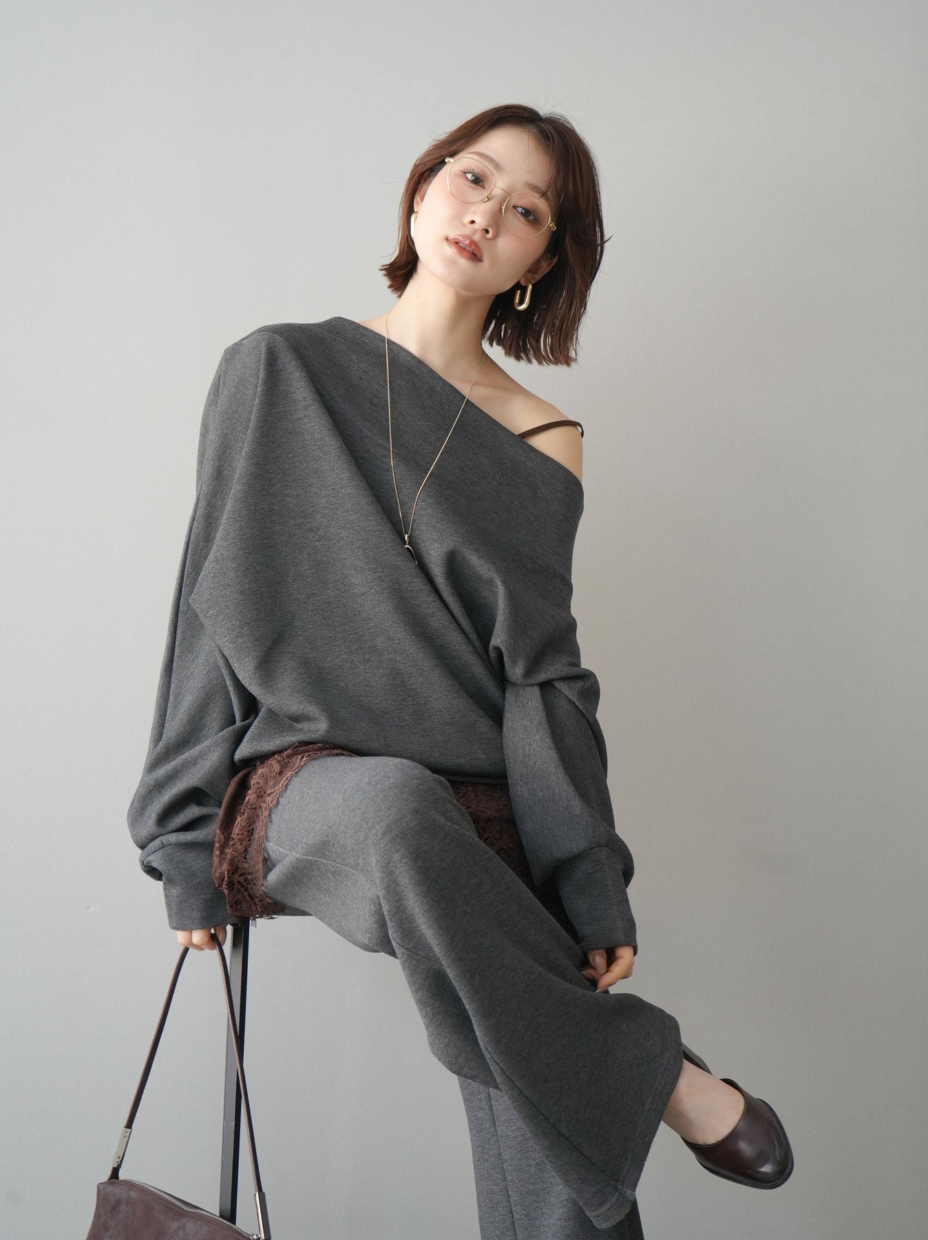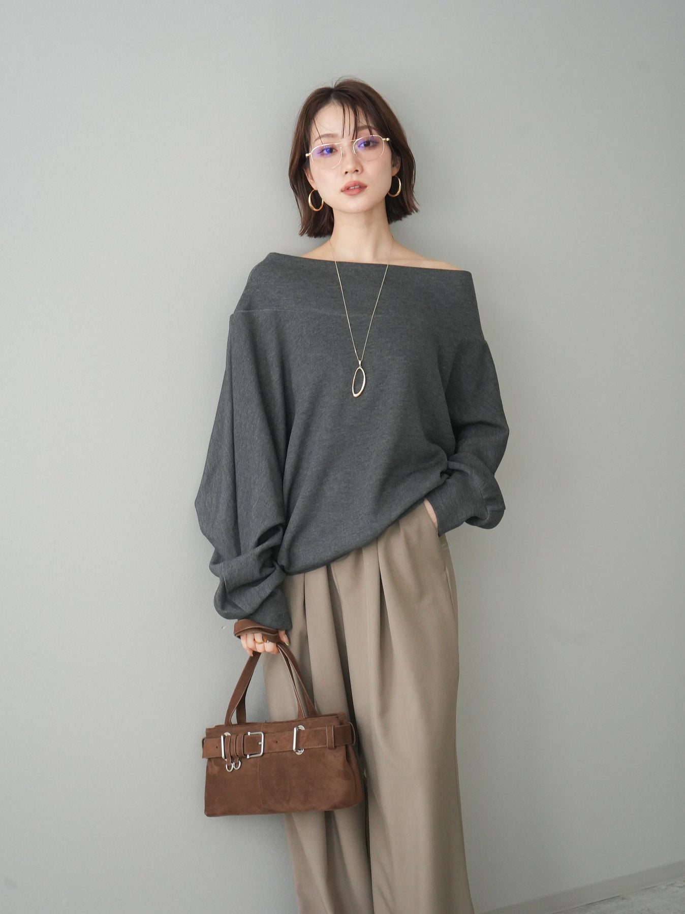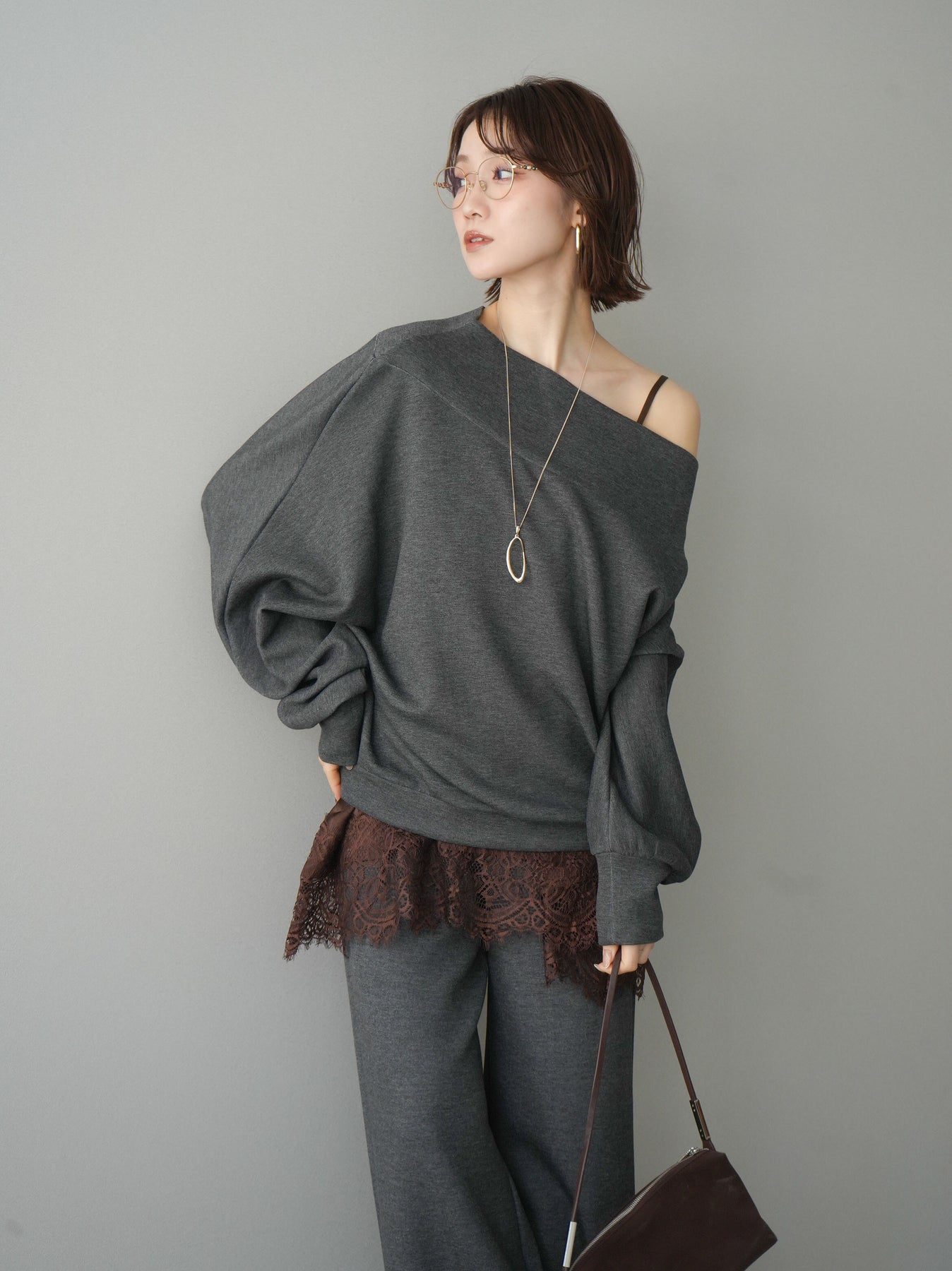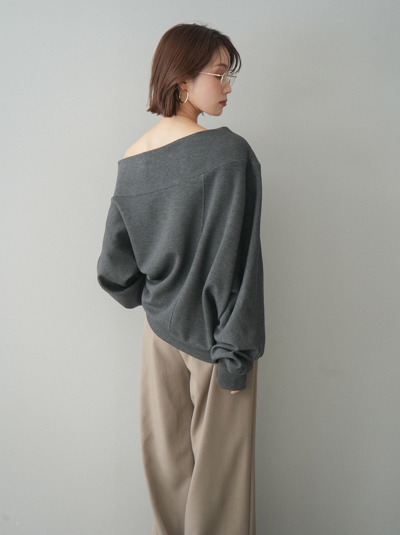 [予約]アシンメトリーオフショルポンチプルオーバー/charcoal