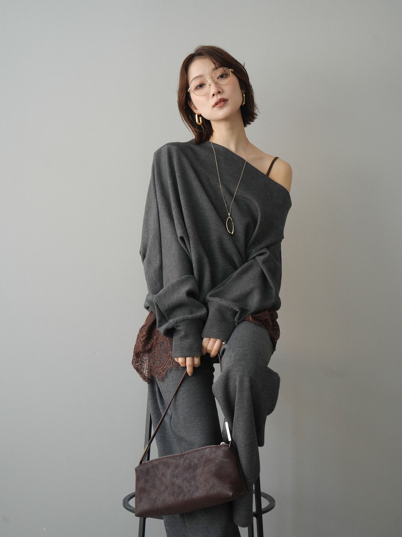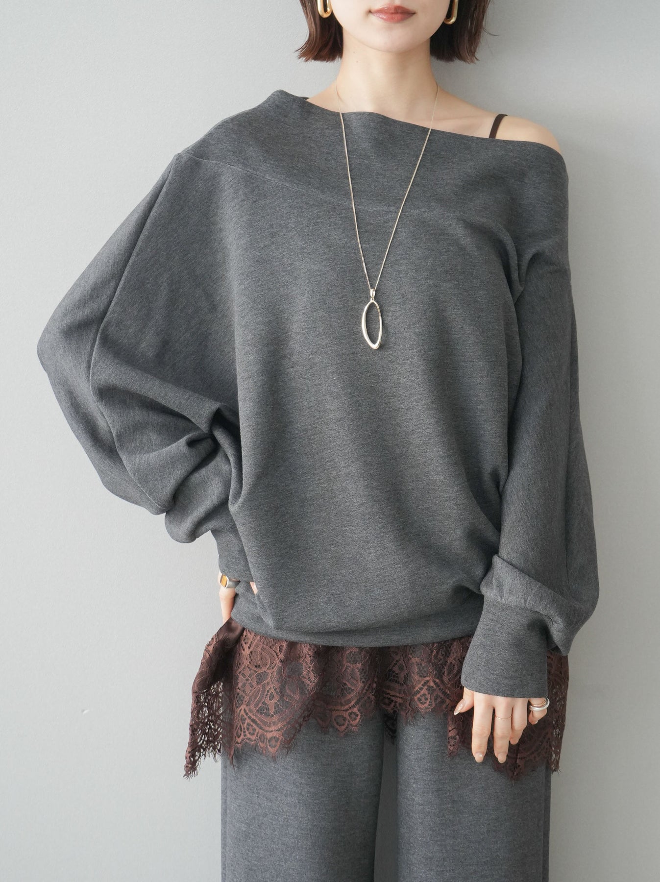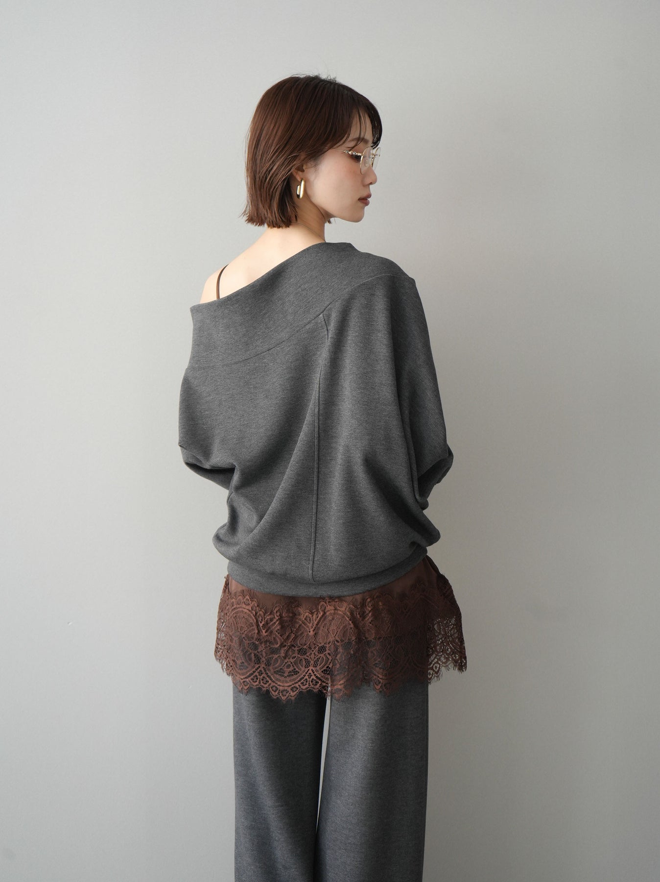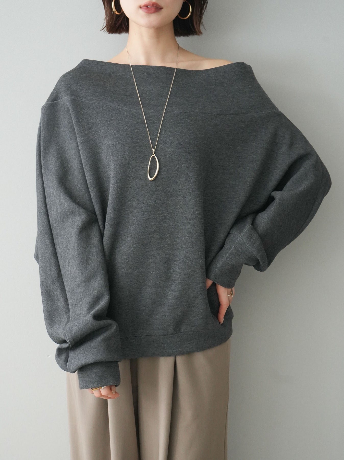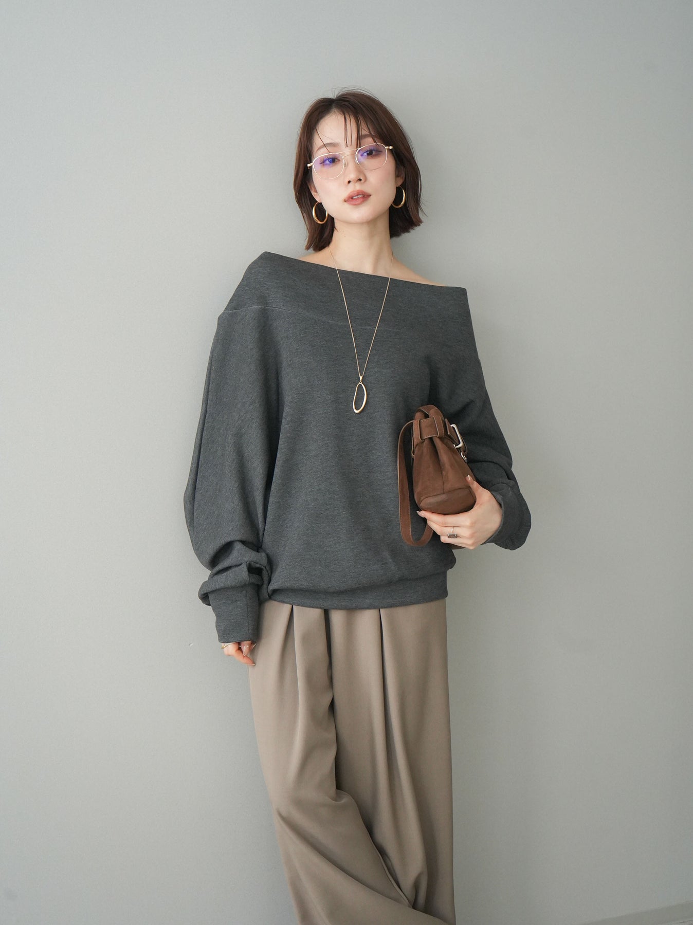 [予約]アシンメトリーオフショルポンチプルオーバー/charcoal