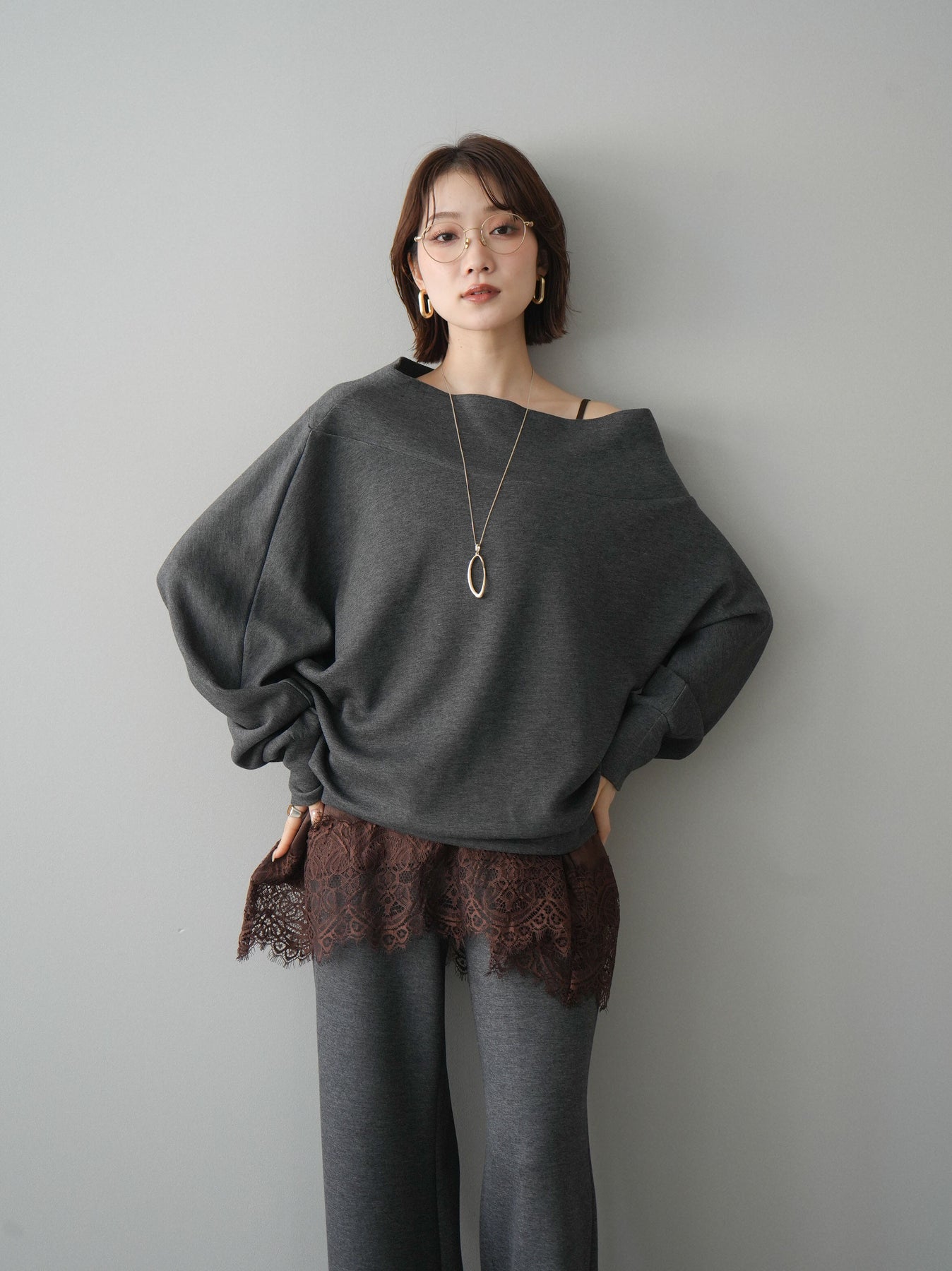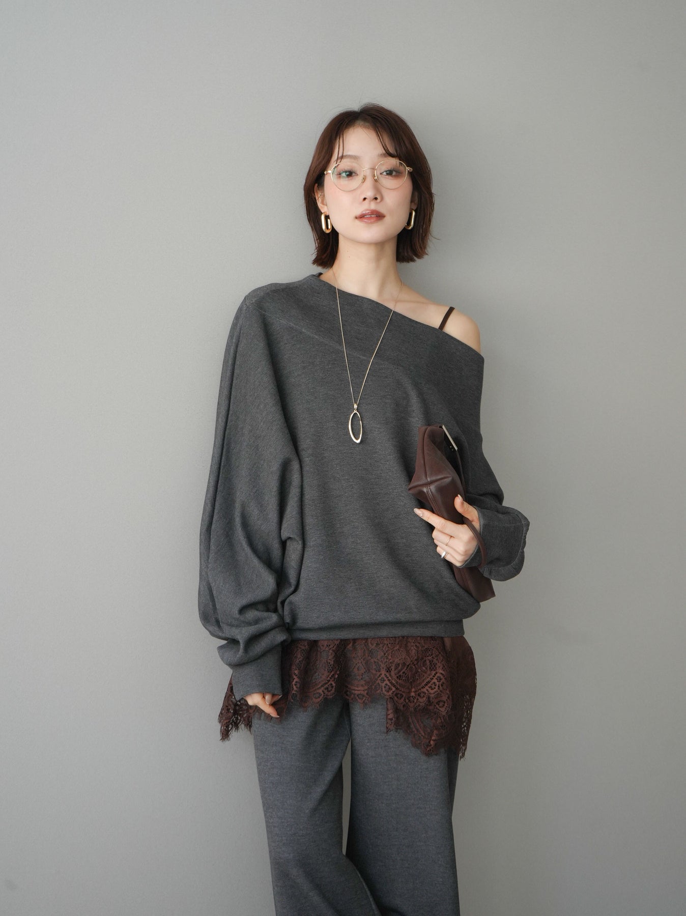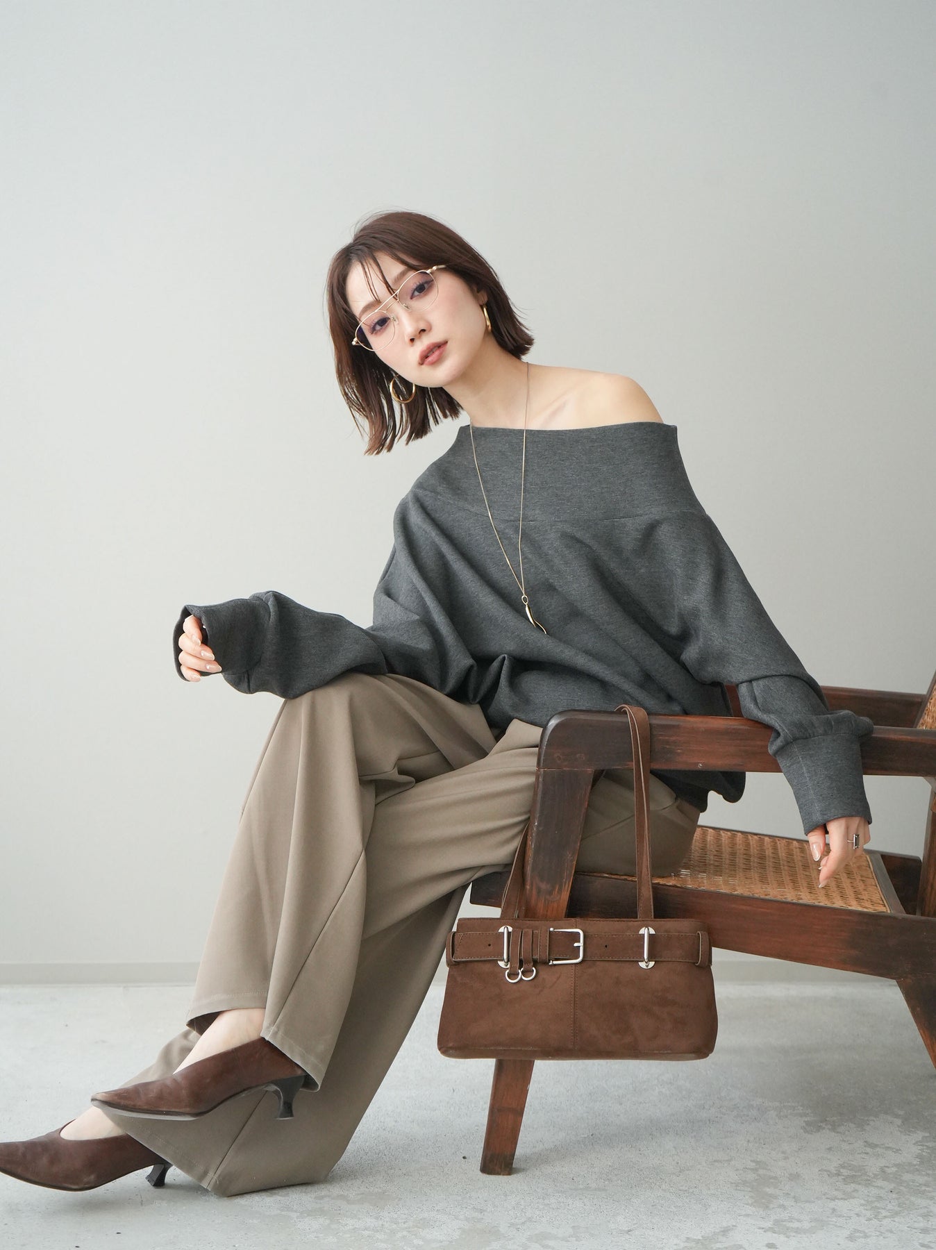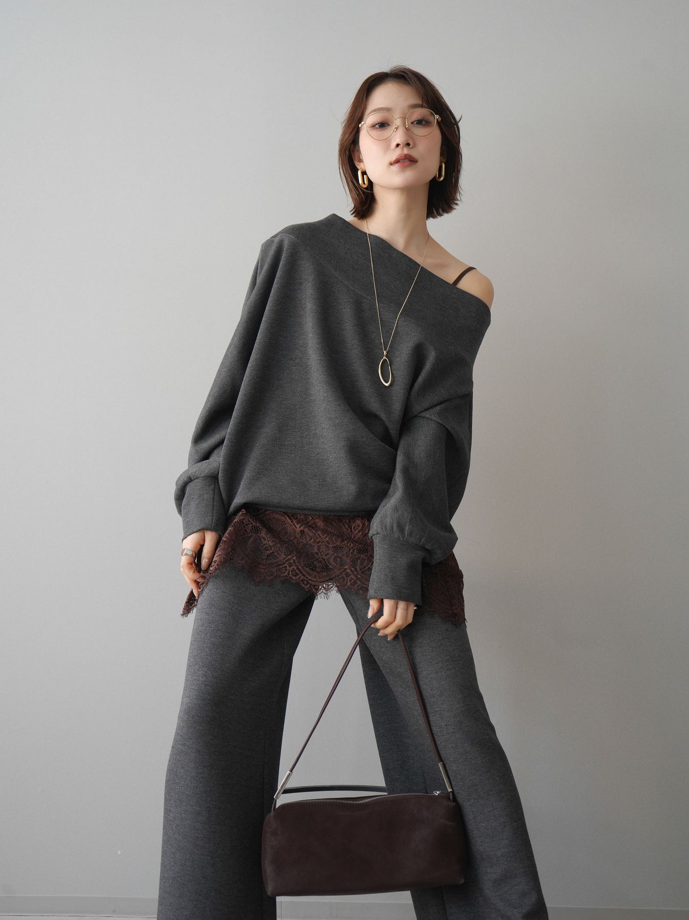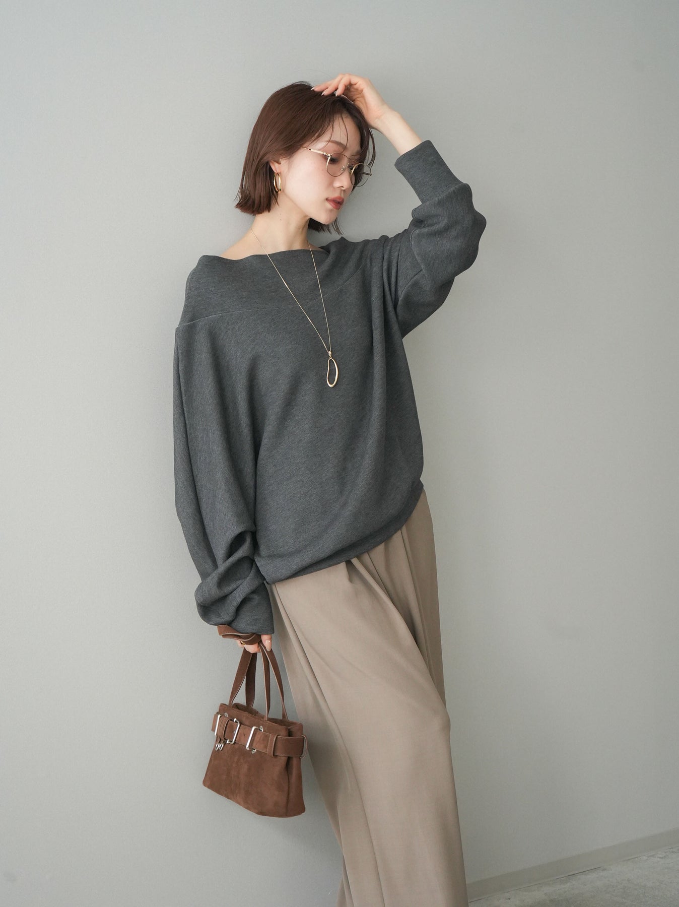 [予約]アシンメトリーオフショルポンチプルオーバー/charcoal