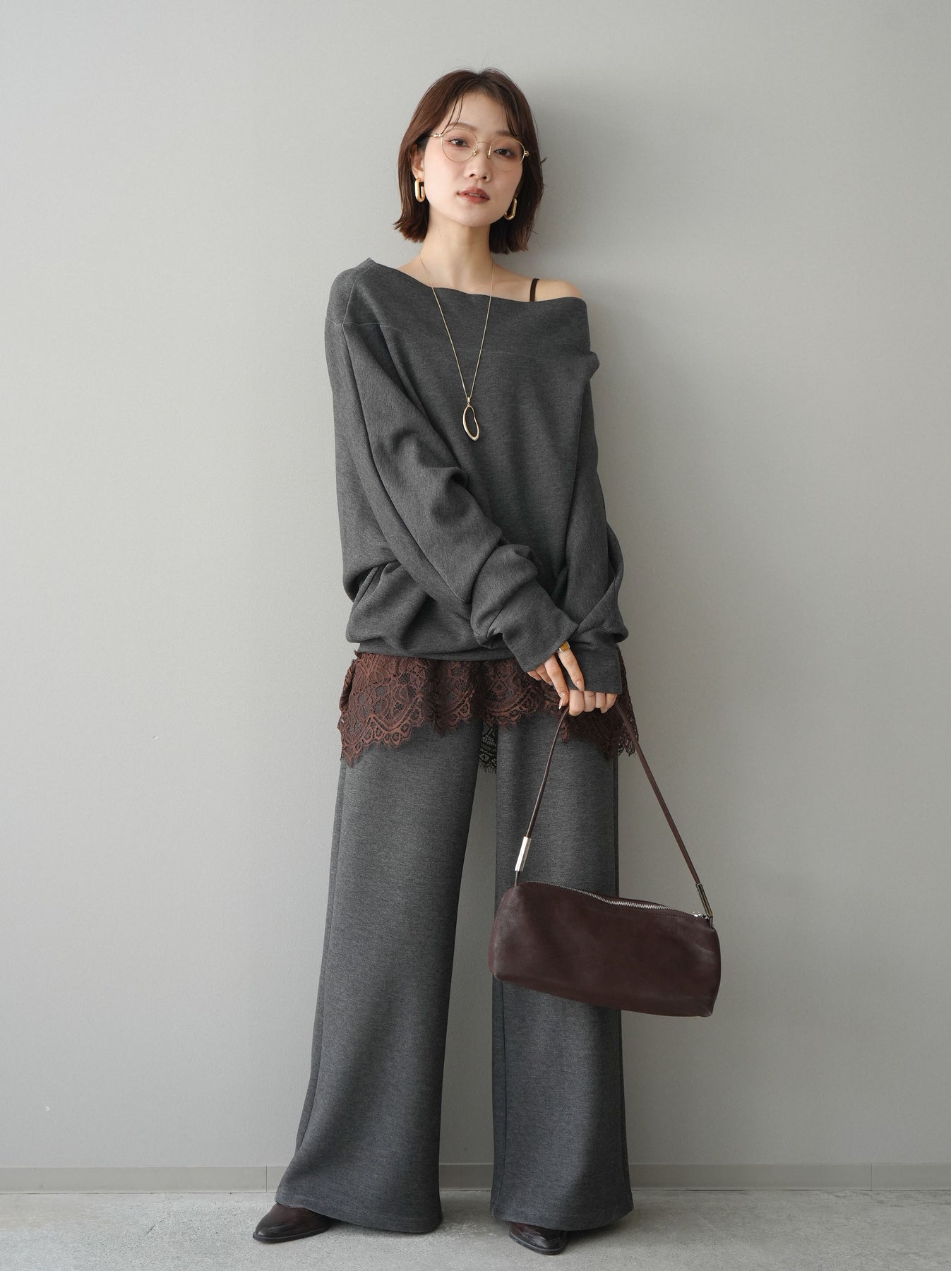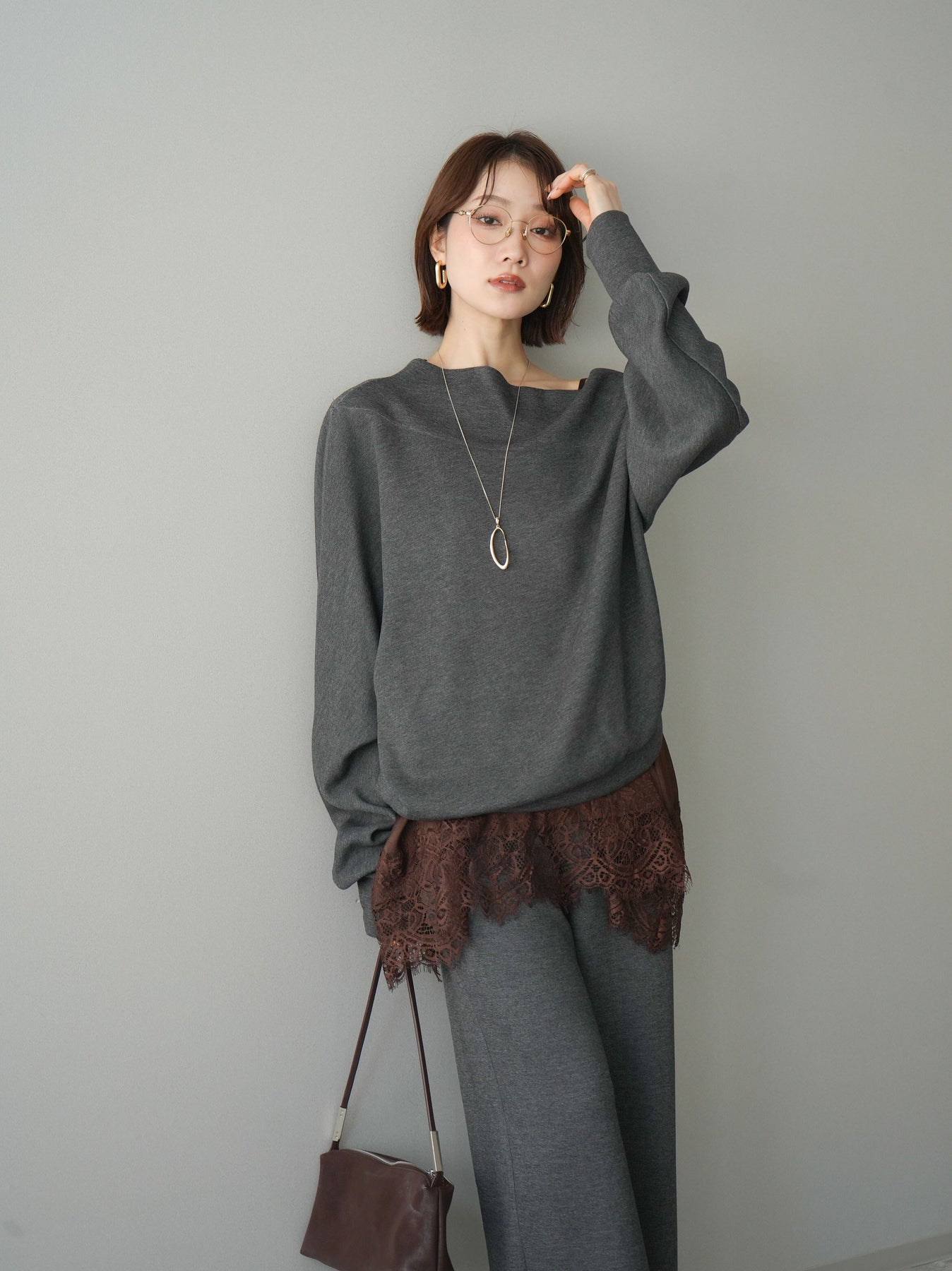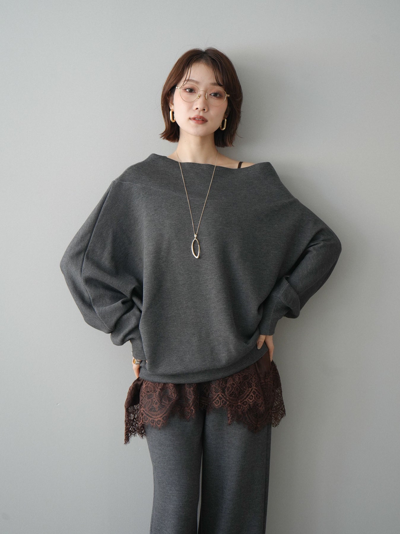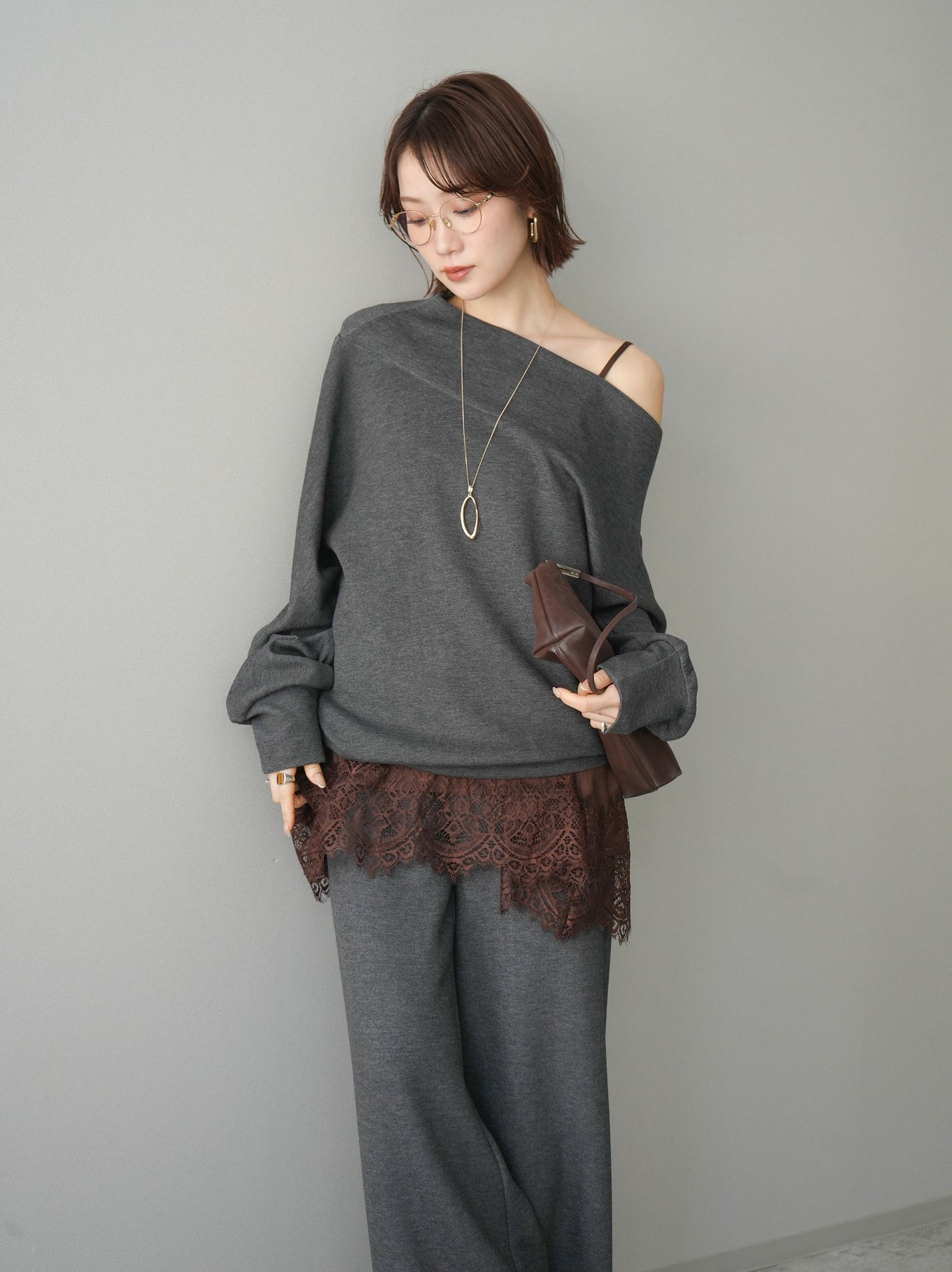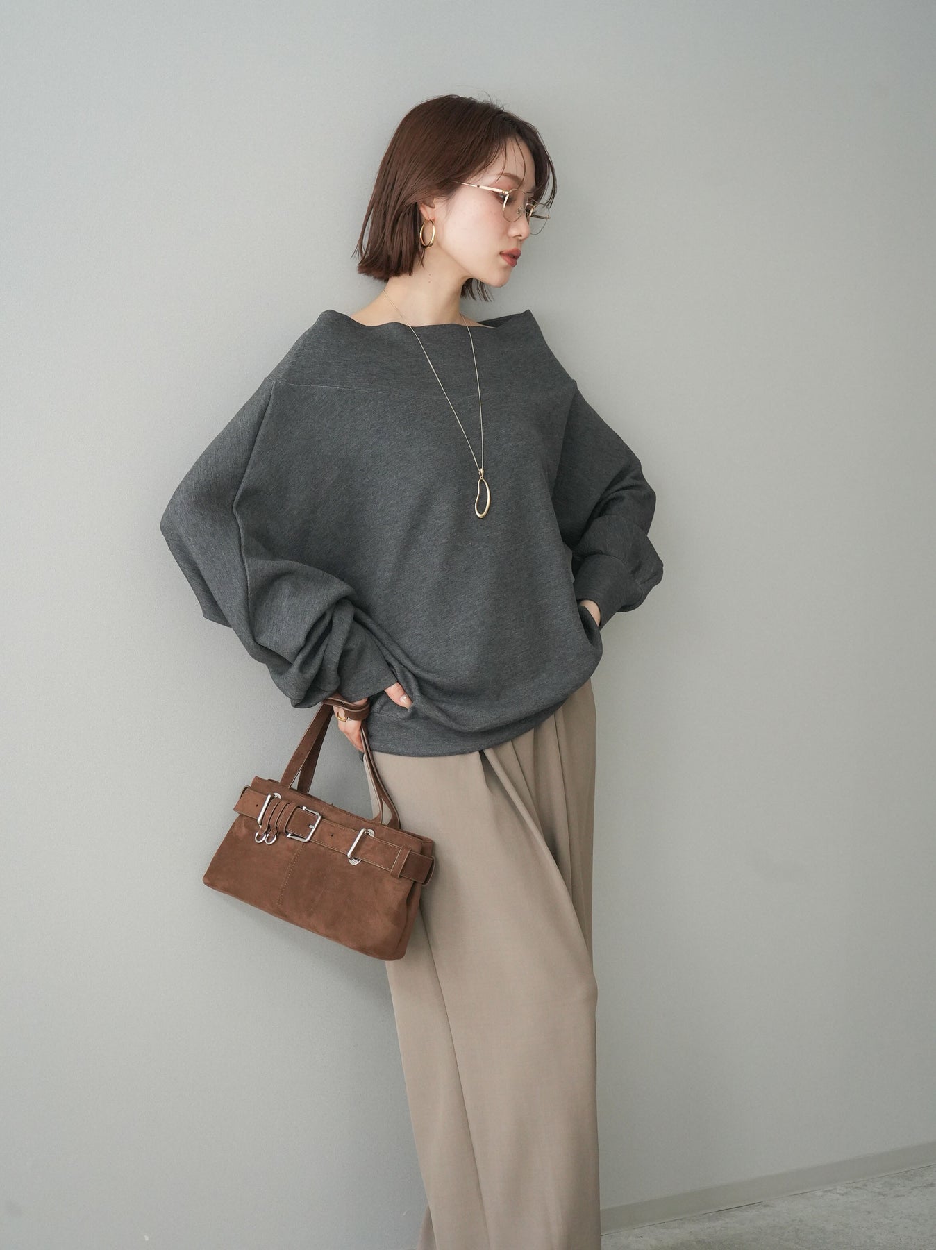 [予約]アシンメトリーオフショルポンチプルオーバー/charcoal