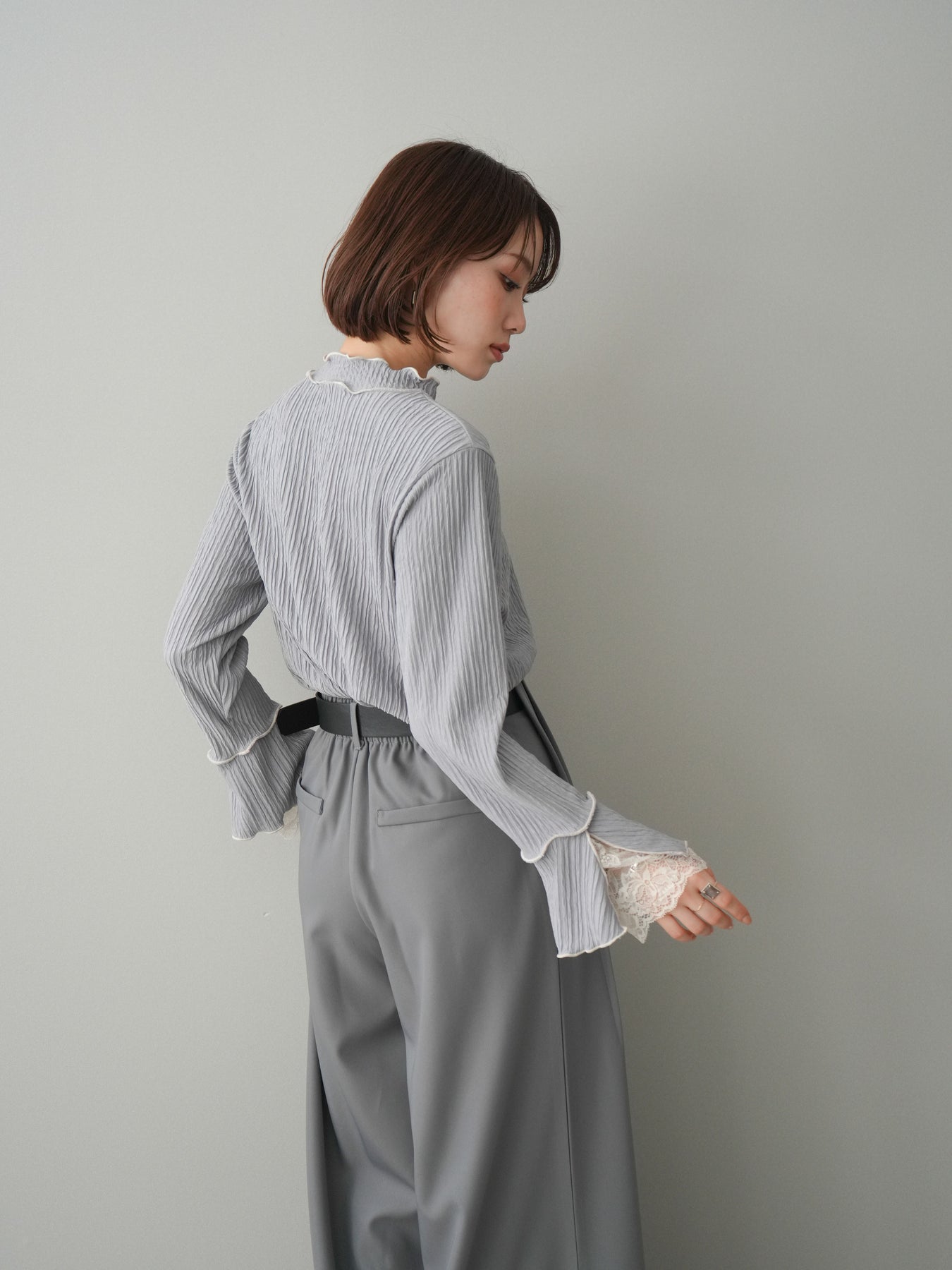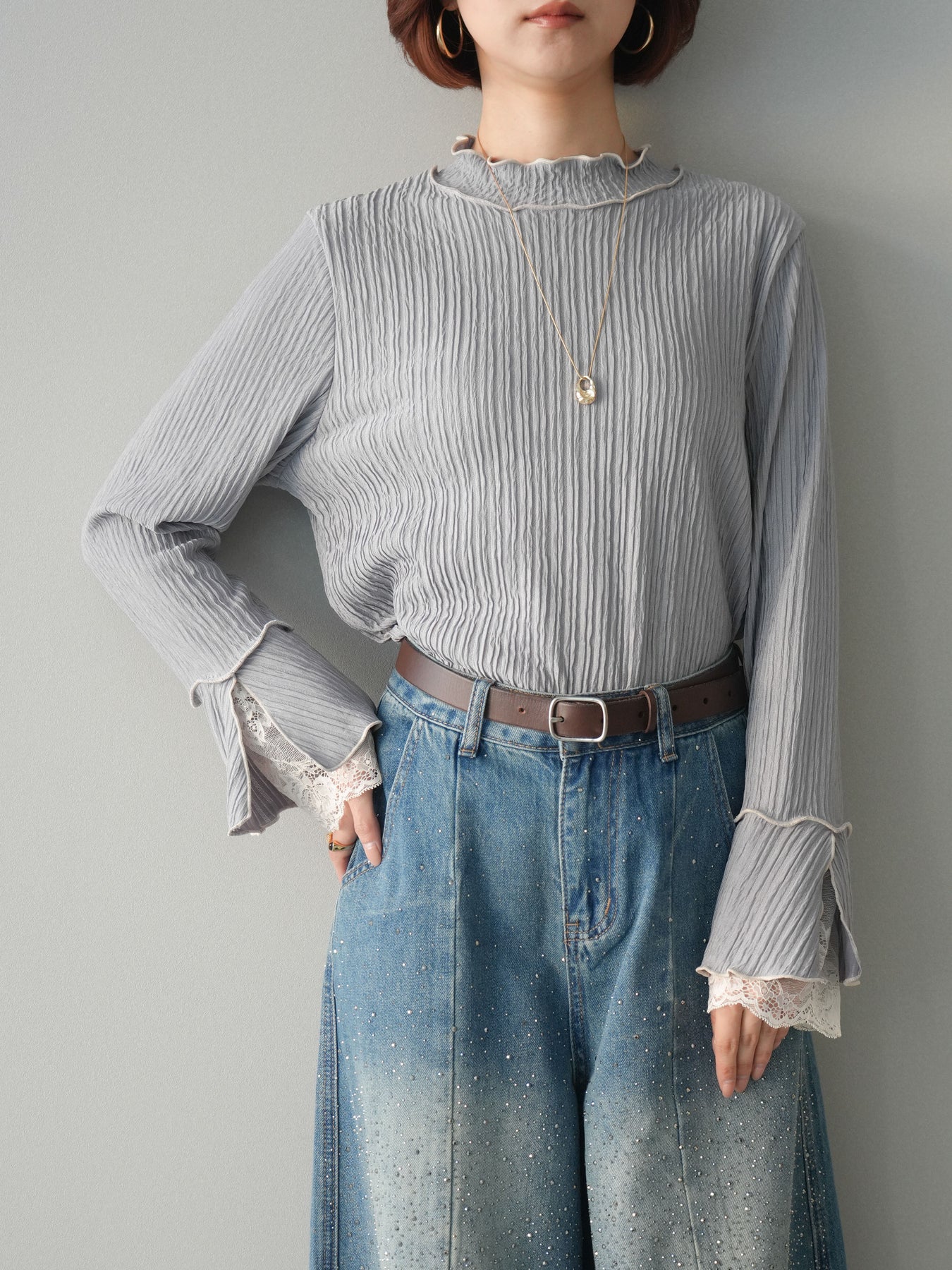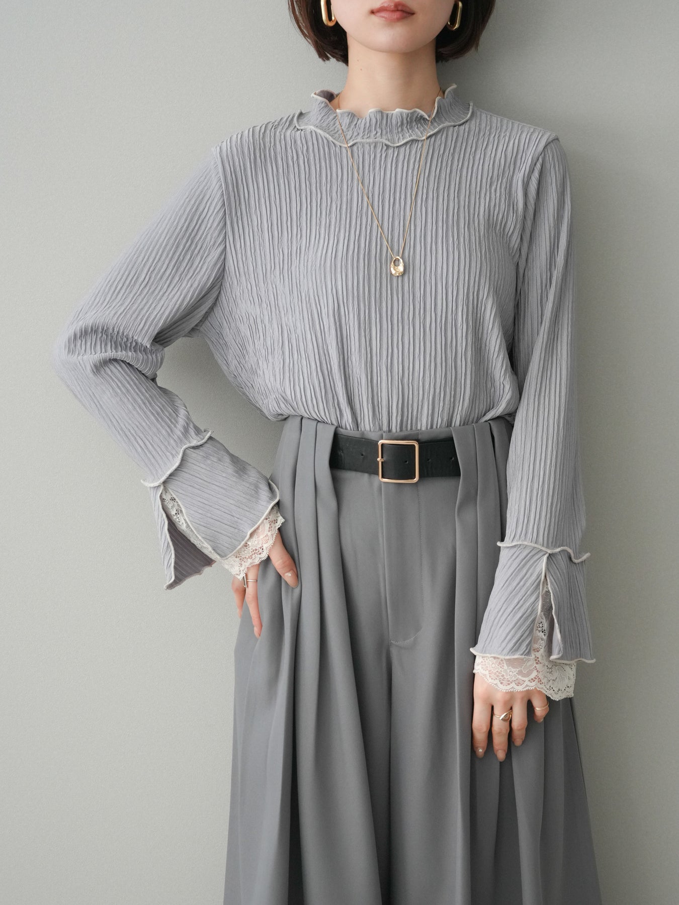[予約]袖レース楊柳メロートップス/lightgray