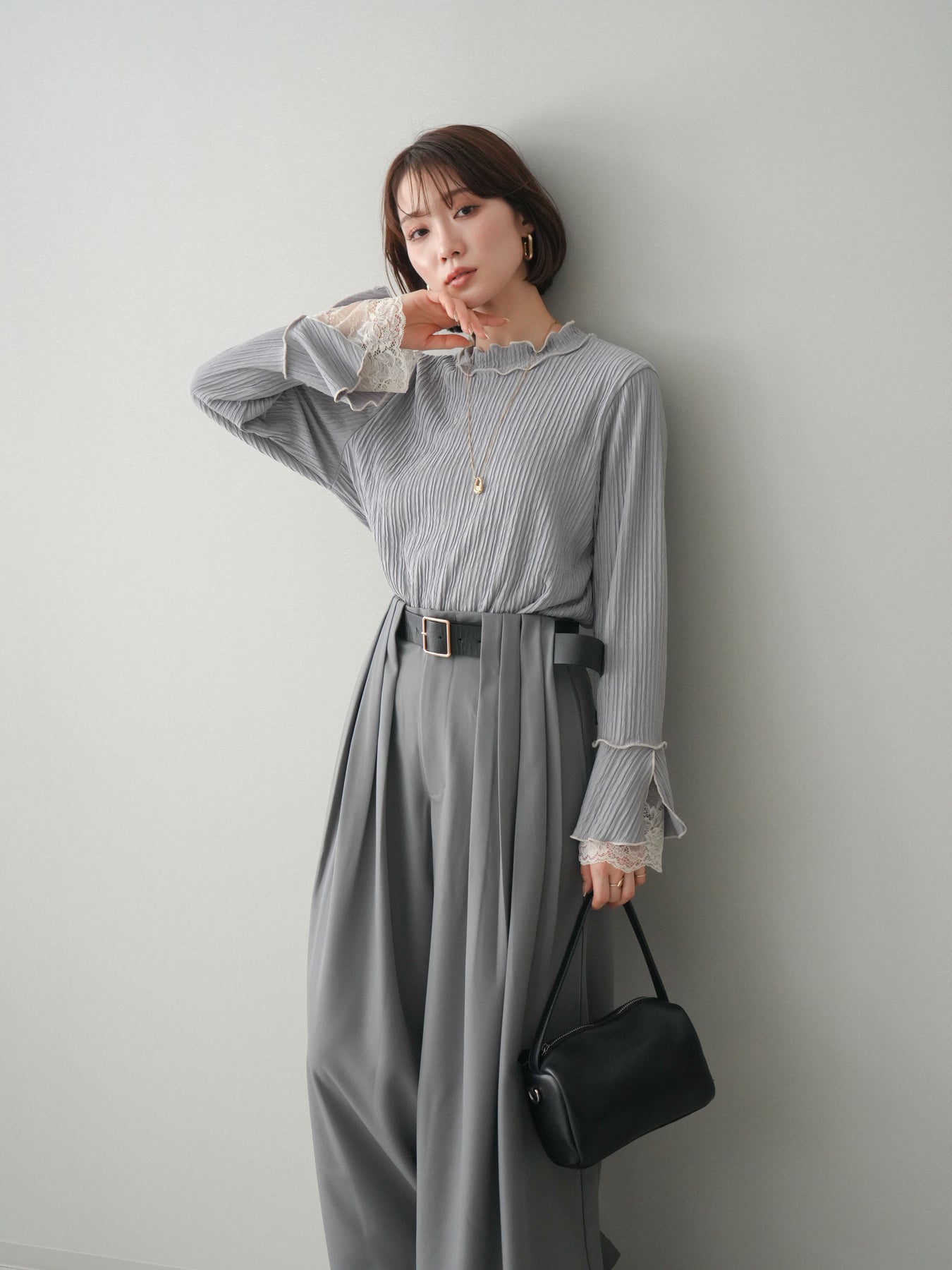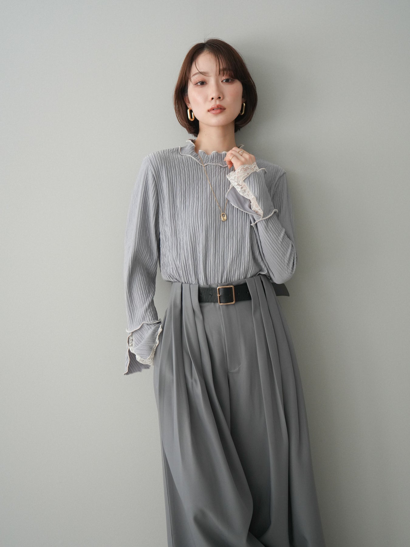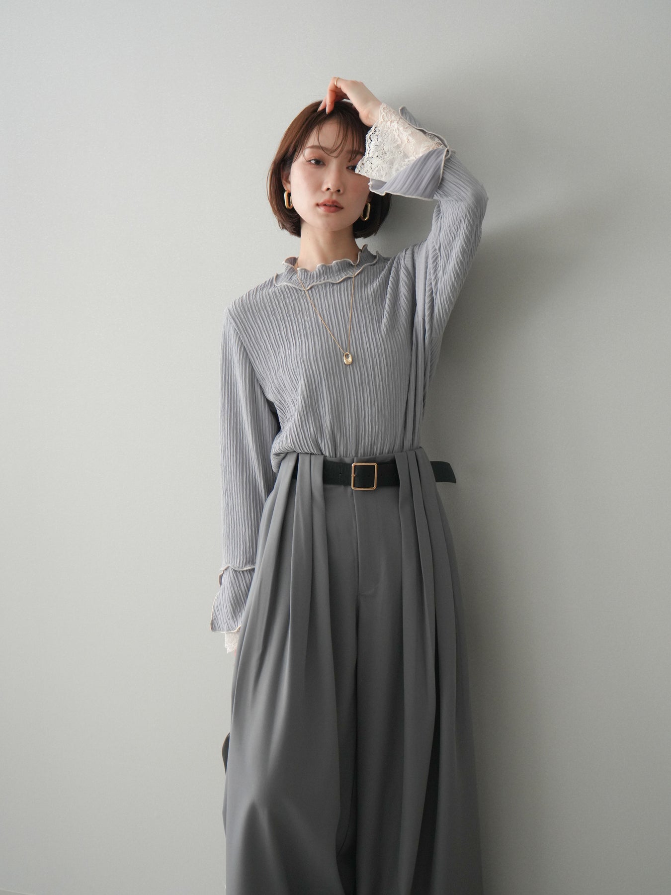 [予約]袖レース楊柳メロートップス/lightgray