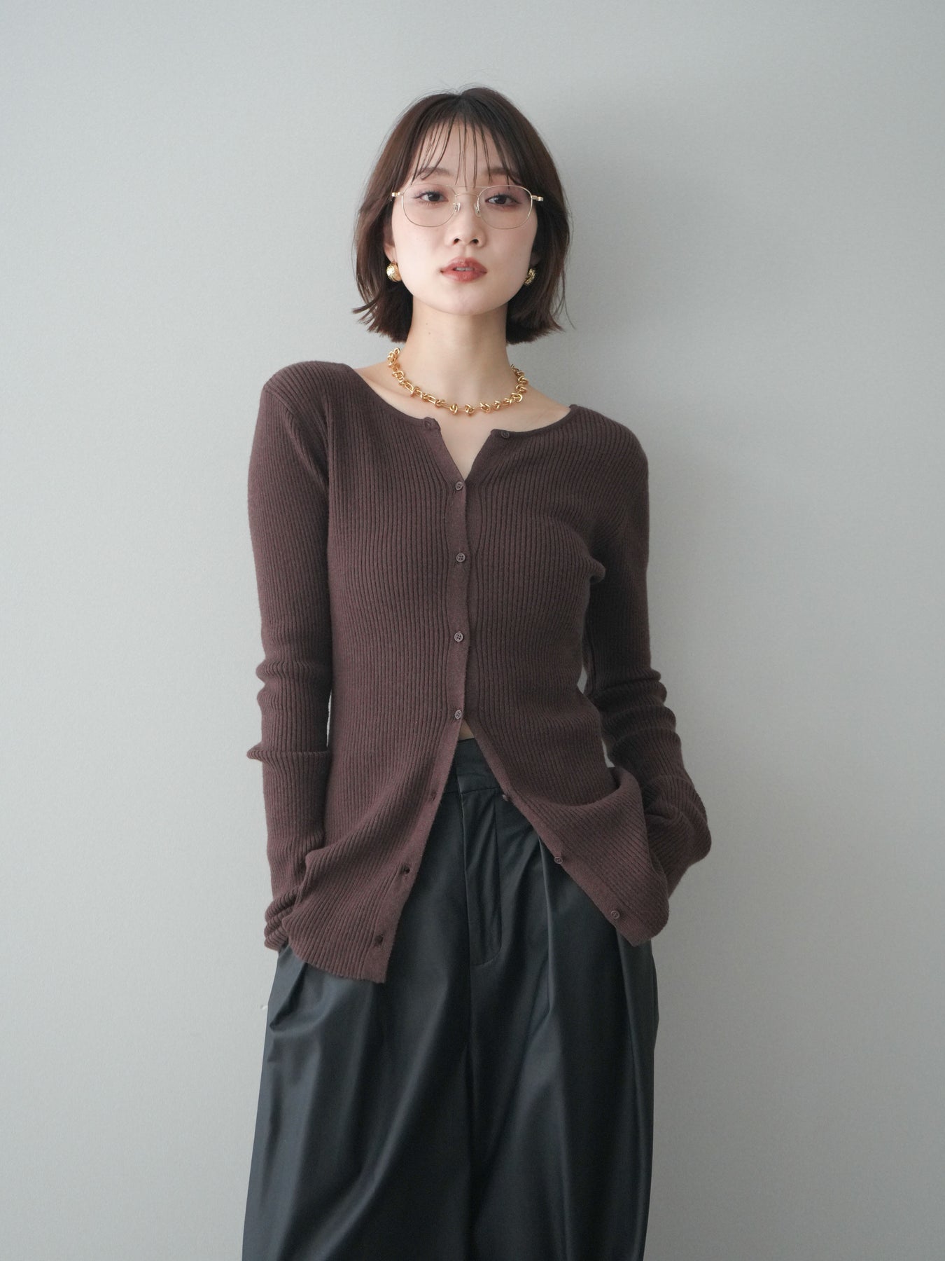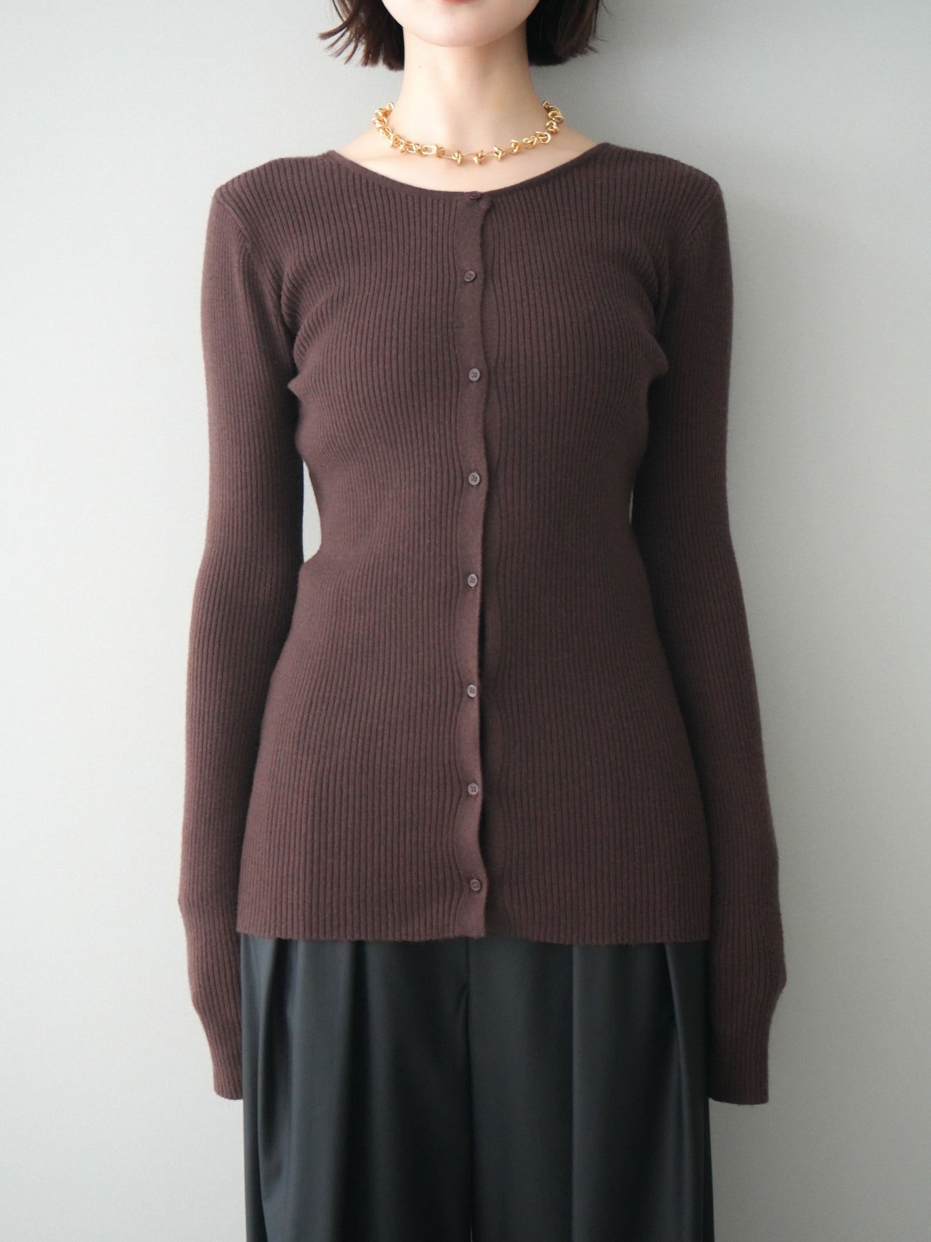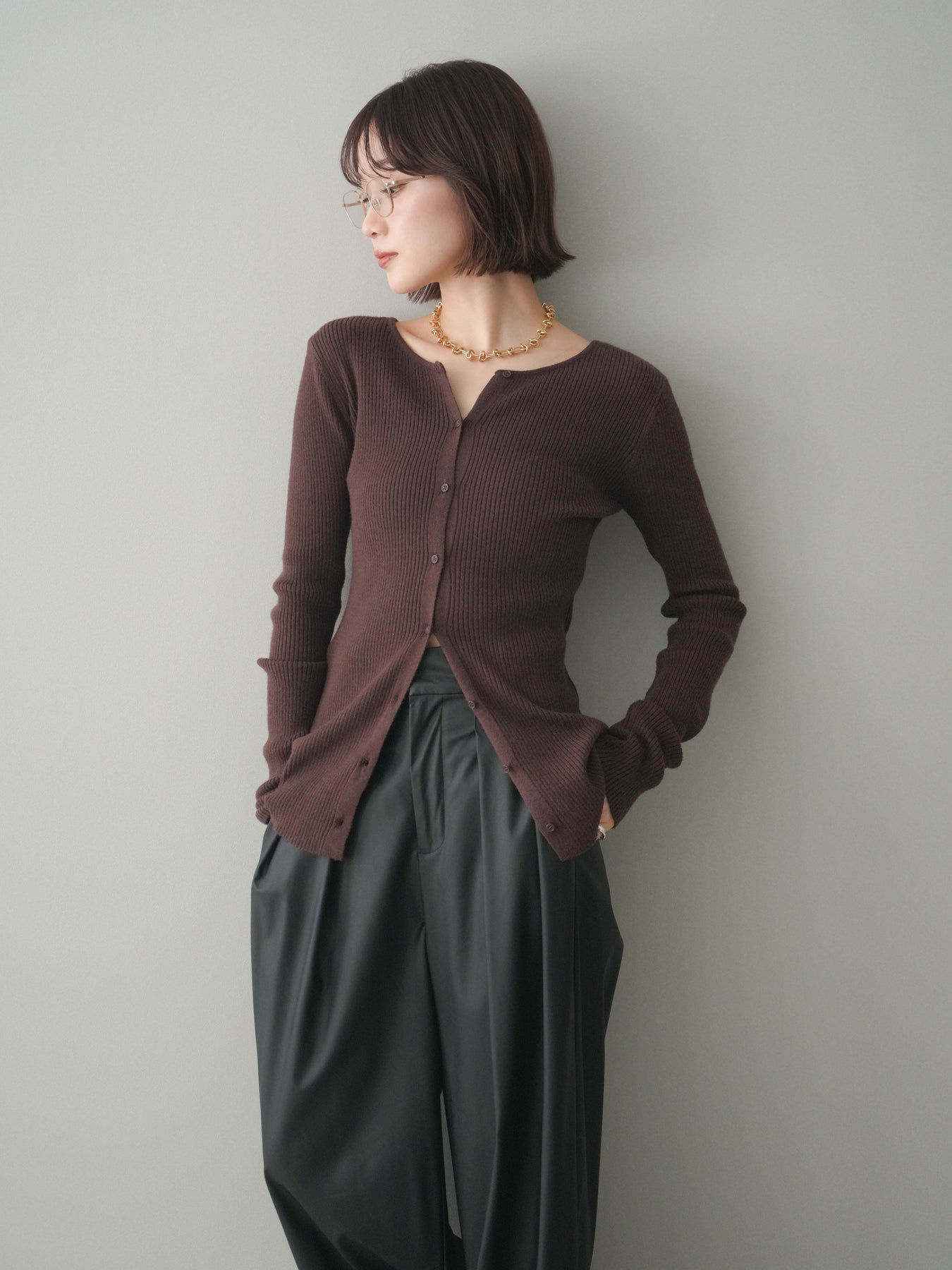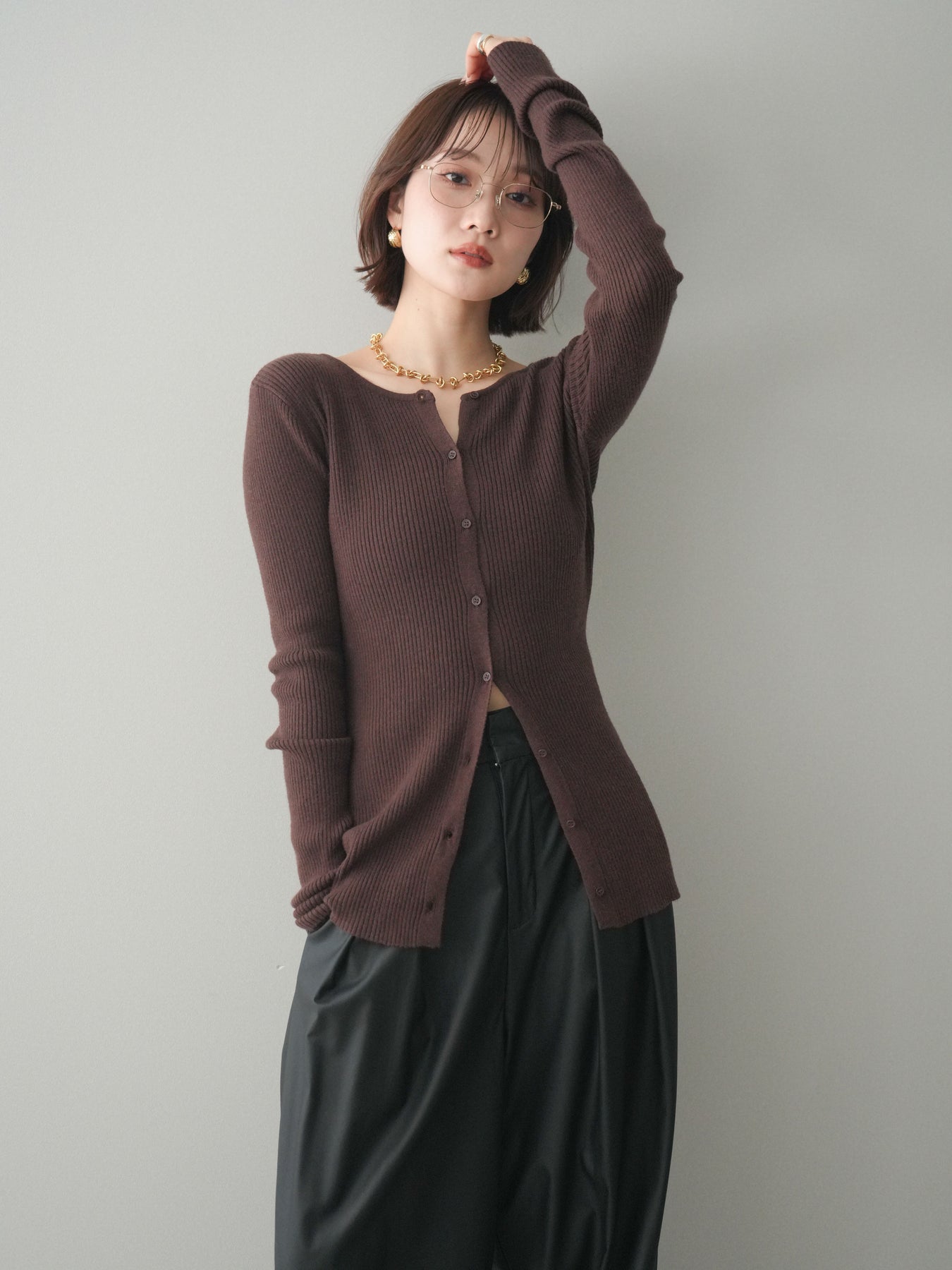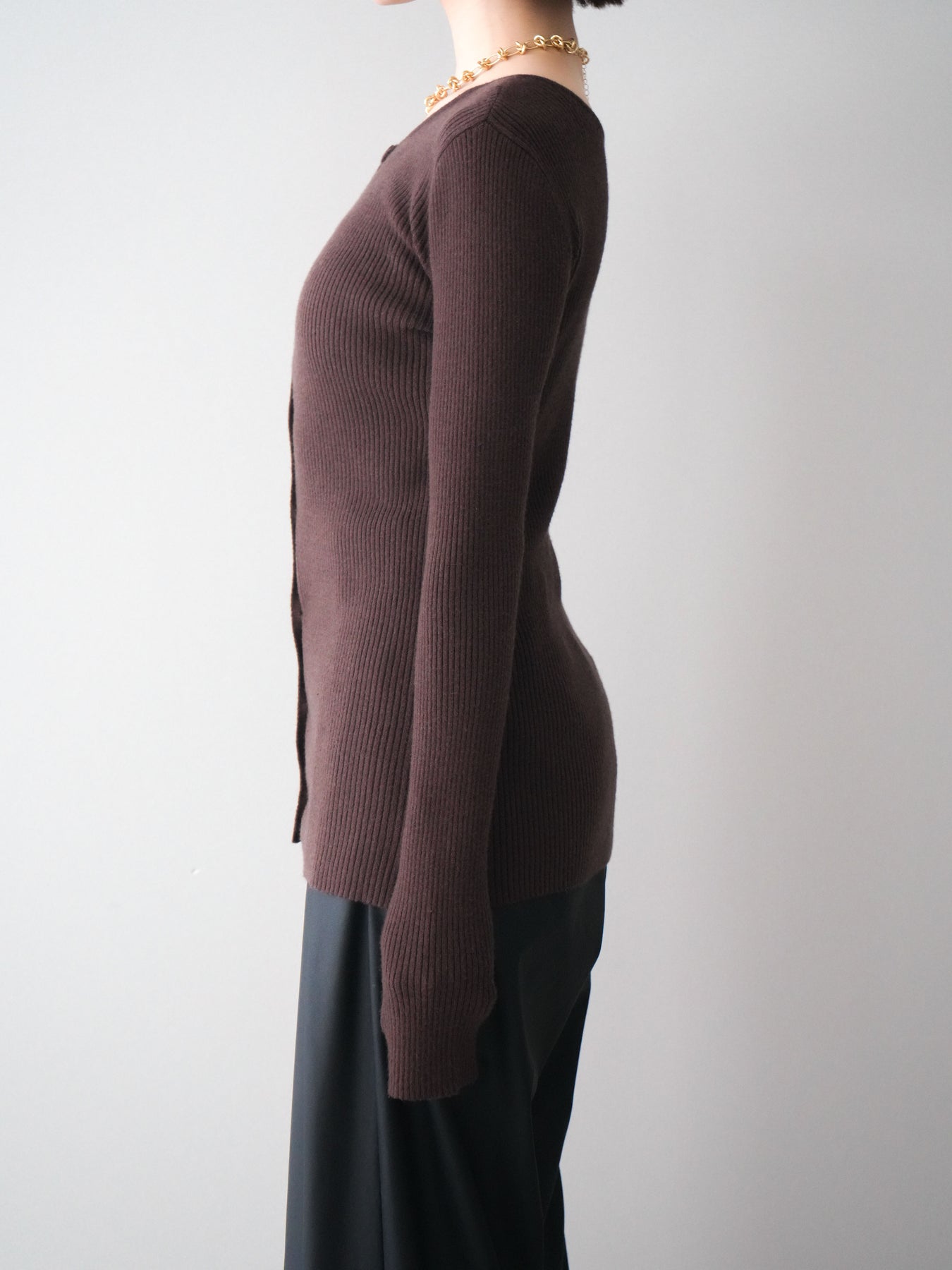 [予約]前後2WAYリブ編みクルーネックカーディガン/darkbrown