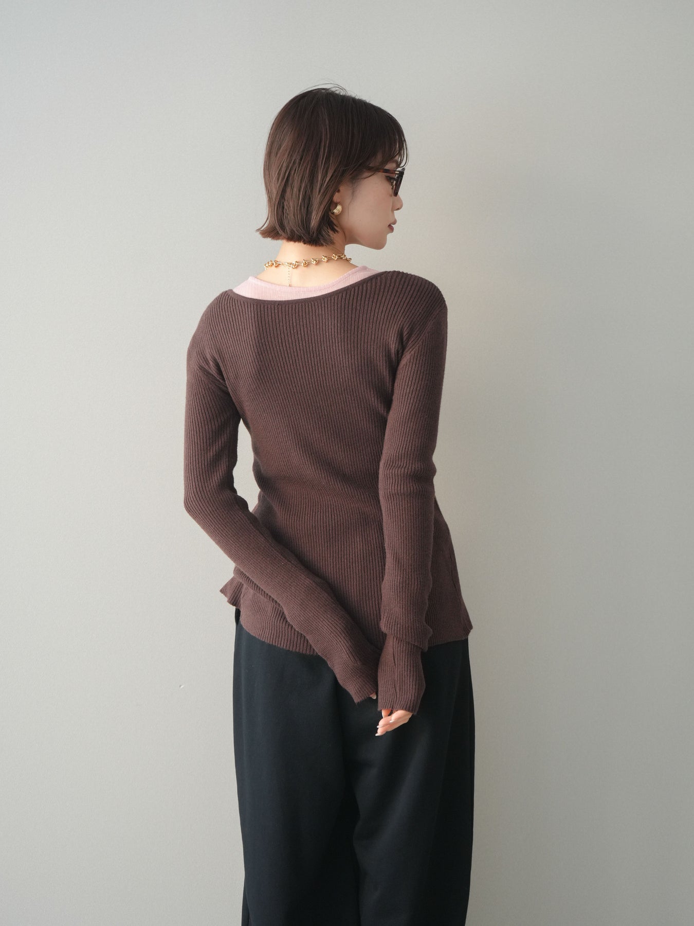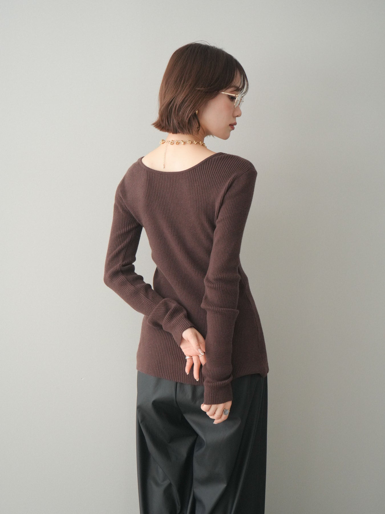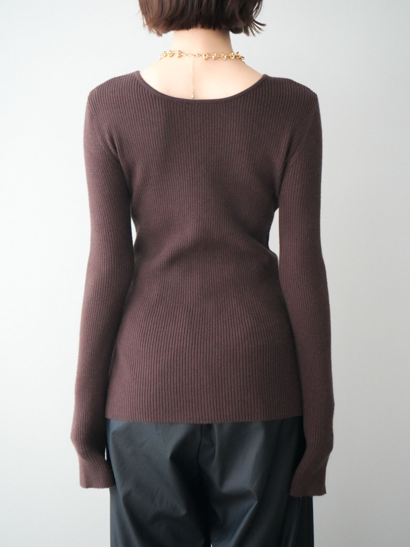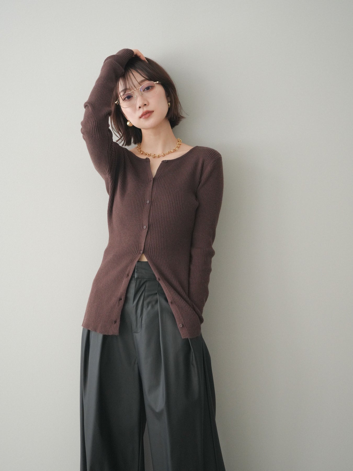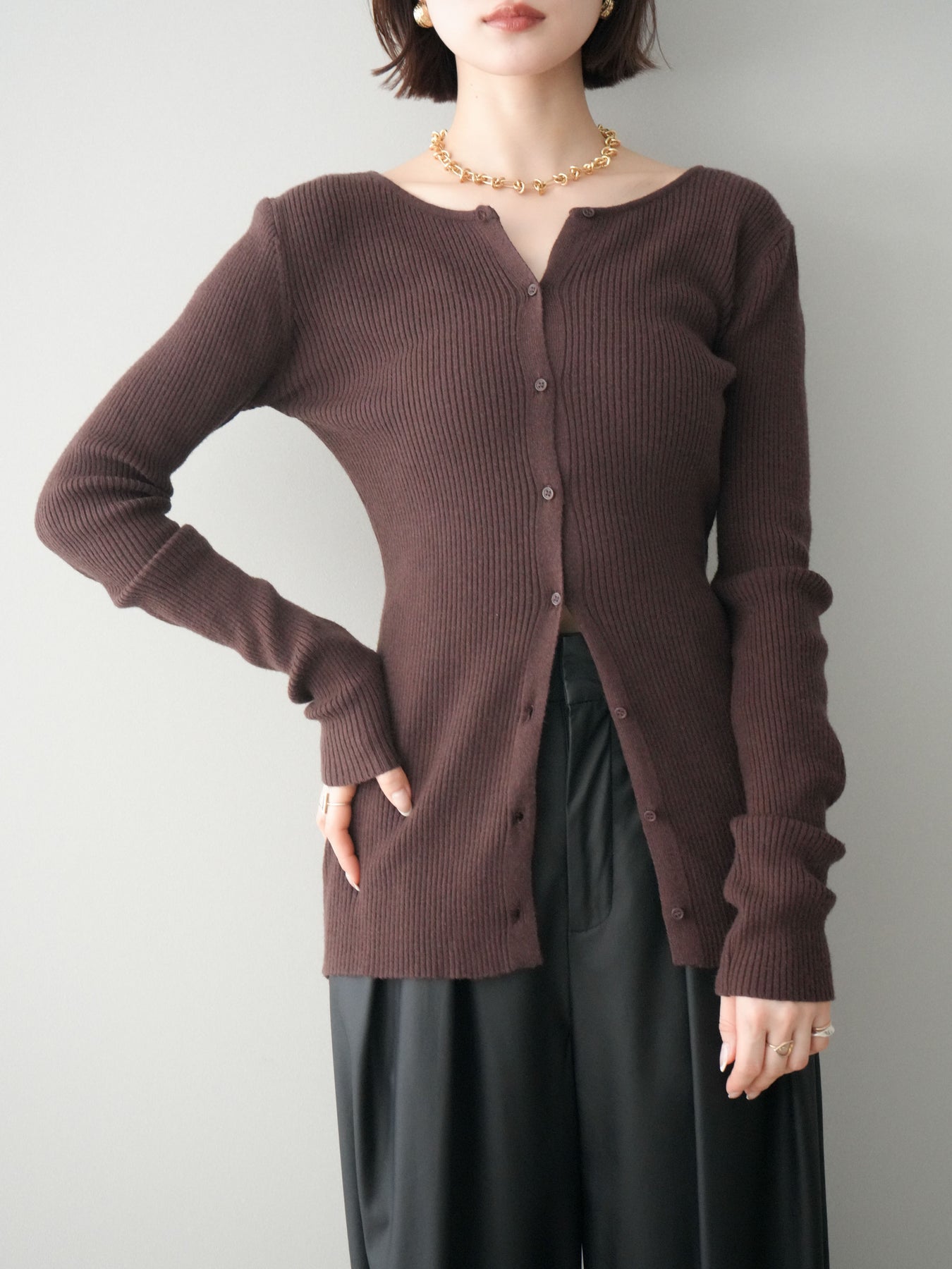 [予約]前後2WAYリブ編みクルーネックカーディガン/darkbrown