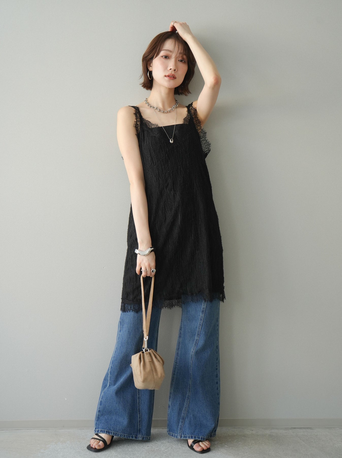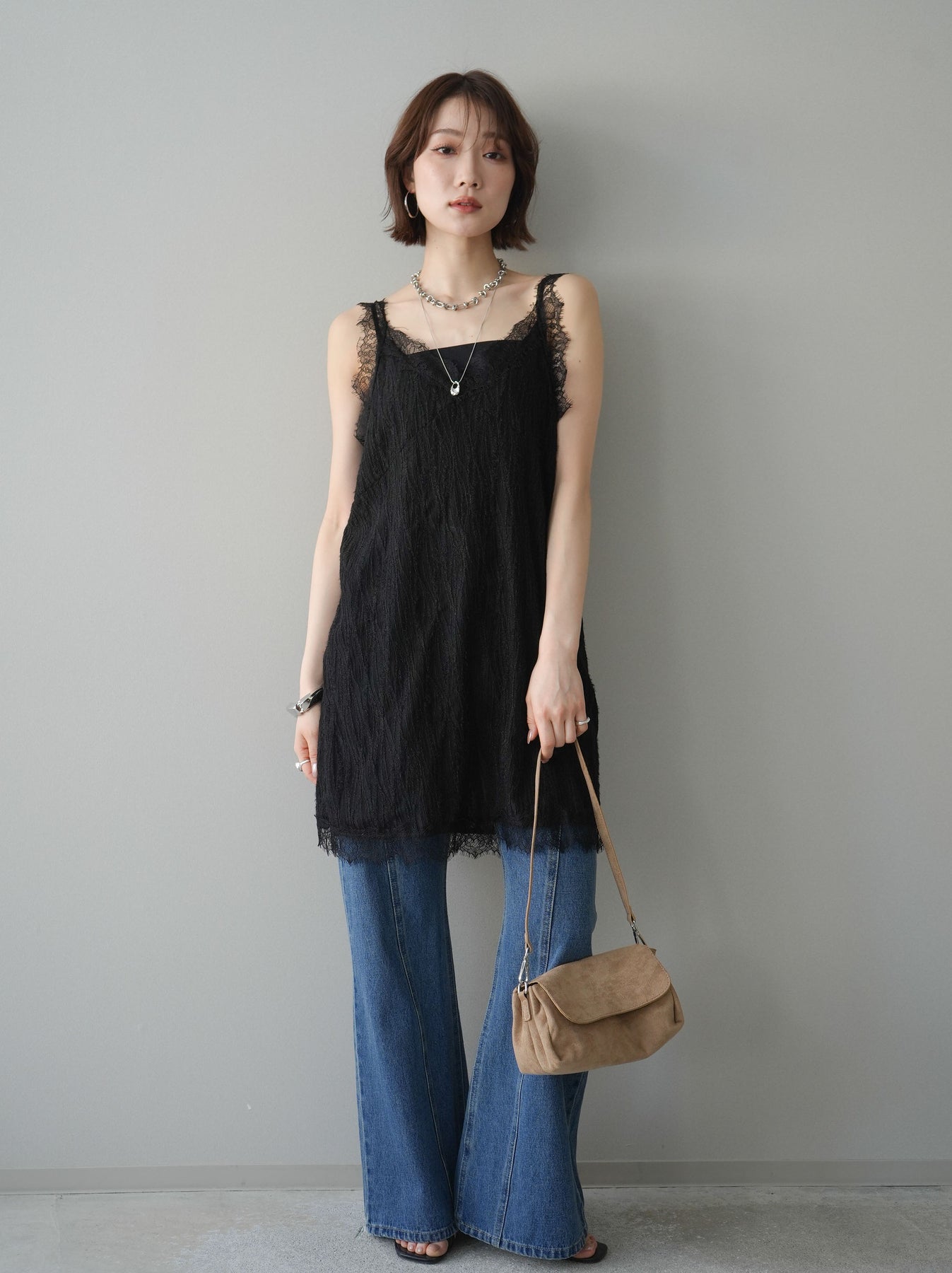 縦のラインを強調するサイド切替デザインが印象的なフレアデニムパンツ。すっきりとした腰まわりから裾に向かって広がるシルエットが、脚を長く見せてくれる一本です。サイドに施したラインディテールが立体感を生み、シンプルながらもさりげないアクセントに。程よいフィット感と安定感のある履き心地で、デイリーに取り入れやすいデザインに仕上げました。トップスをインして縦ラインを際立たせるスタイリングはもちろん、オーバーサイズのトップスと合わせた抜け感のあるコーディネートもおすすめ。カジュアルからきれいめまで幅広く活躍する、着回し力の高いデニムです。 ※ボトムス、キャミソール(インナー)以外の商品は一律でインナーは付属していません。